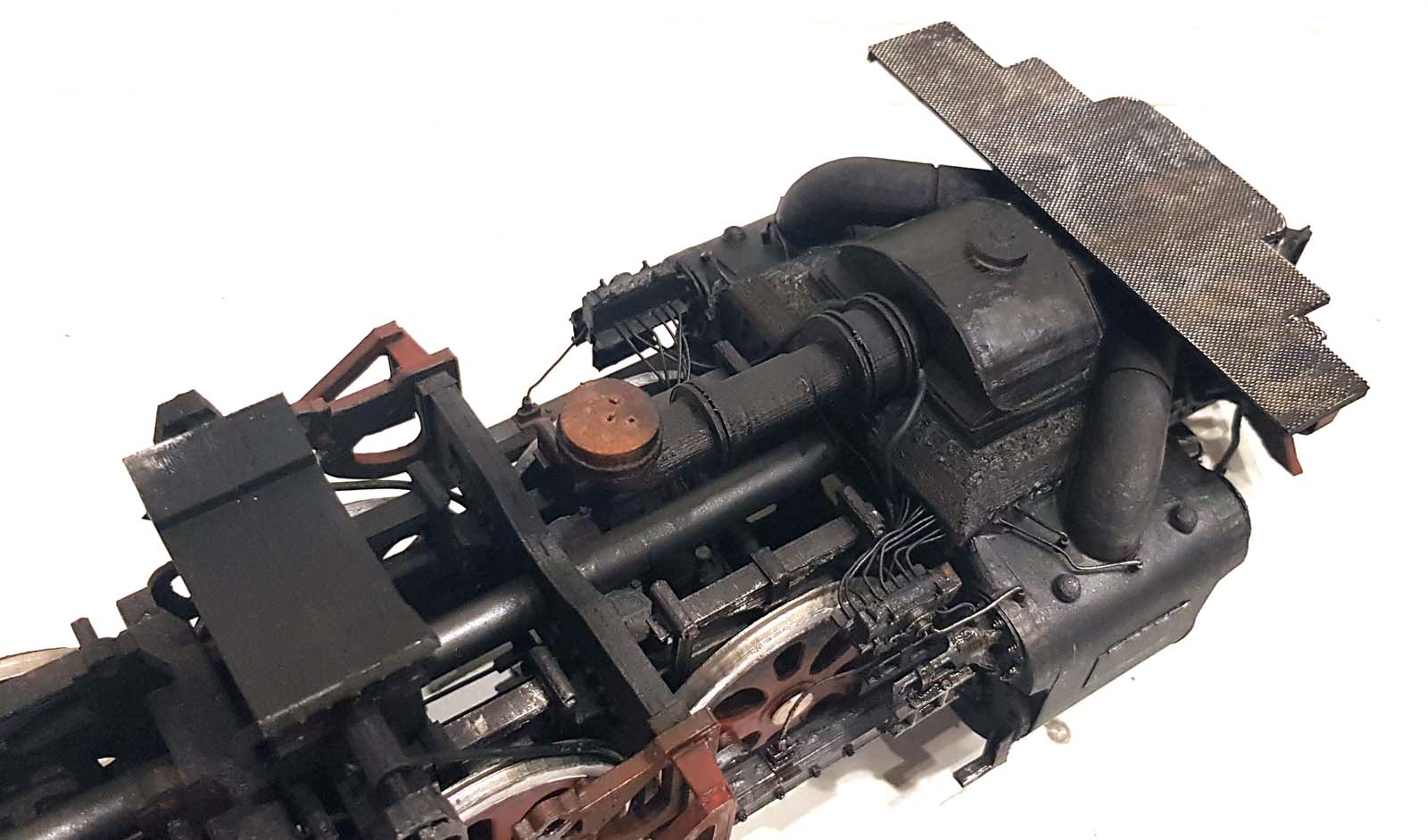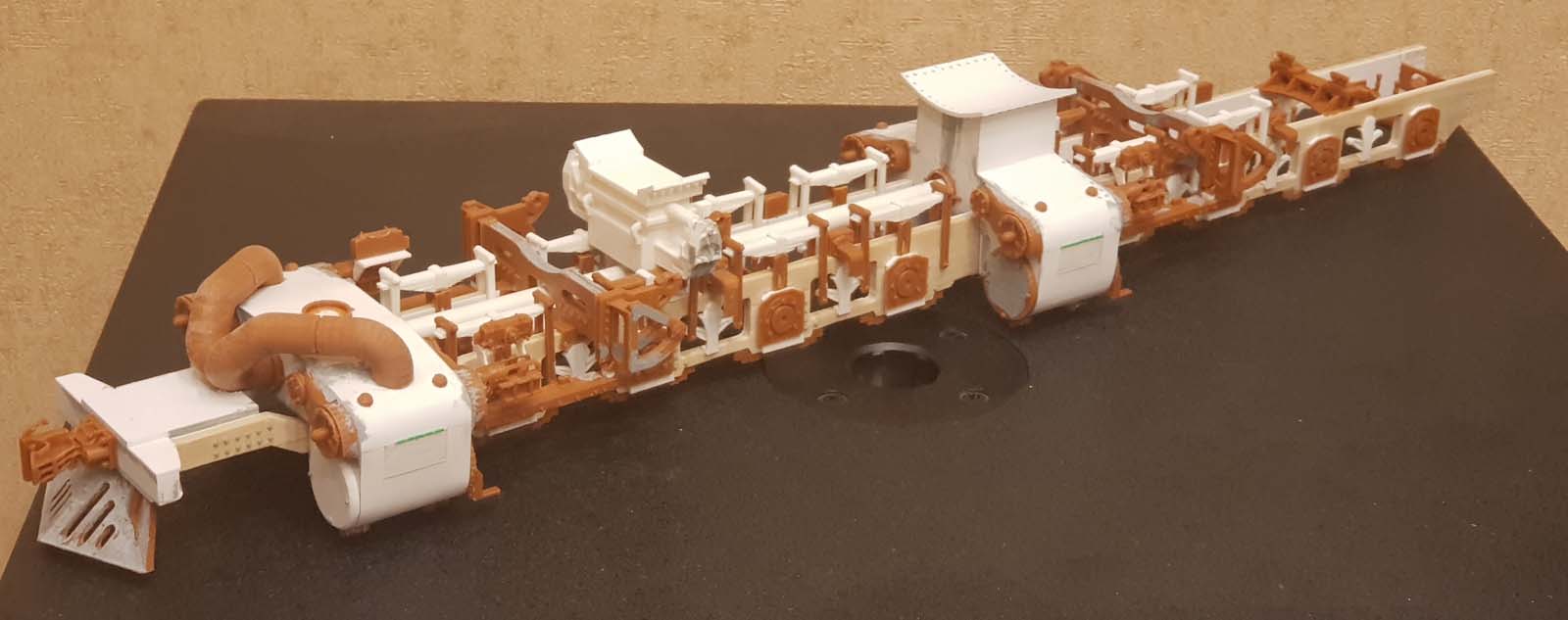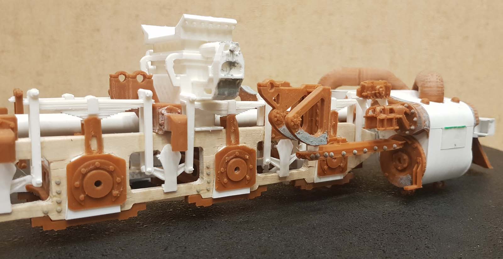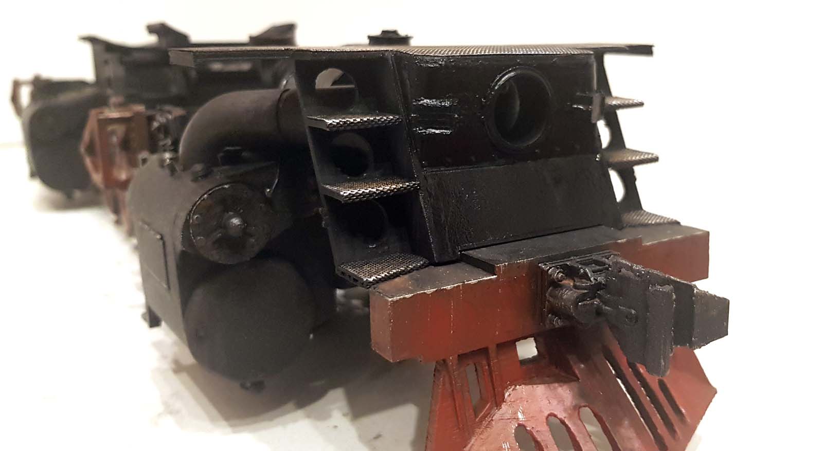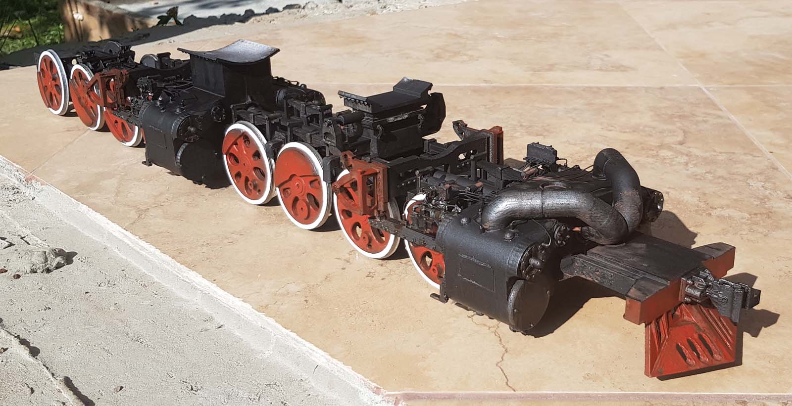 Доделал головной прожектор, установил магистрали подачи песка на переднюю машину, поставил дышла. Детально правый борт