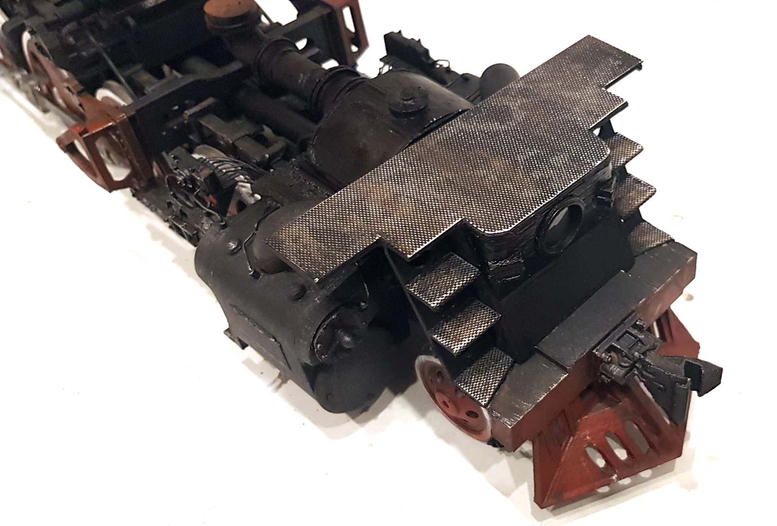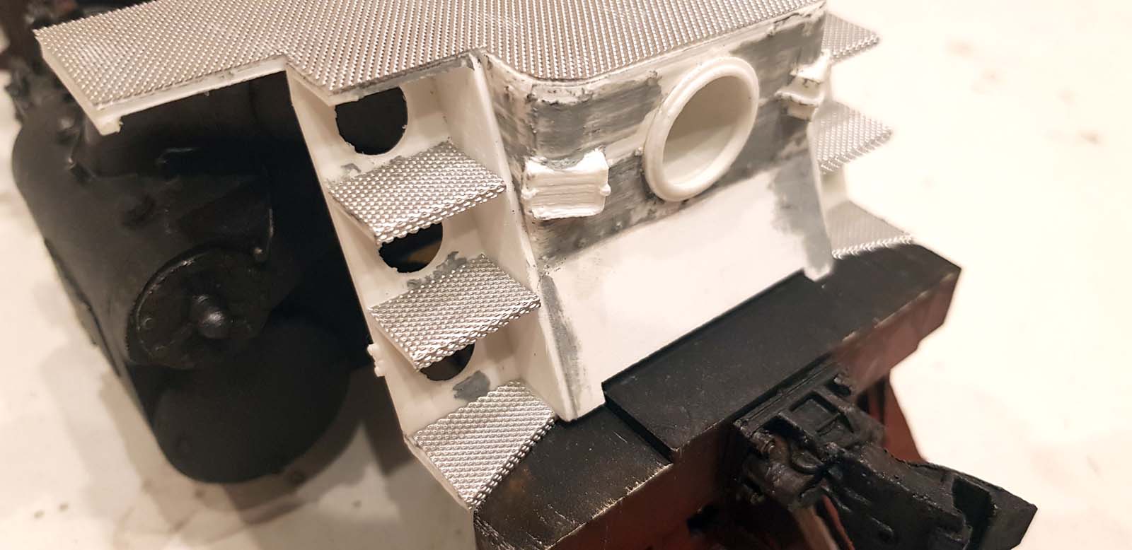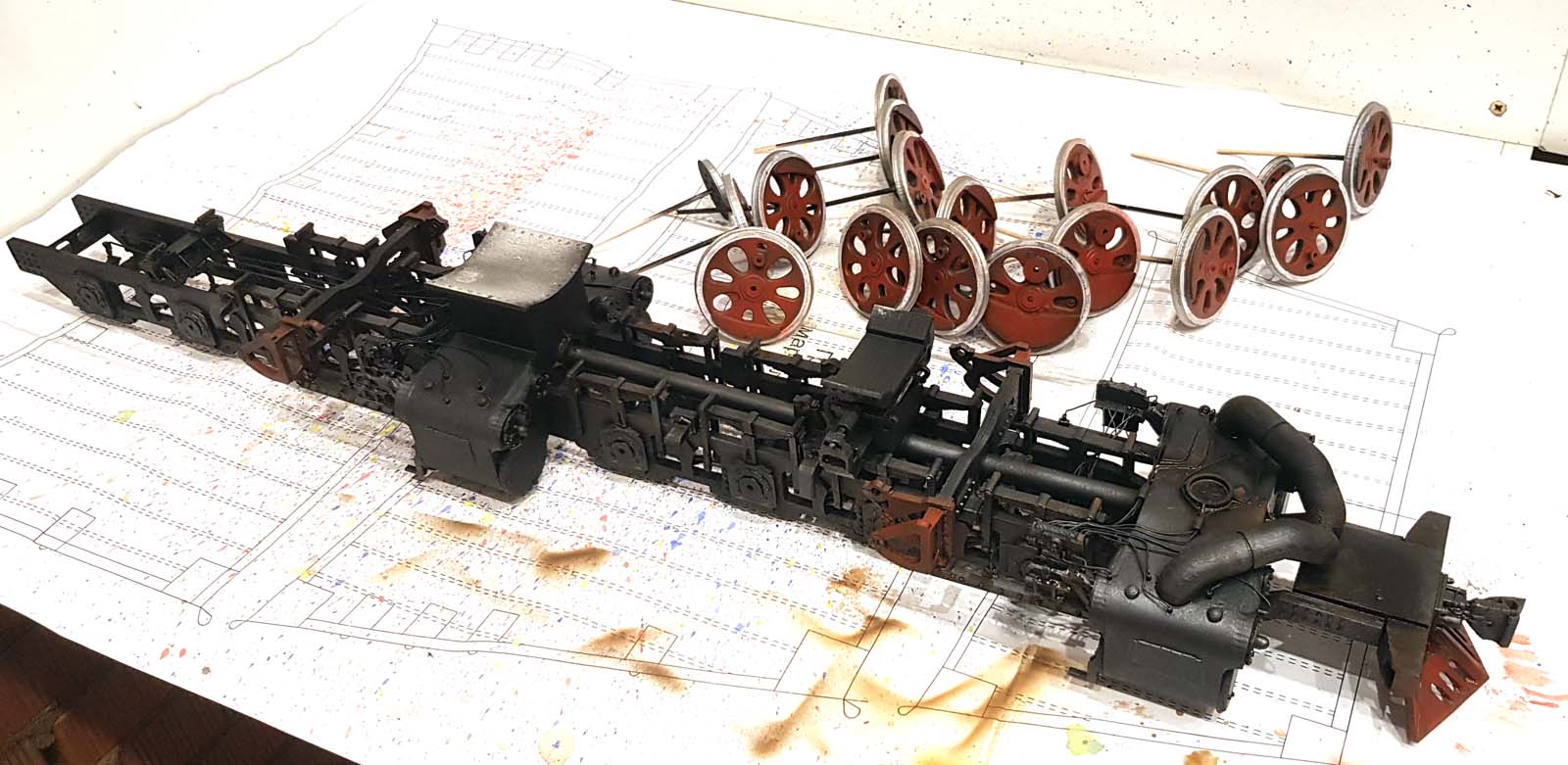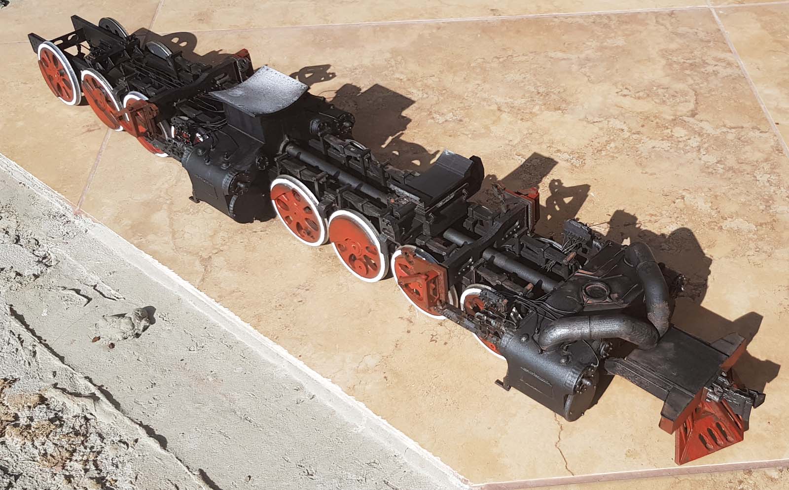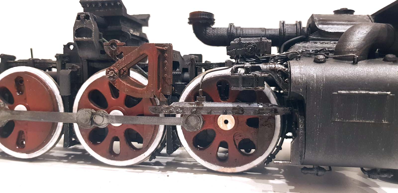 Доделал головной прожектор, установил магистрали подачи песка на переднюю машину, поставил дышла. Детально правый борт