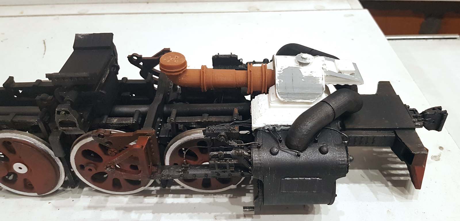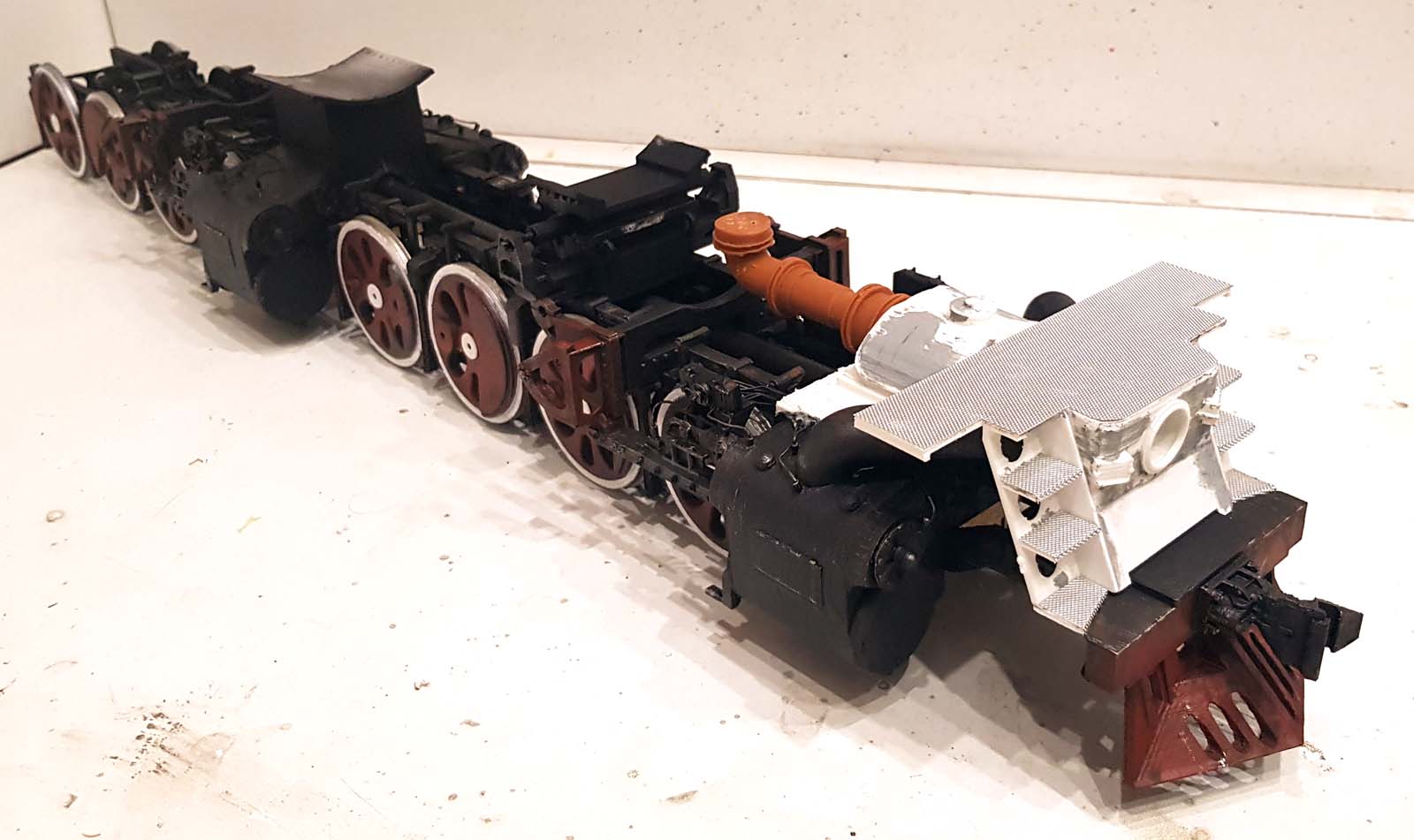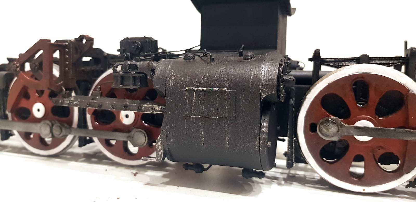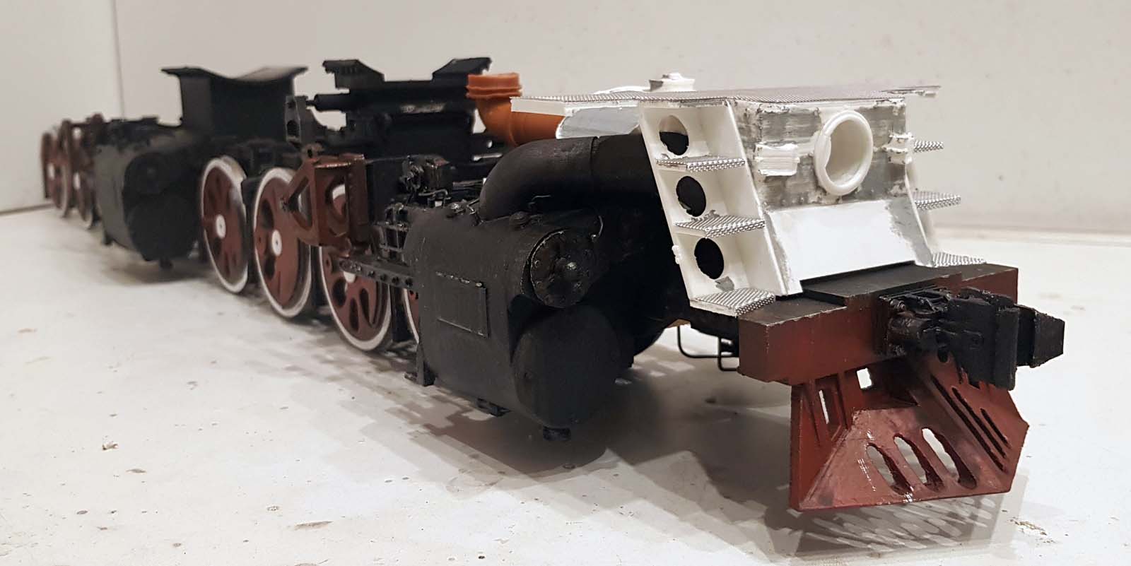 Доделал головной прожектор, установил магистрали подачи песка на переднюю машину, поставил дышла. Детально правый борт