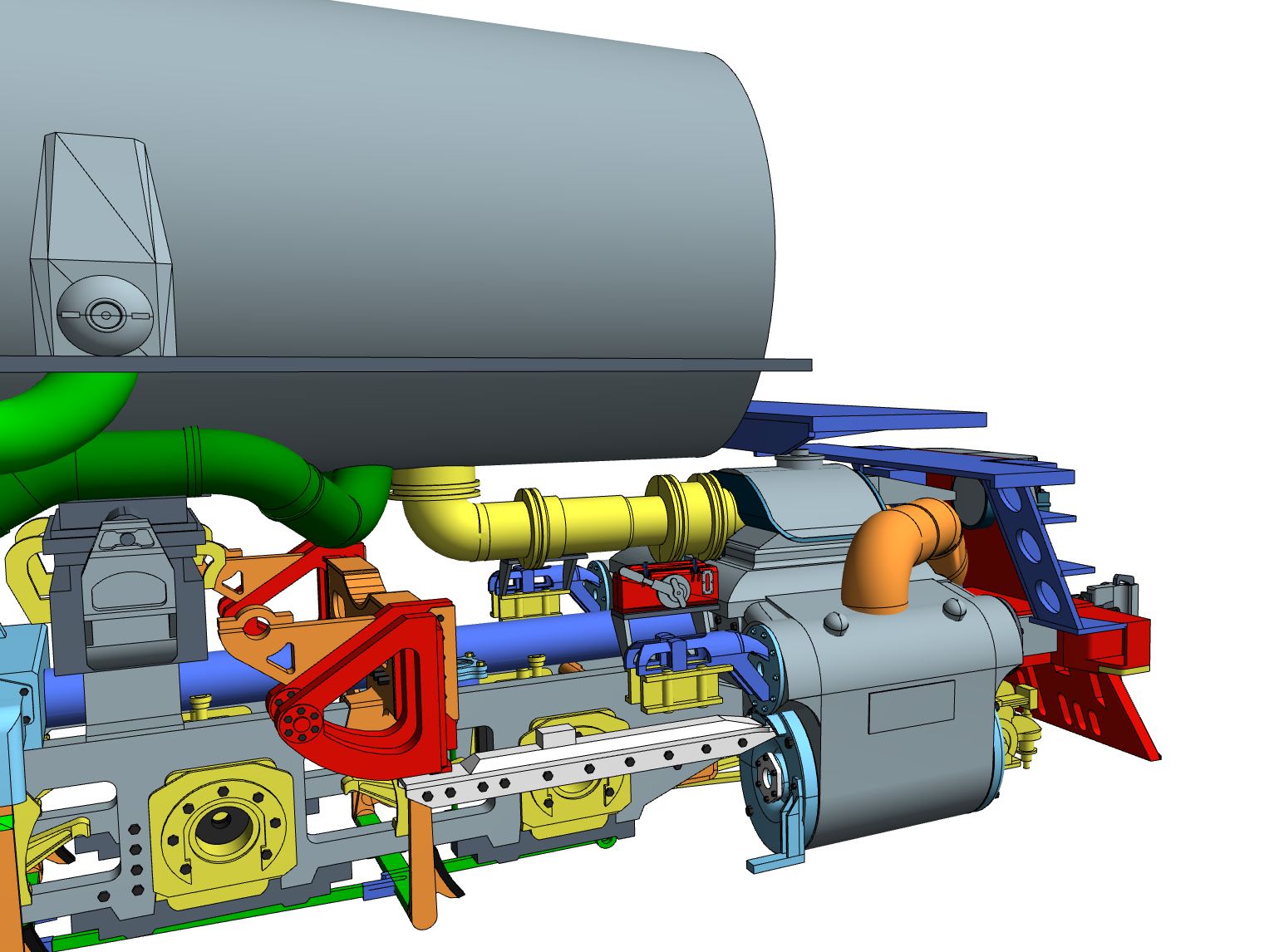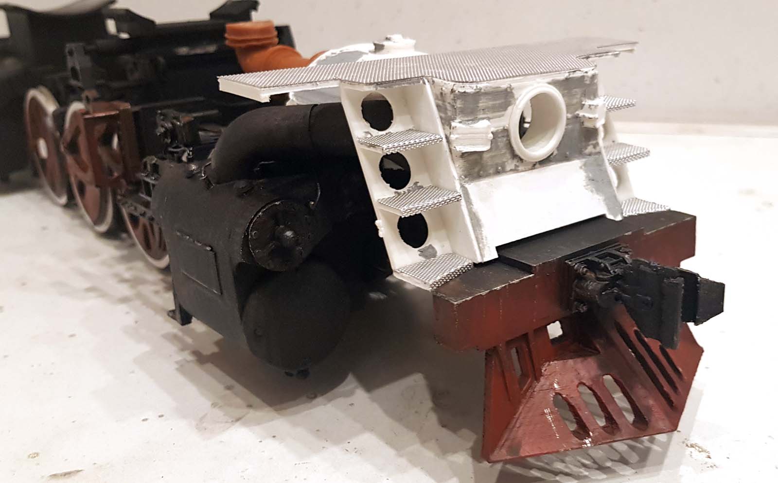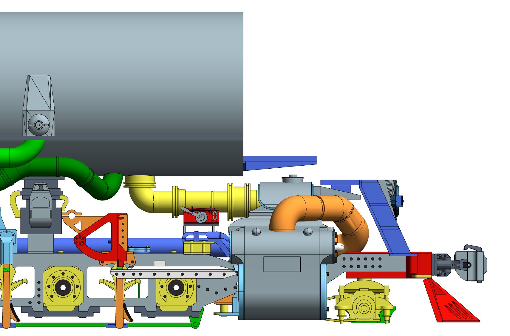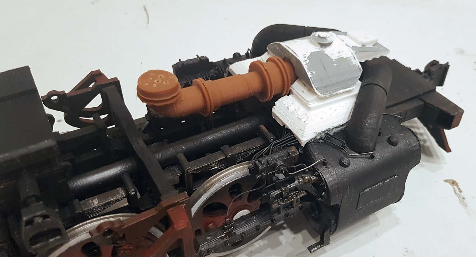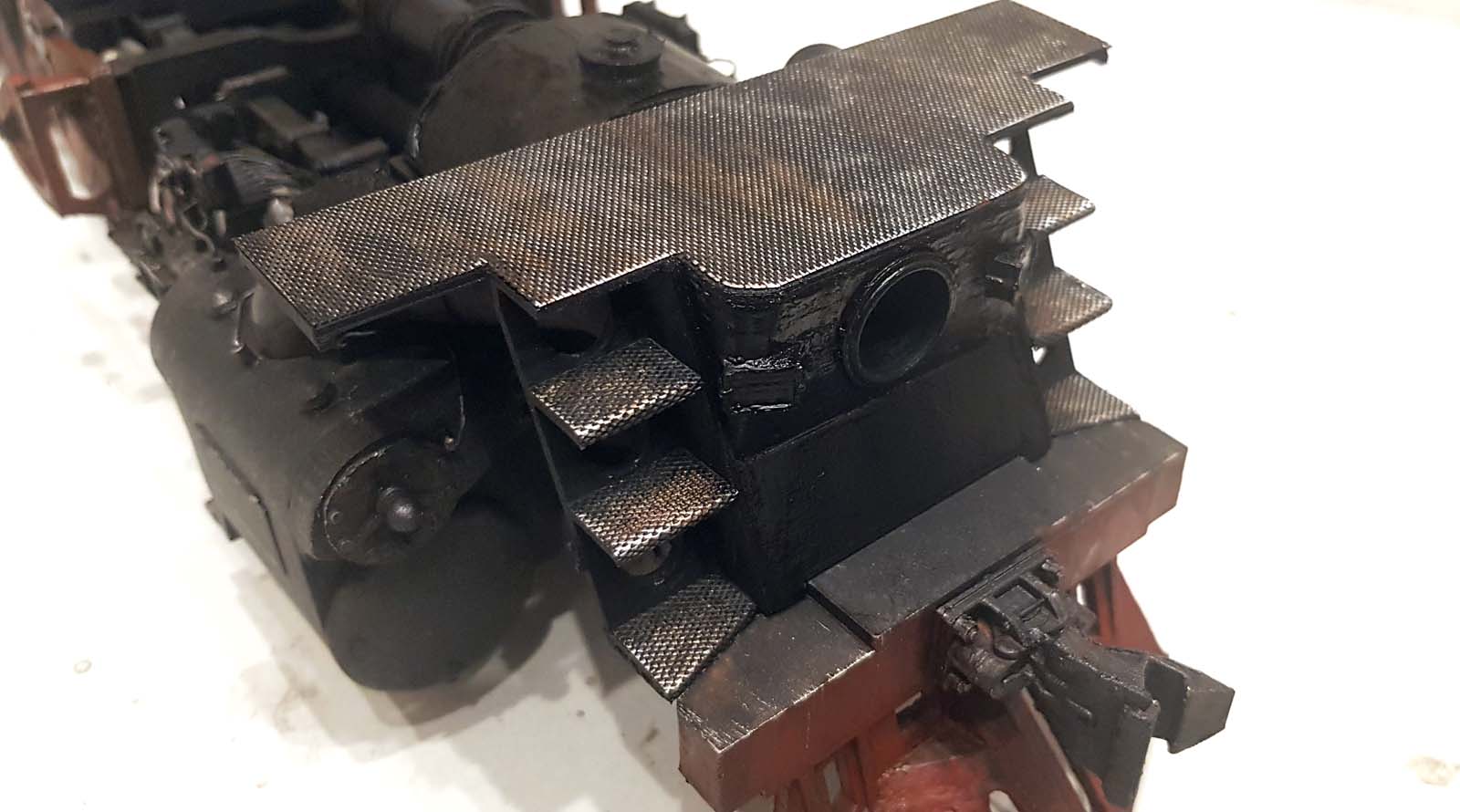 Доделал головной прожектор, установил магистрали подачи песка на переднюю машину, поставил дышла. Детально правый борт