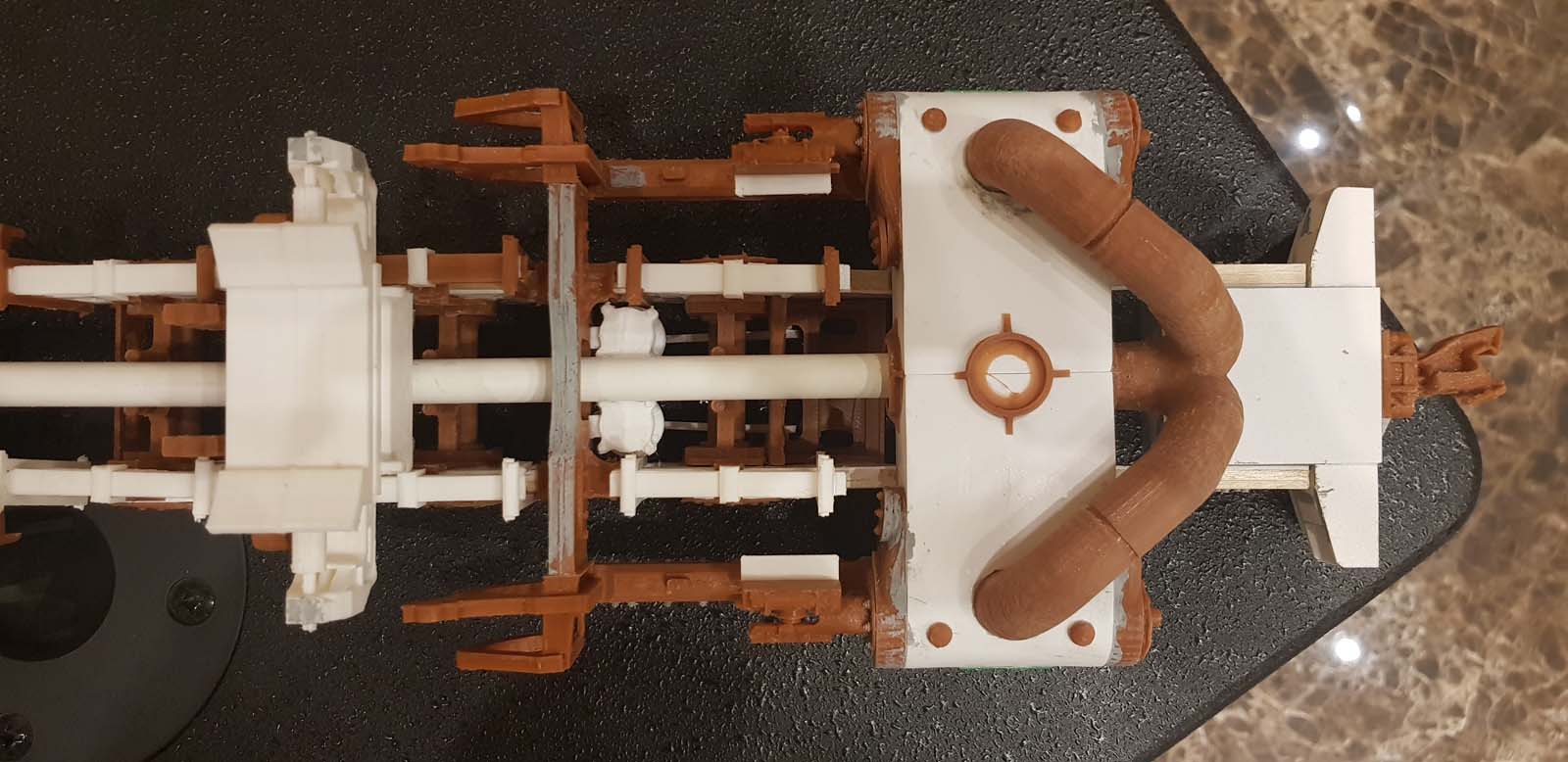Приступил к носовому обтекателю нижней площадки. Понять как выглядит плита на переднем блоке цилиндров по этим чертежам не реально.