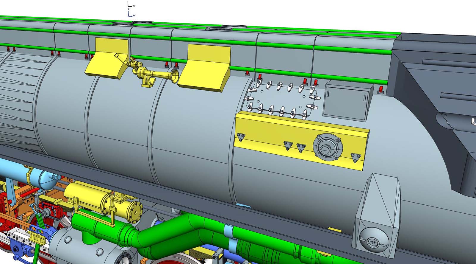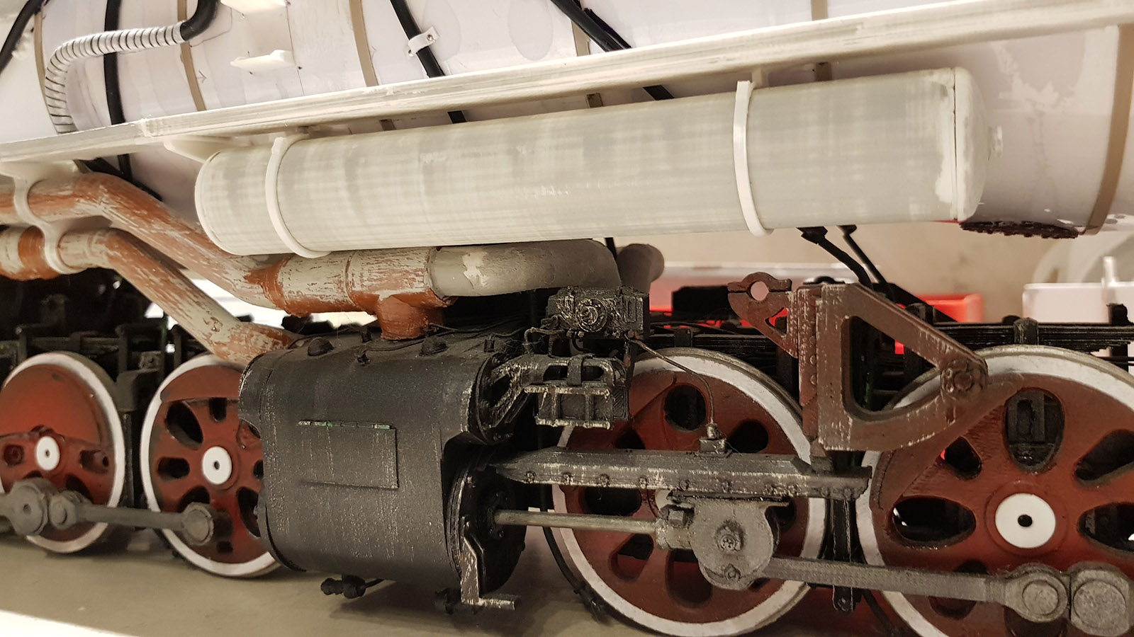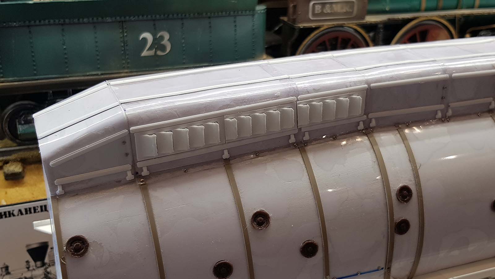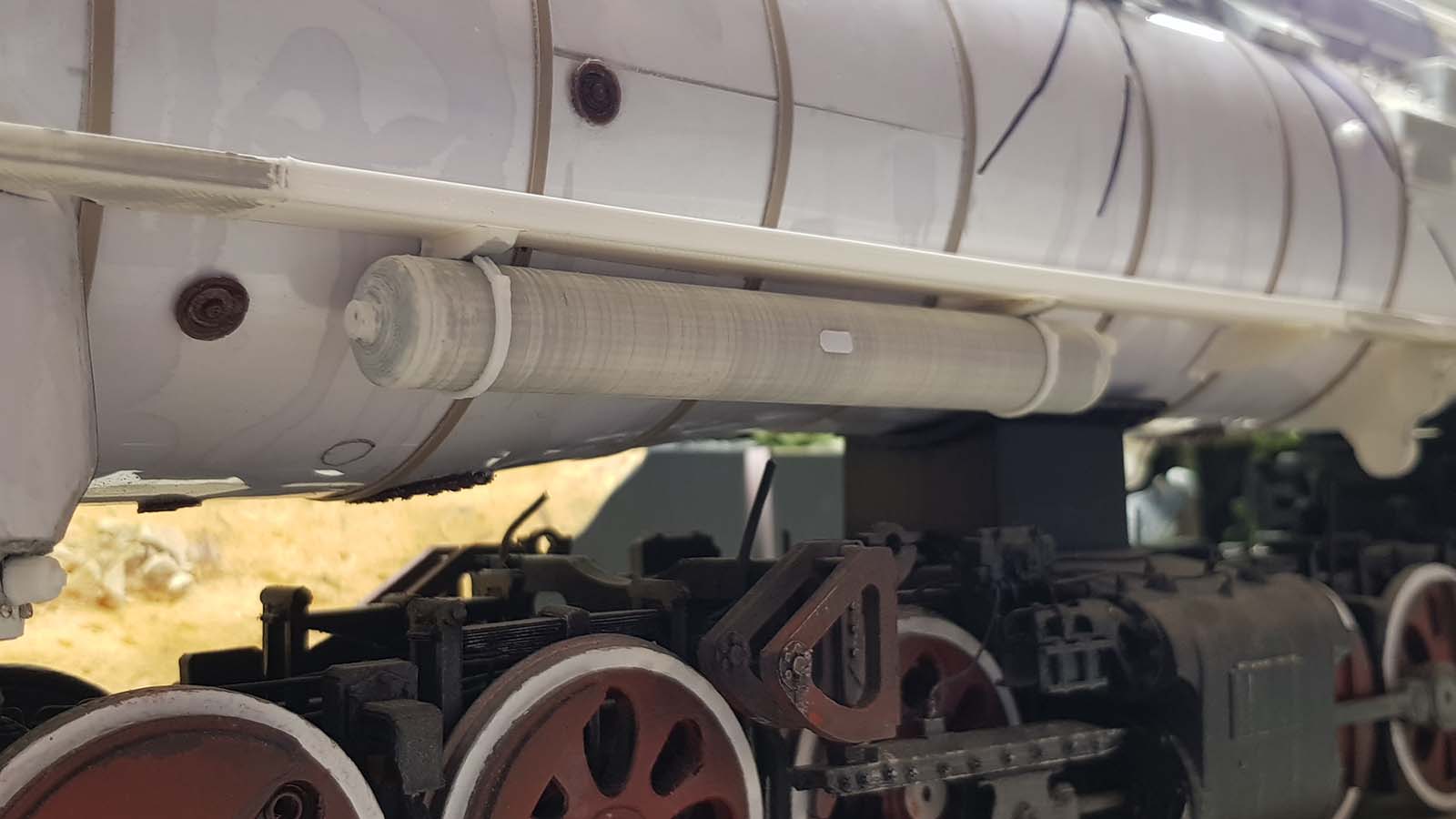 Небольшие емкости не знаю для чего. Интересно, что на разных версиях паровоза их форма и расположение разнятся. Принял то, которое соответствует моему типу