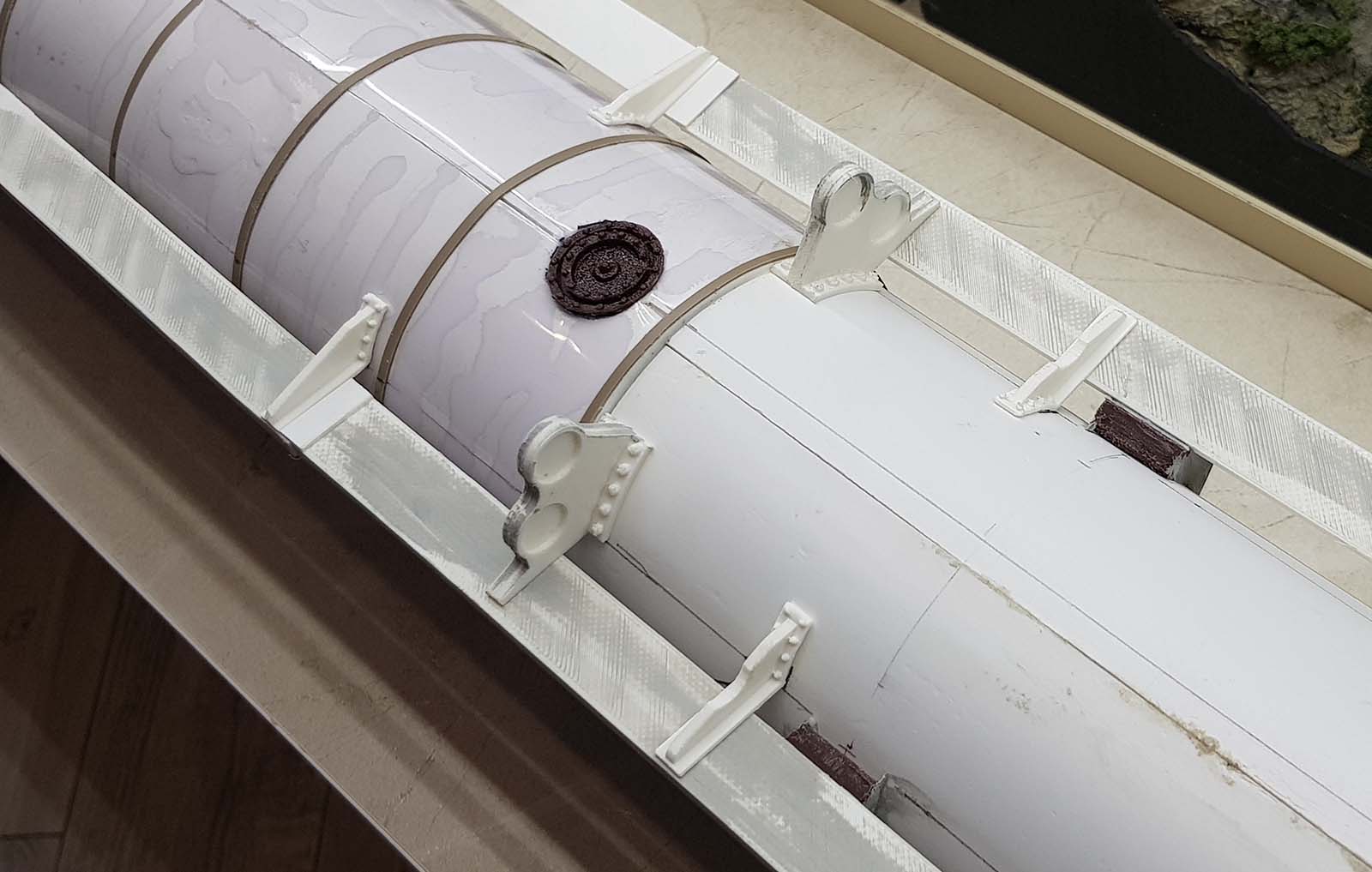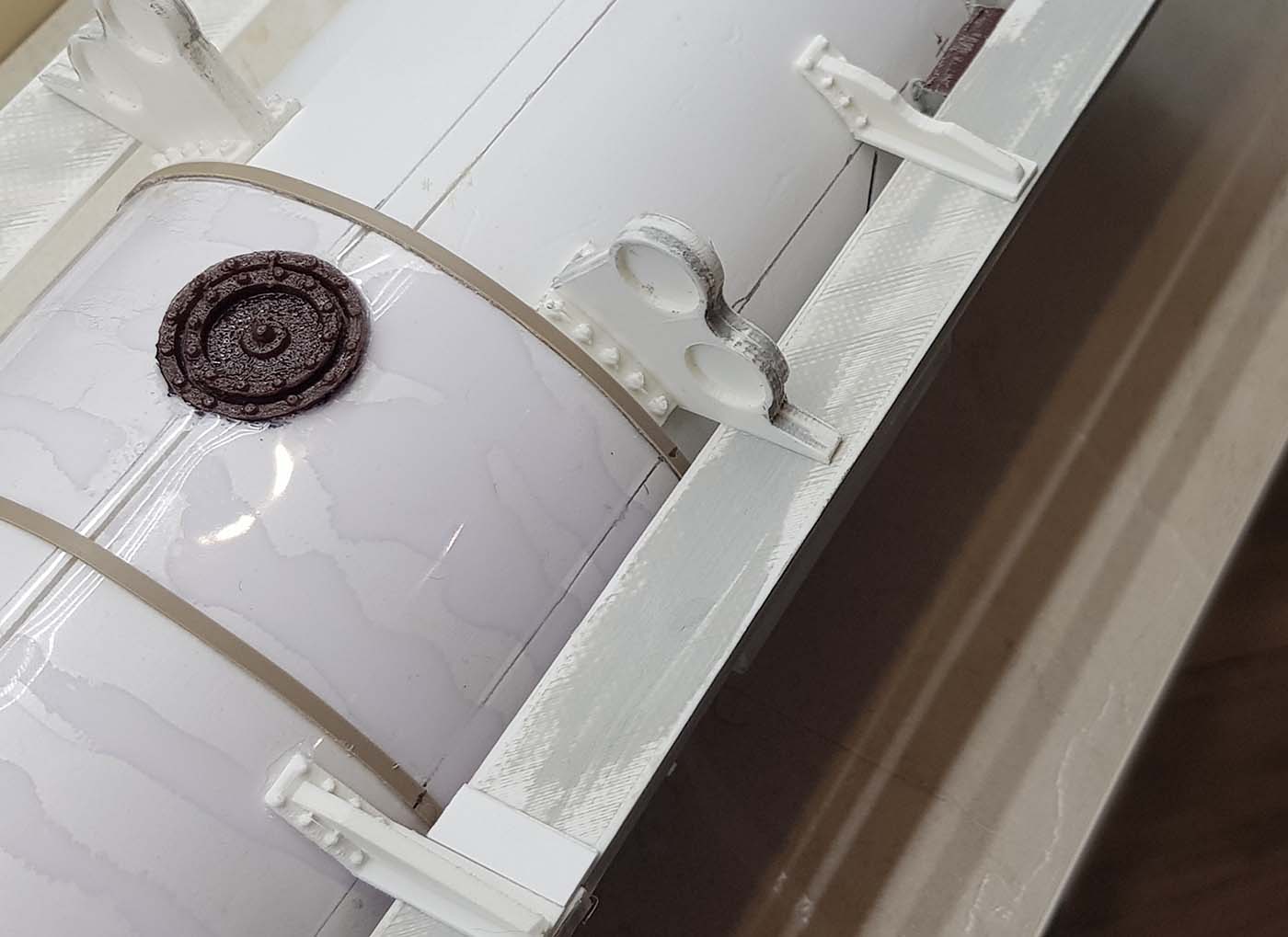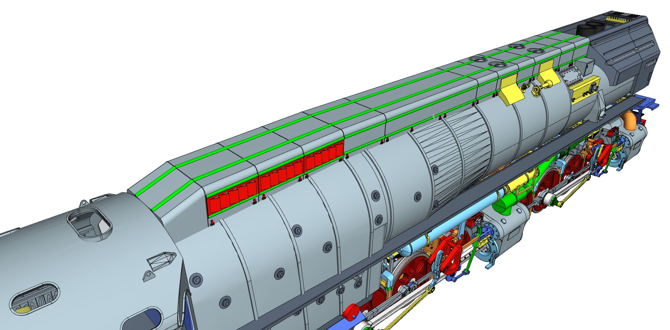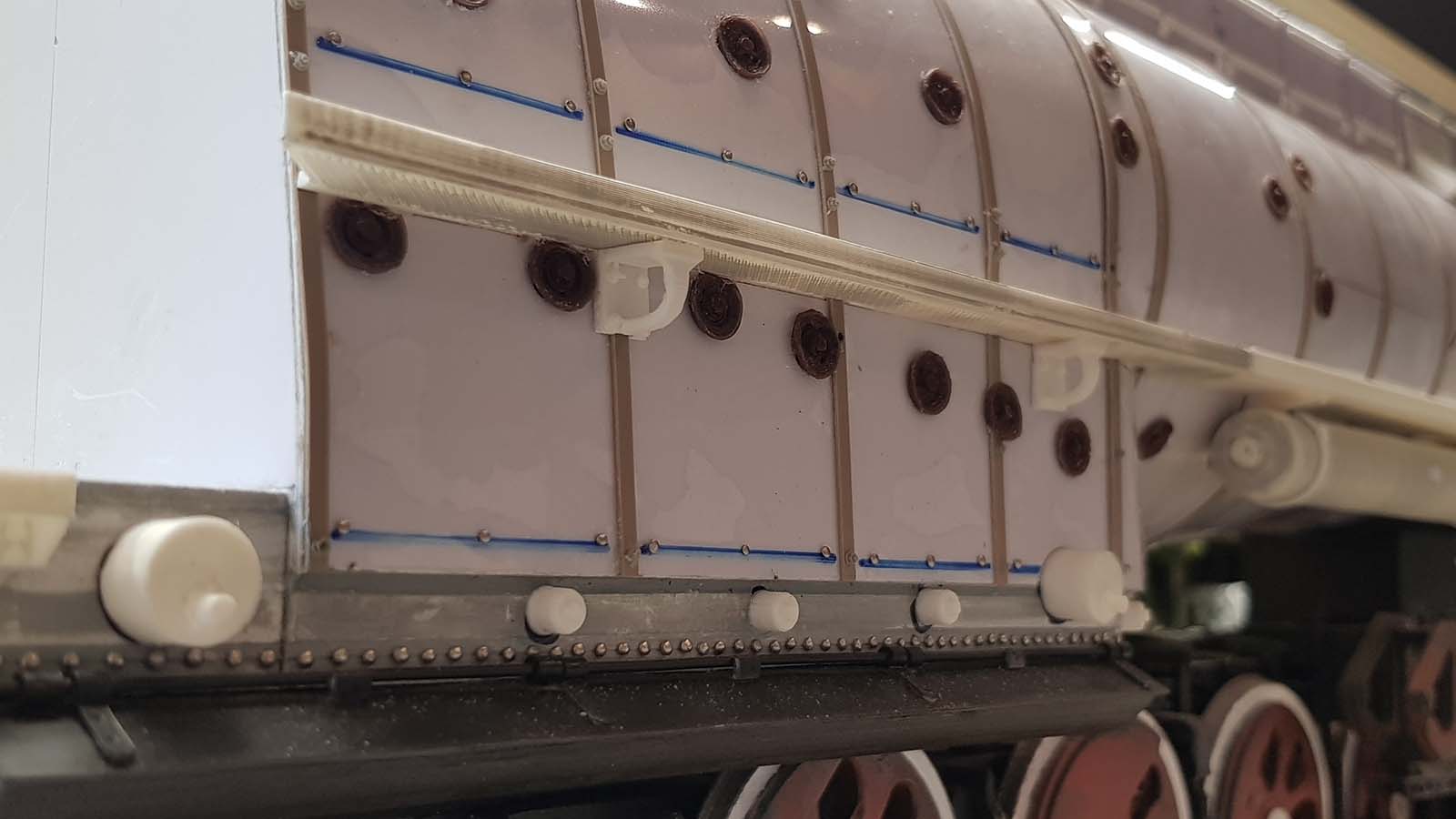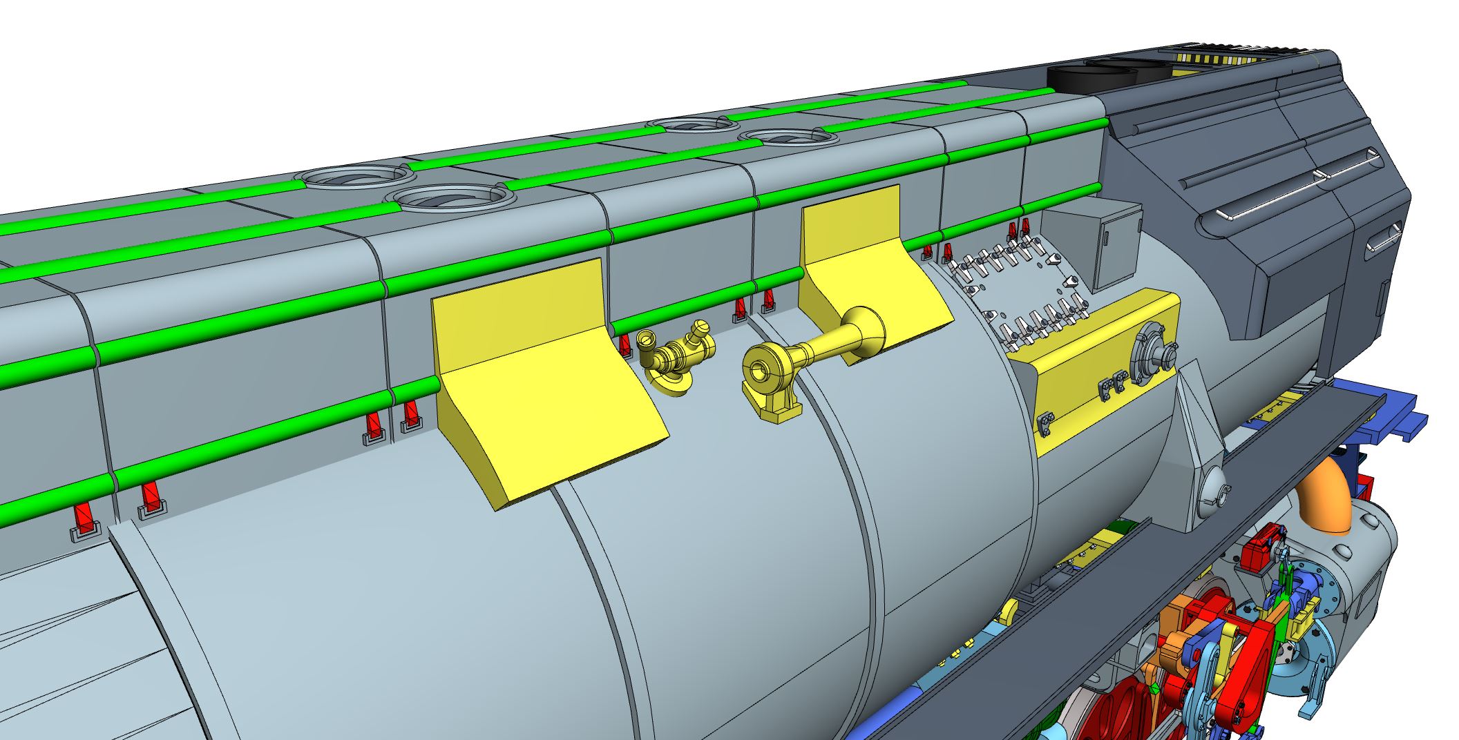 Небольшие емкости не знаю для чего. Интересно, что на разных версиях паровоза их форма и расположение разнятся. Принял то, которое соответствует моему типу