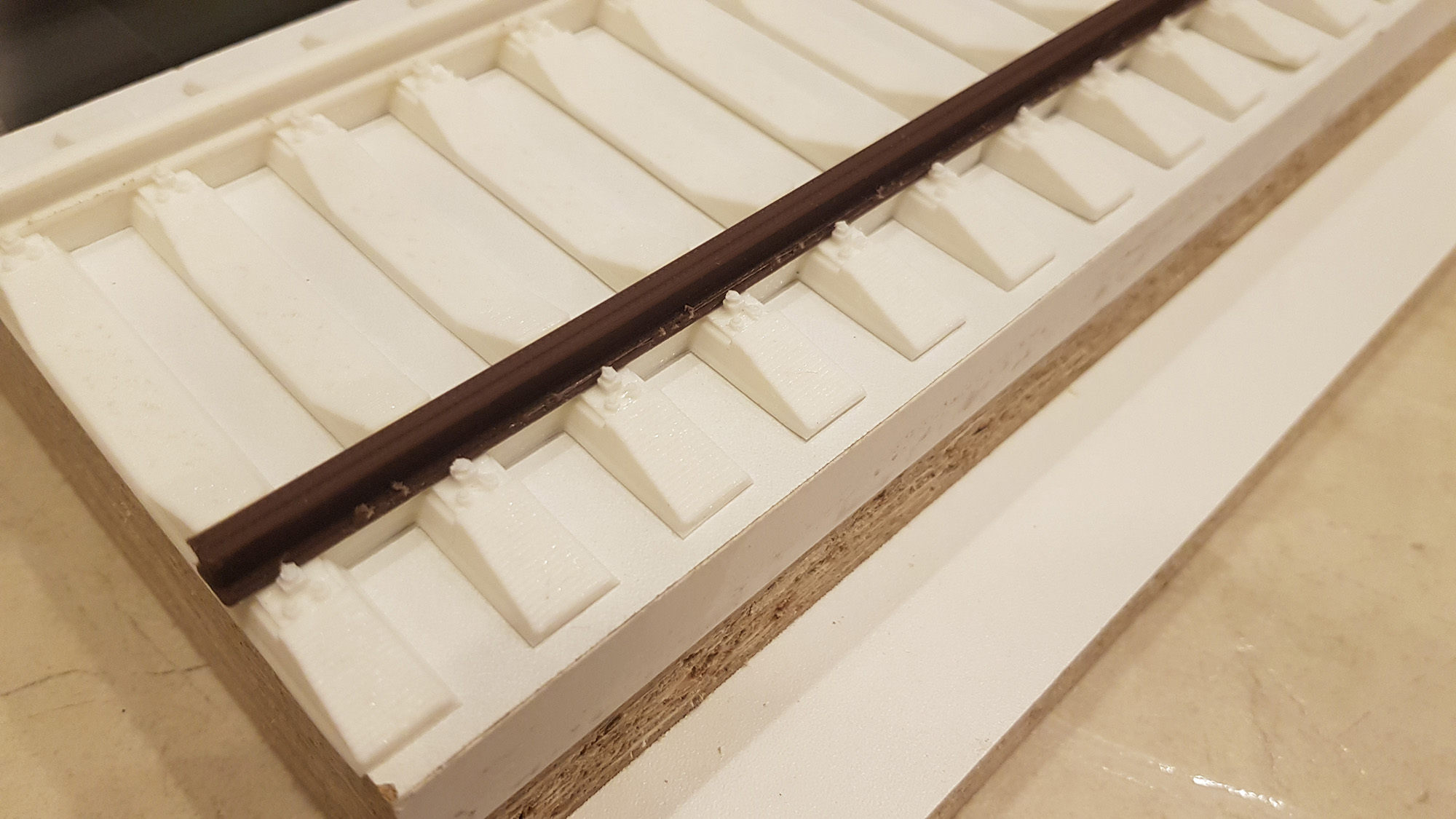 После развода экипажа и остальной части я понял, что надо бы сделать нормальное основание и присобачить уже паровоз к ней намертво. Тут будет без изысков - ж/б шпалы и насыпь. Если есть идеи как можно оживить - готов выслушать (у меня, наверное, фантазия спит)