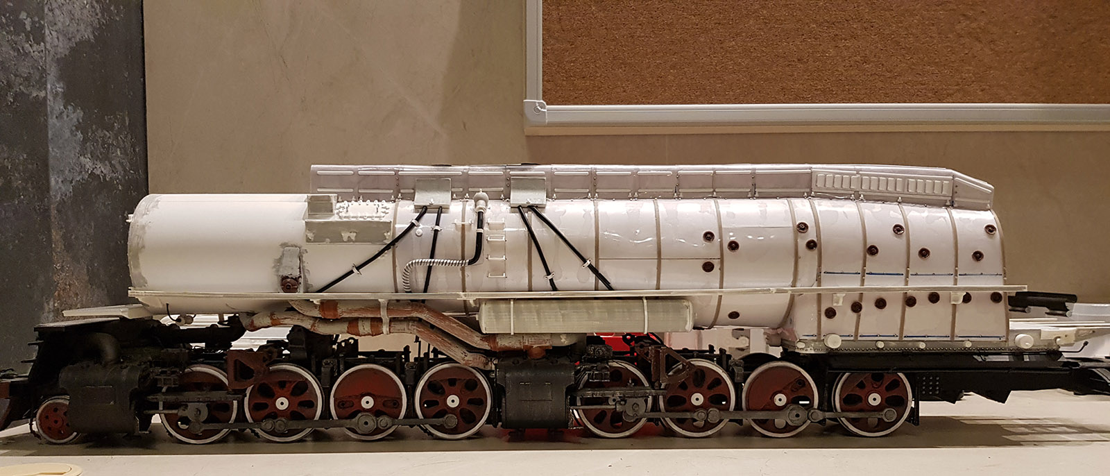 Всем привет. С последней публикации прошел ГОД! Причина - трагедия местечкового характера: делая фото, которые выложены выше я оставил паровоз в очень не надежном положении и стоило отлучиться на 5 минут как мой кот снес его на пол с высоты 1,5 м! Грохот был знатный. Экипажная часть "развелась" с остальной частью, а всякая мелочь усыпала весь пол. Это на долго отбило у меня всякое желание что-то делать. Сгреб я детали в ящик до лучших времен и вот они настали. Тут произошел очередной поворот истории - со мной связался еще один сочувствующий обладатель комплекта чертежей (что-то уже было, а что-то новое, что как раз сейчас будет очень полезно). Для понимания качества: разрешение чертежей 19067х4800! Но, автор пожелал остаться в тени и не светить документацией, так что с новой энергией продолжаем запил!
