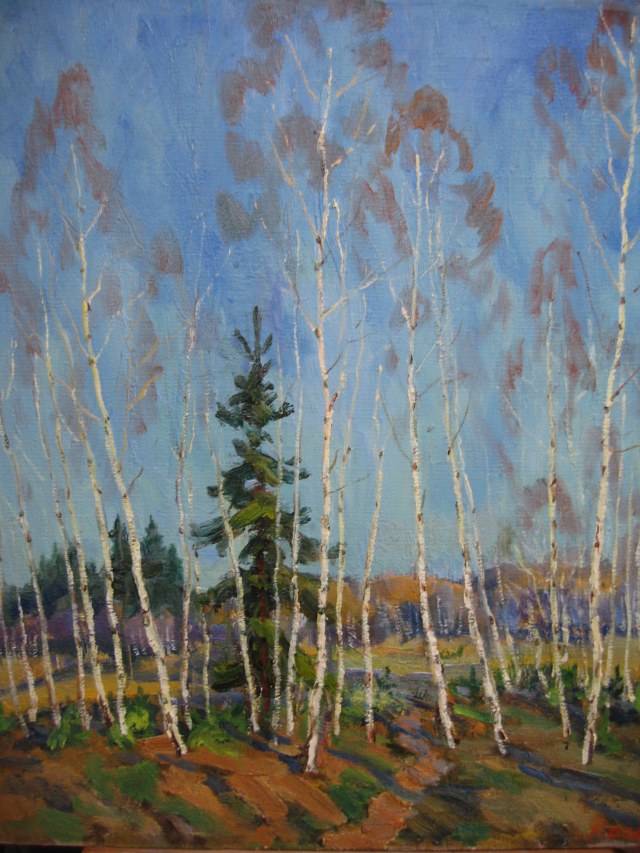 В основном он писал пейзажи. Среди представленных работ есть портрет, который им написан с натуры в день моего рождения, когда мне исполнилось 30 лет.