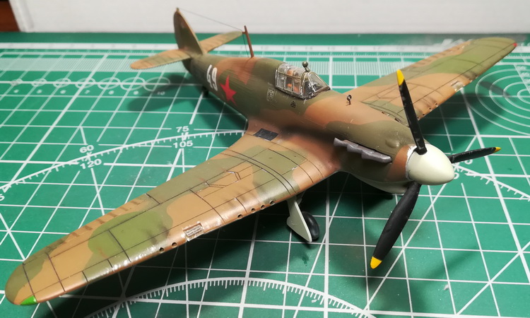 Приветствую, друзья! Вчера и сегодня были сделаны последние штрихи по модели: желтые законцовки винта, трос антены, подножка, прицел, БАНО, трубка ПИТО, фары, зеркало на фонаре, мелкие технические надписи. Модель ГОТОВА и вот результат.