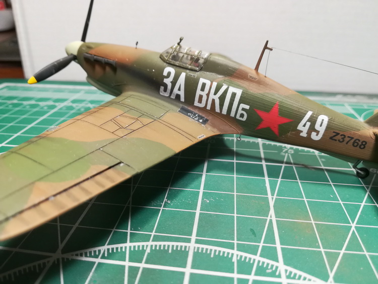 Очень хорошо получается, Макс! Пару моих мелких замечаний-советов. Я бы кок винта немного пообточил бы, а то он тяжеловесно выглядит. Жёлтые законцовки у винта были? И вид снизу, пожалуйста!