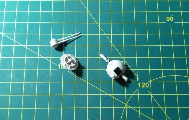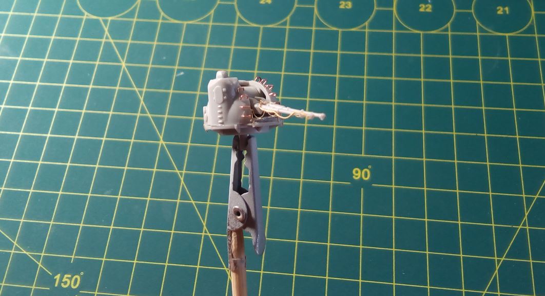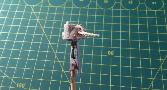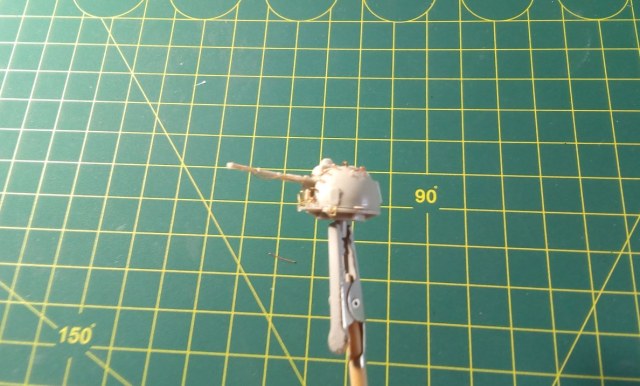 Ещё приклеил к переборке корпуса кусок толстого литника, желательно с крючком, что-бы держаться и руками не хватать покрашенное да и повесить можно.