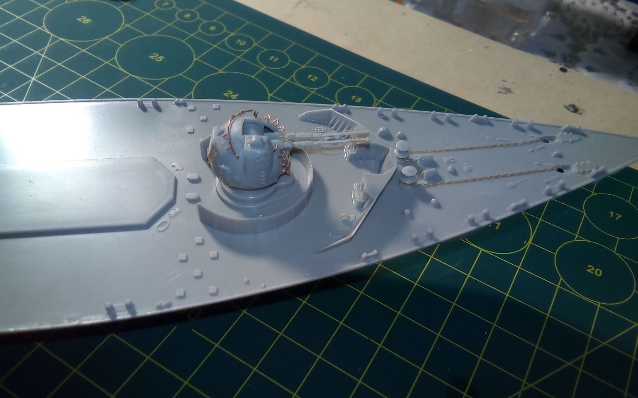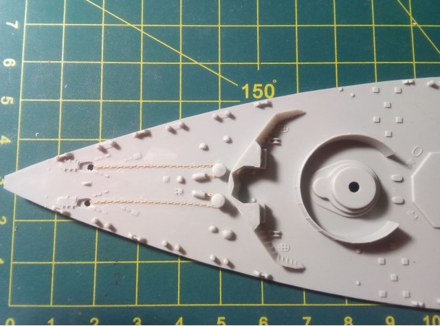 Пы.Сы. предварительно, конечно надо рассверлить все технологические отверстия в палубе и корпусе, но не по инструкции Трумпетера, а по мере необходимости, т.к часть деталей будет заменяться на травленые, внимательно изучите все инструкции, чтобы потом не пришлось шпаклевать по краске.
