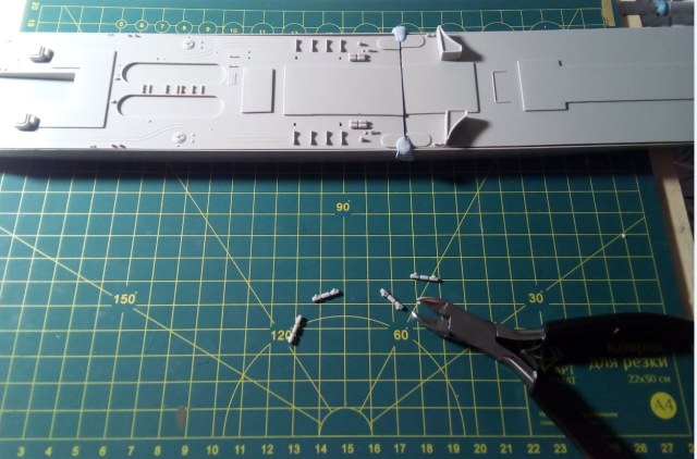 Итак продолжаем, зачистил немного от питателей корпус и взялся за палубу.