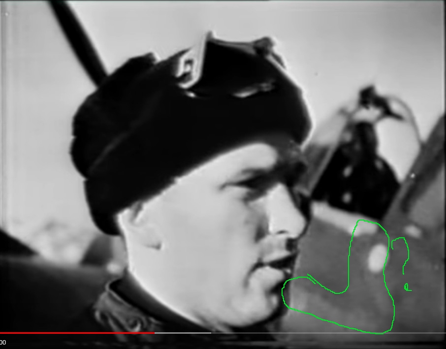 вот например это что у самолета Сафонова? выделил. подобные же намеки на пятна можно найти и на кадрах хроники.