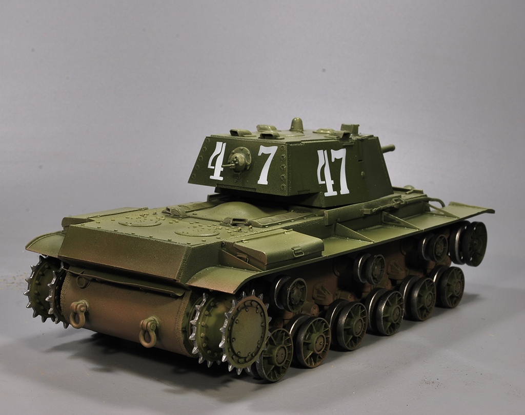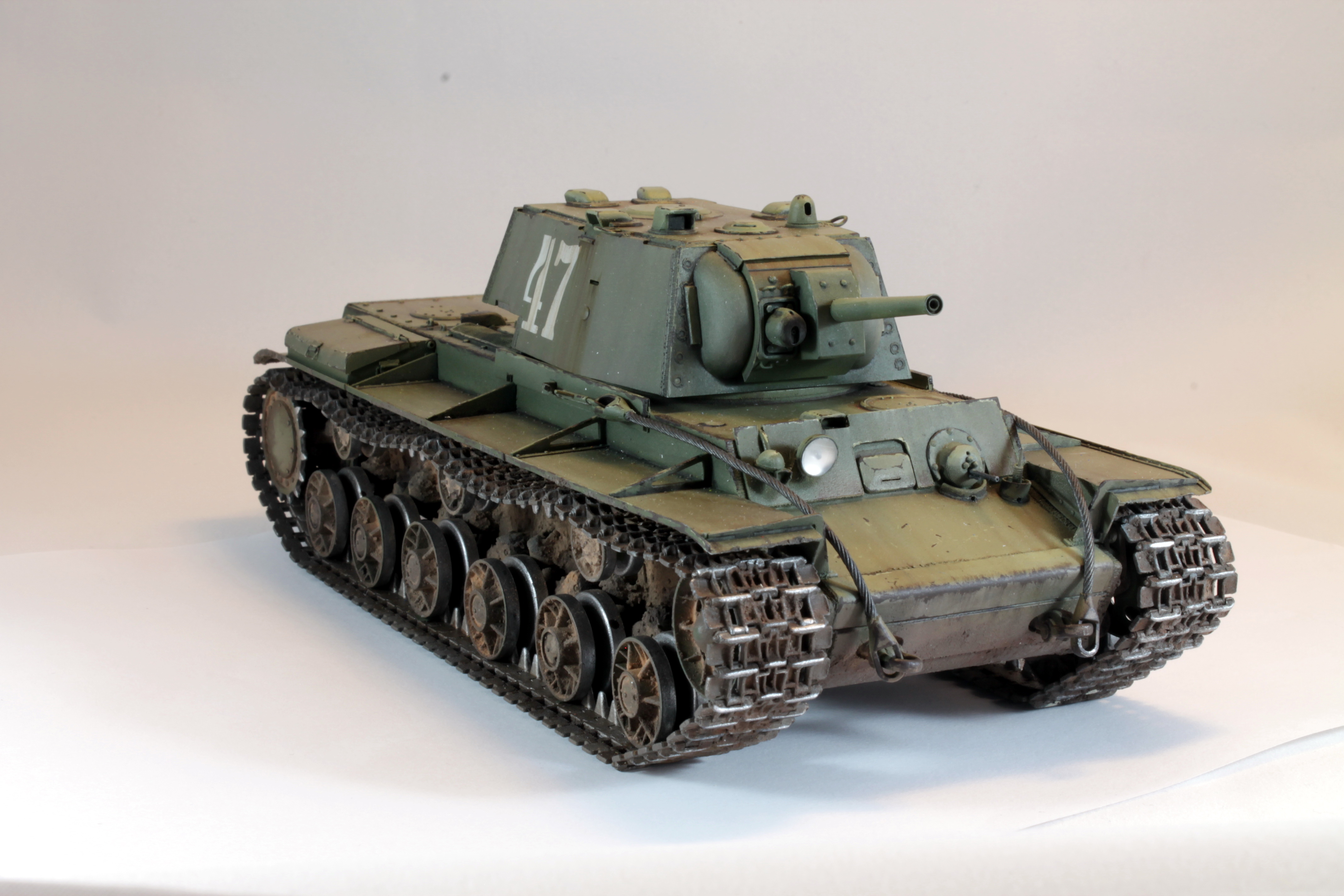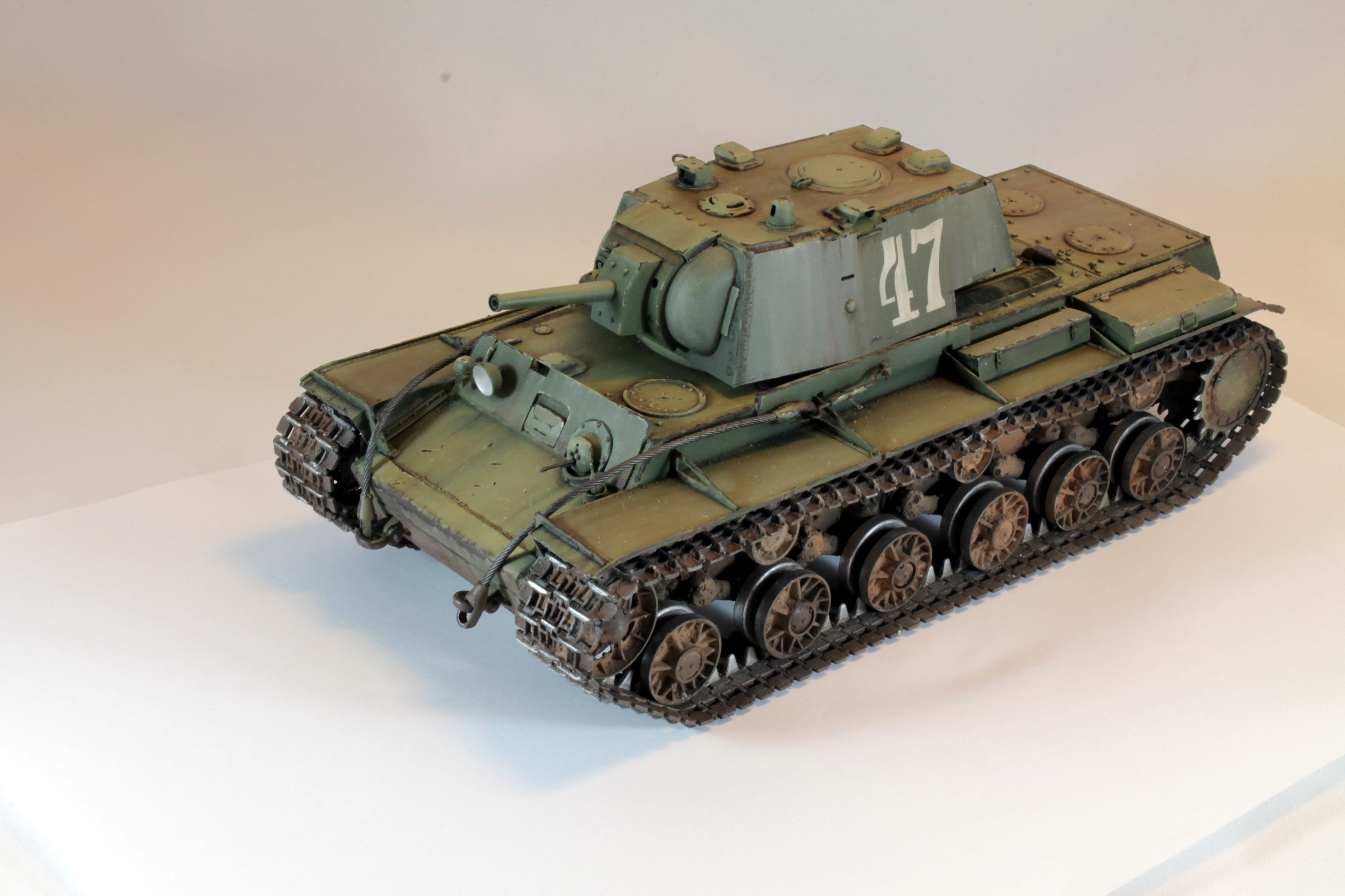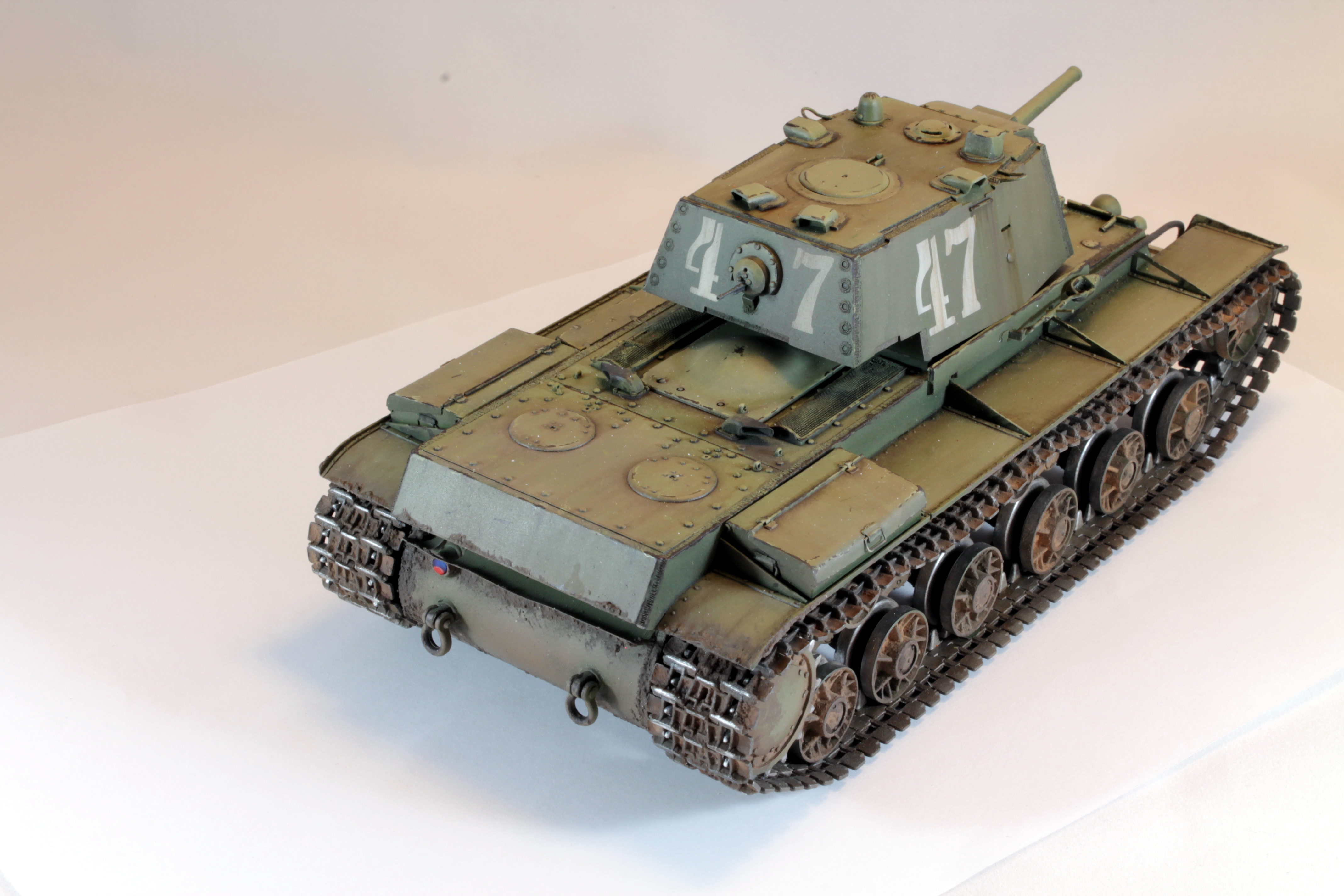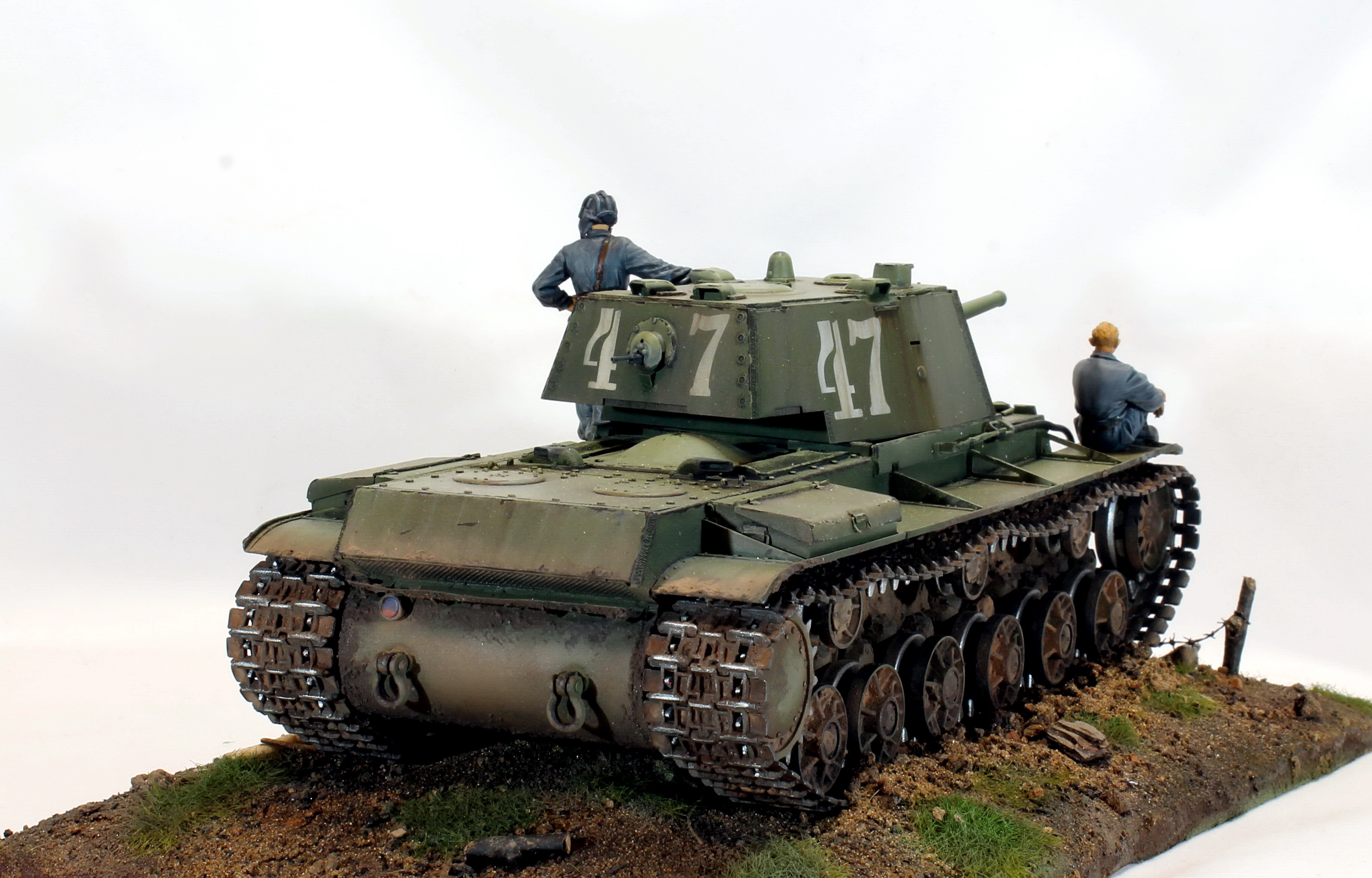 Решил попробовать свои силы в БТТ 1:35. Первой моделью был выбран набор от Трампа КВ-1, предусматривающий сборку огнеметного танка КВ-8. За прототип было решено взять машину с бортовым номером 47 с Волховского фронта.