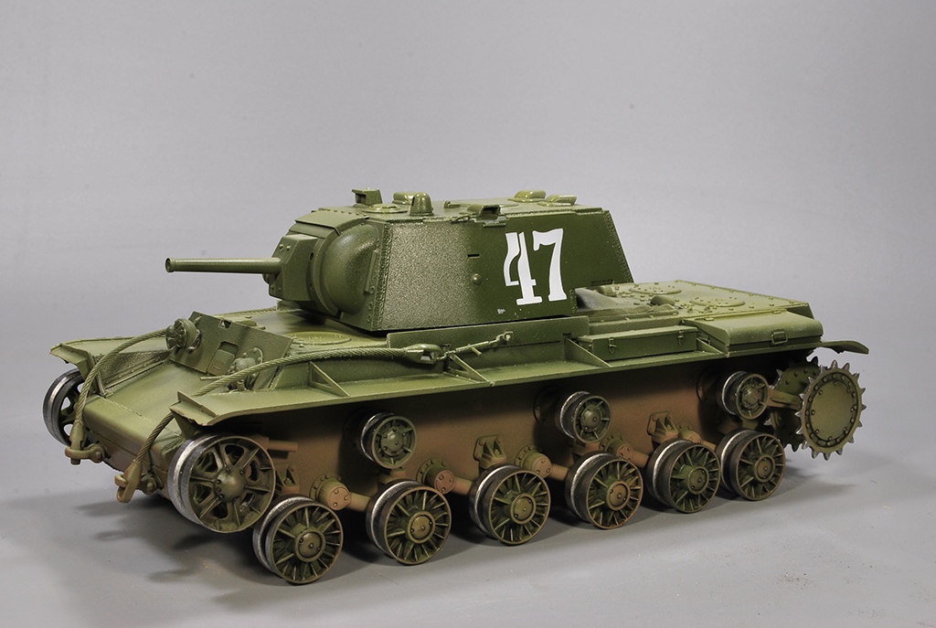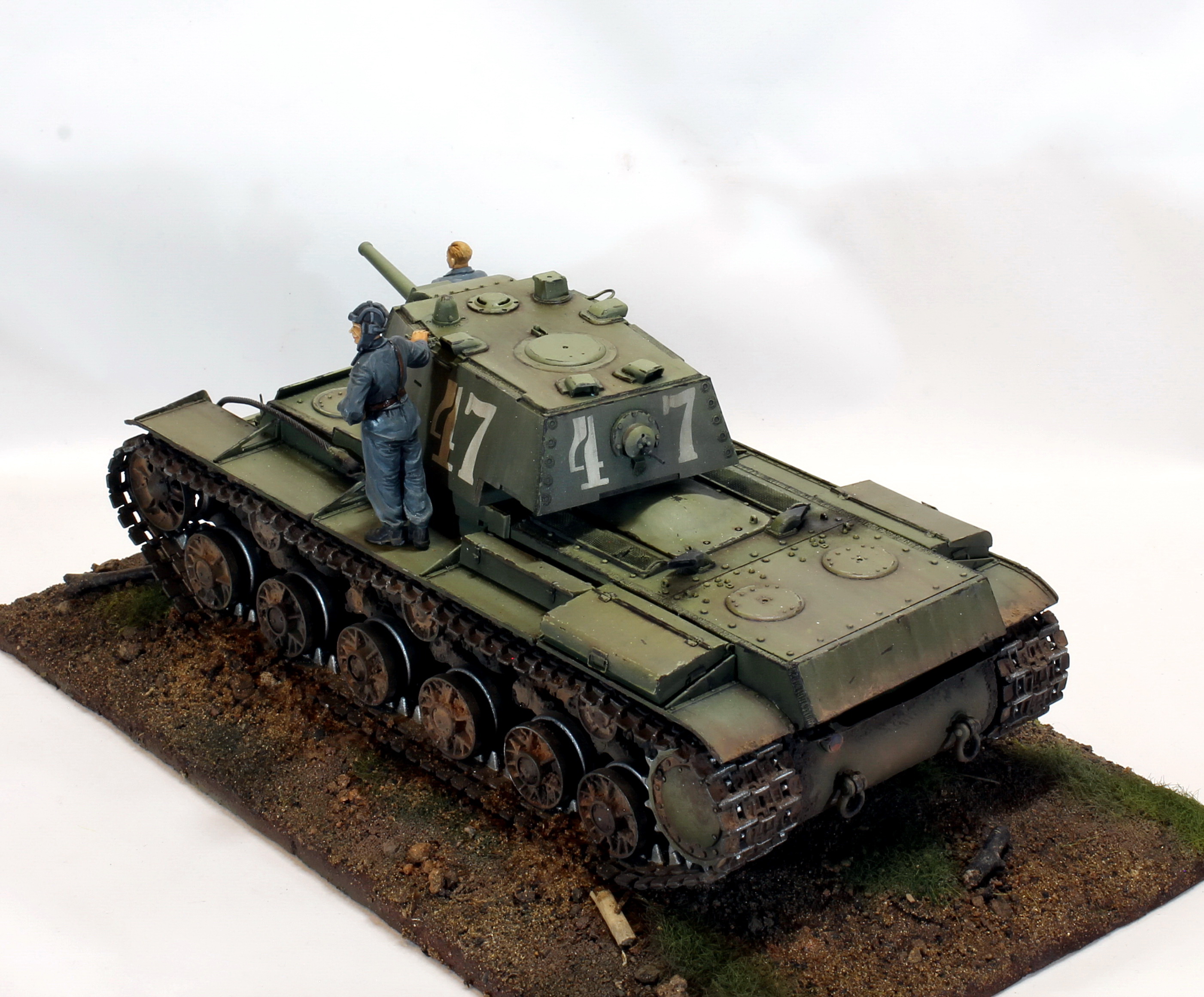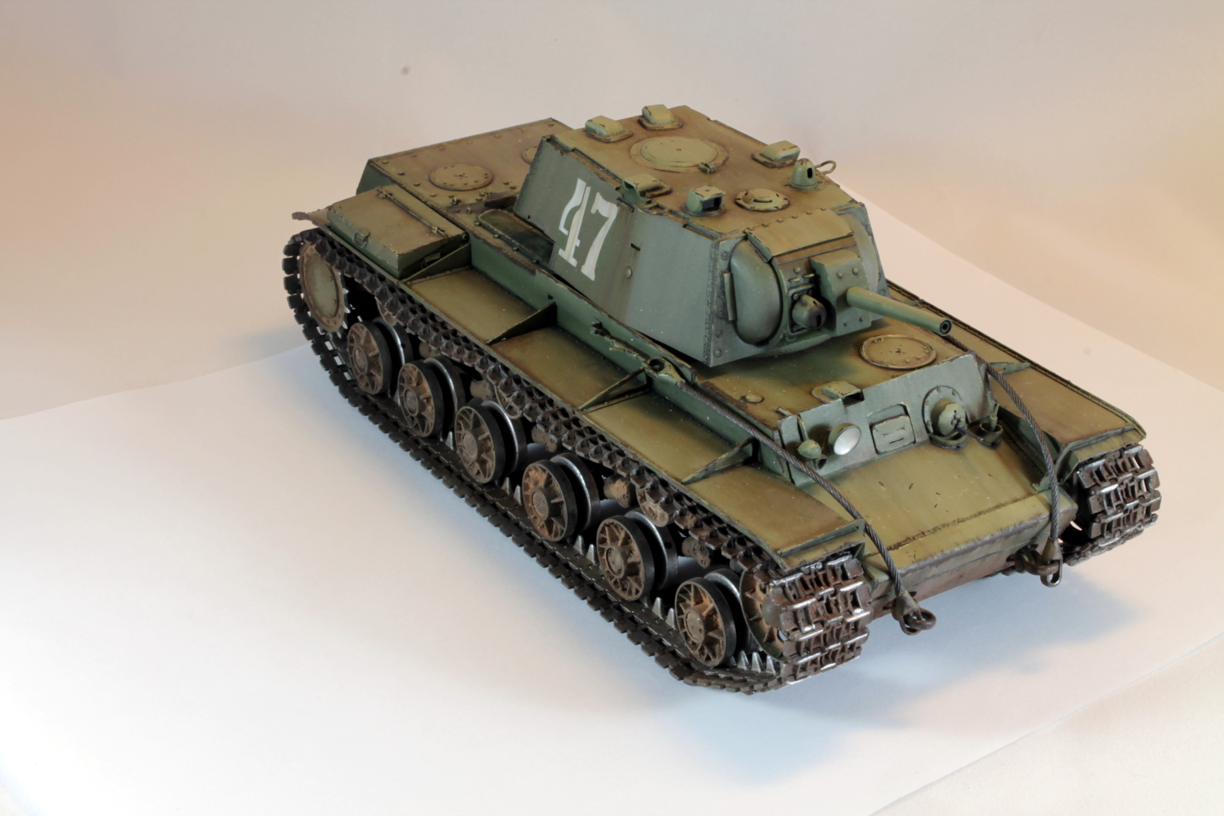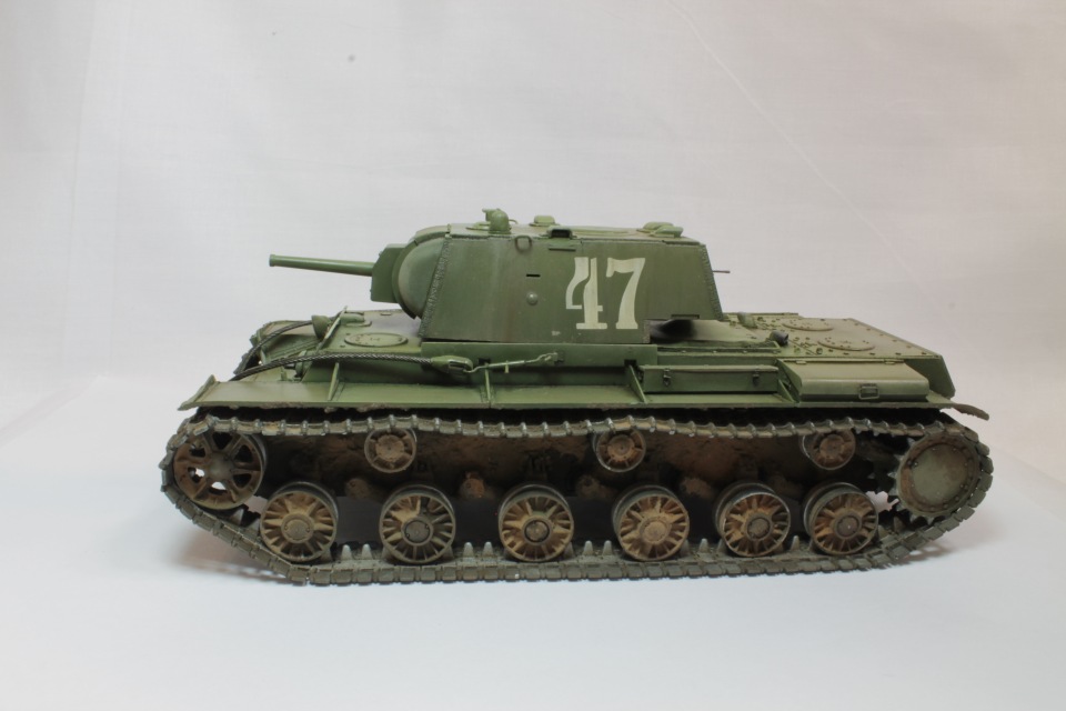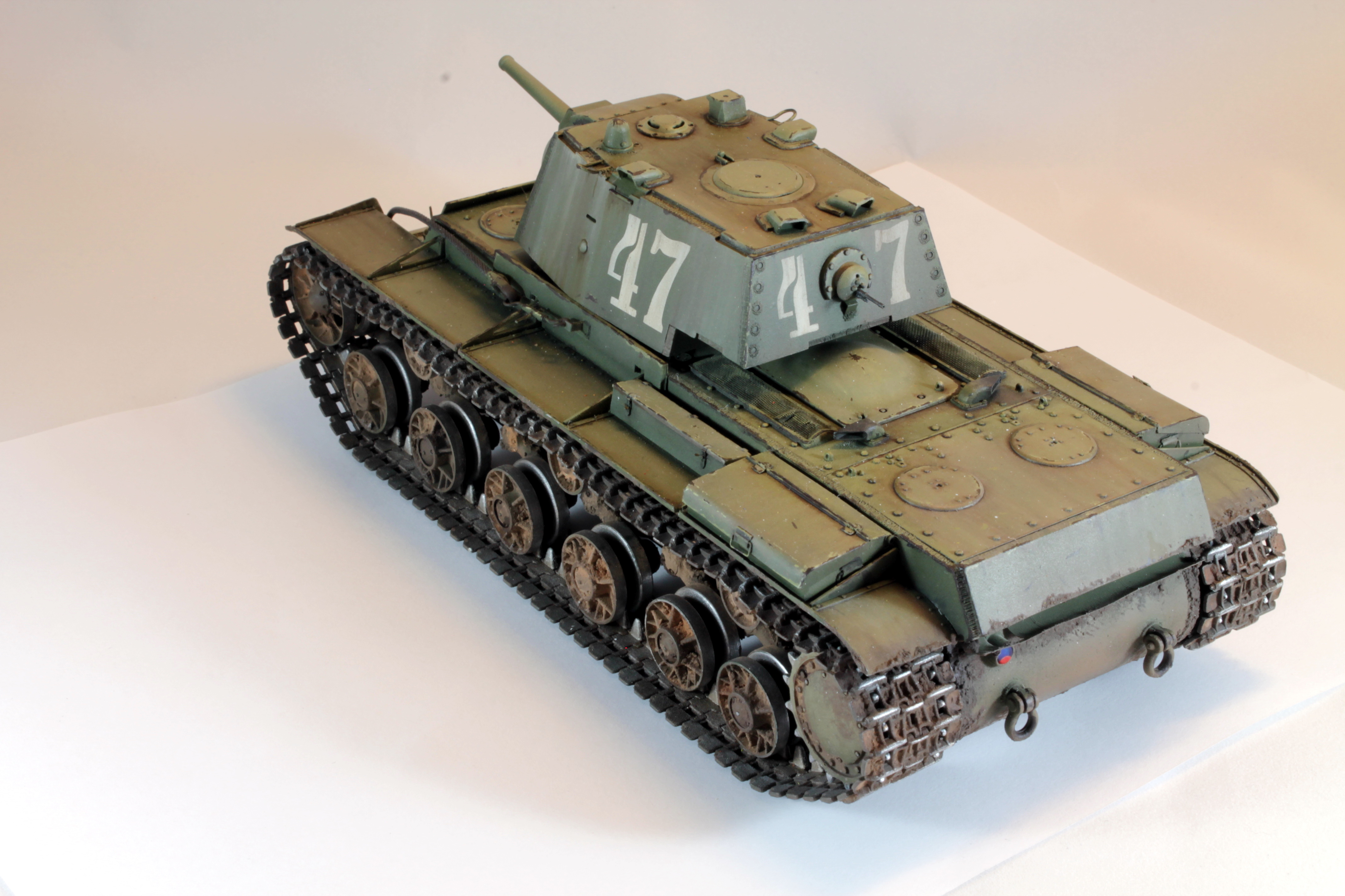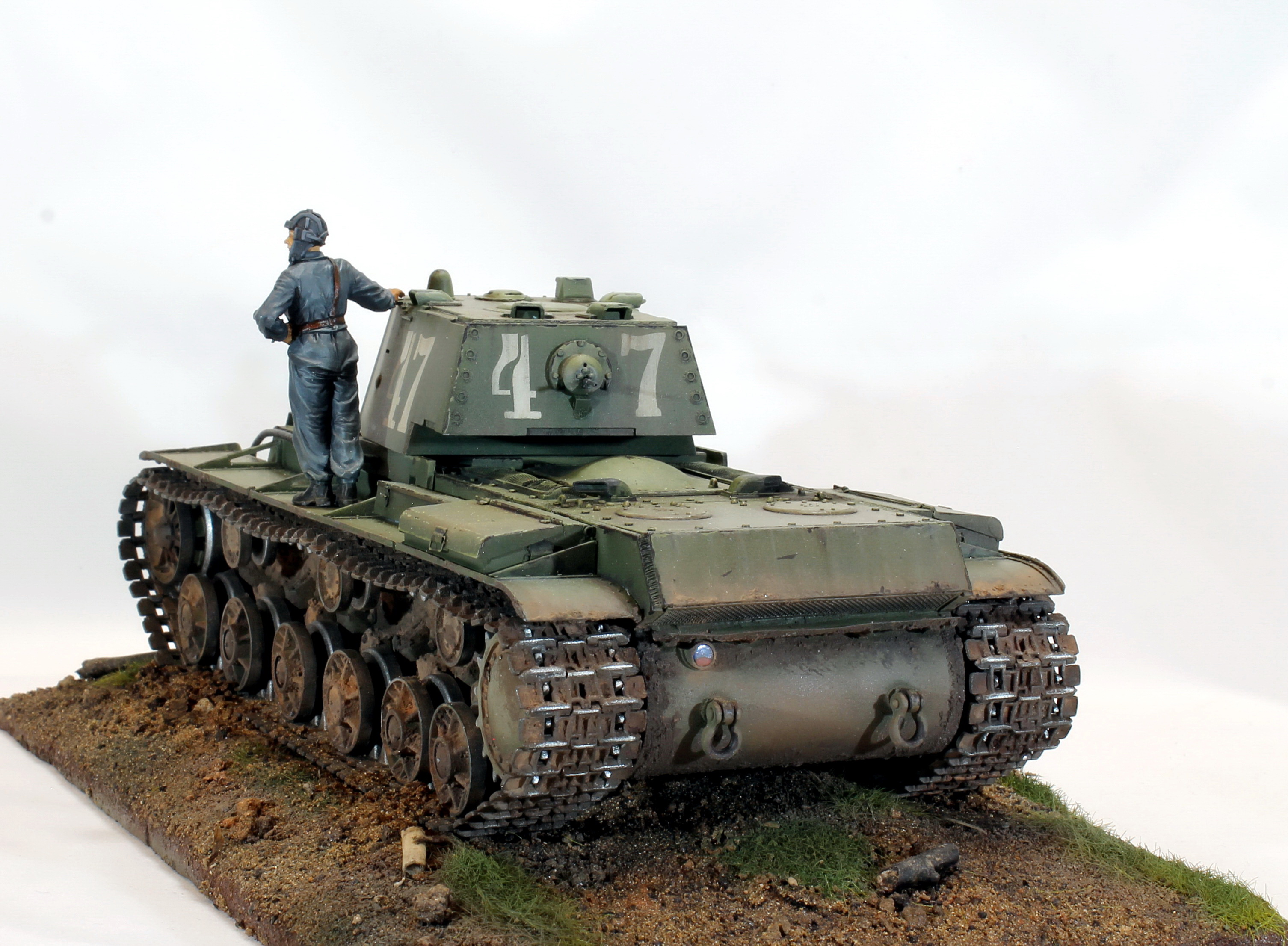 Решил попробовать свои силы в БТТ 1:35. Первой моделью был выбран набор от Трампа КВ-1, предусматривающий сборку огнеметного танка КВ-8. За прототип было решено взять машину с бортовым номером 47 с Волховского фронта.