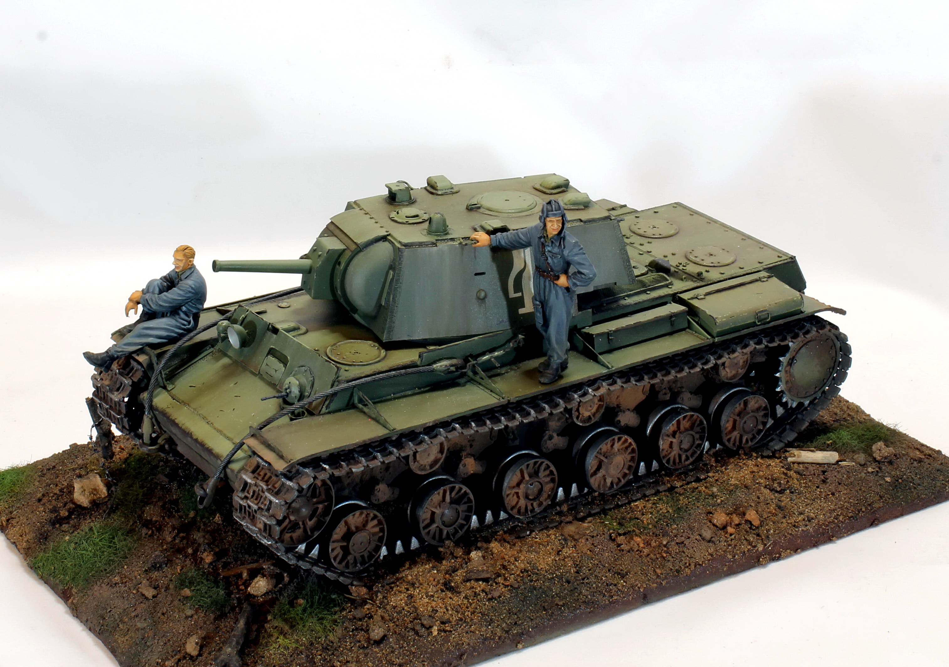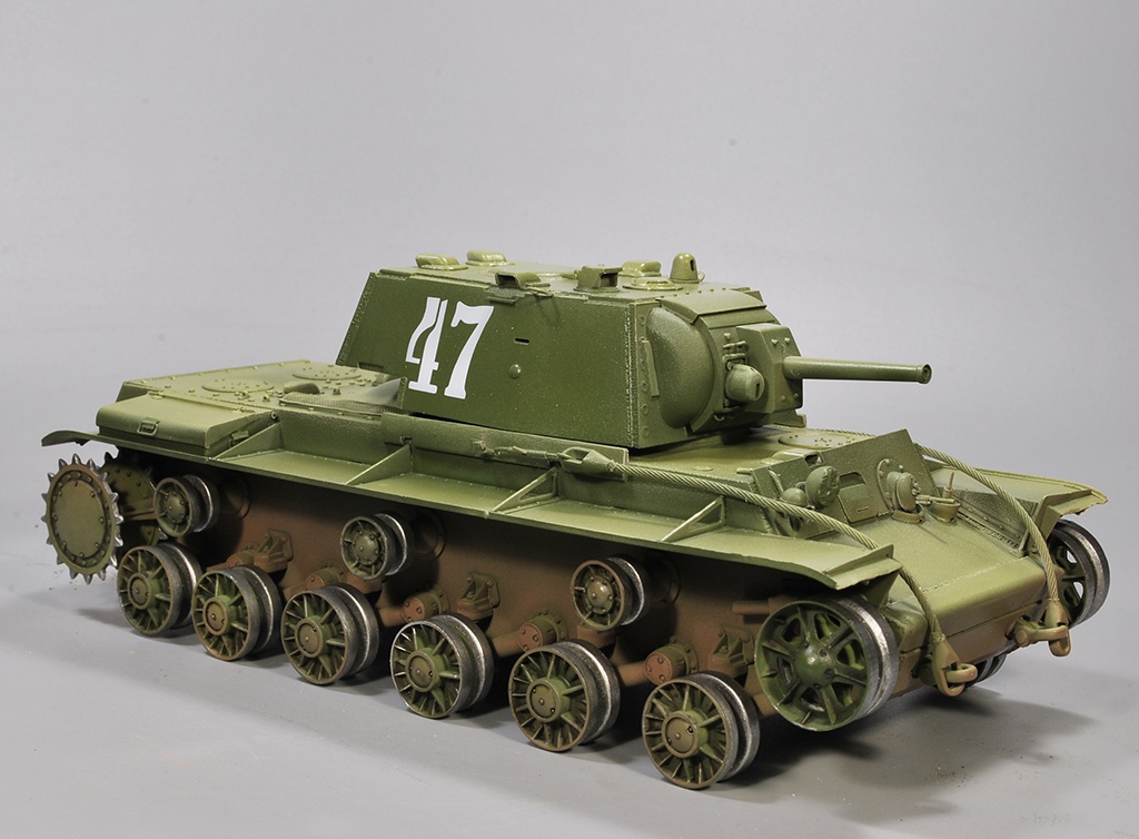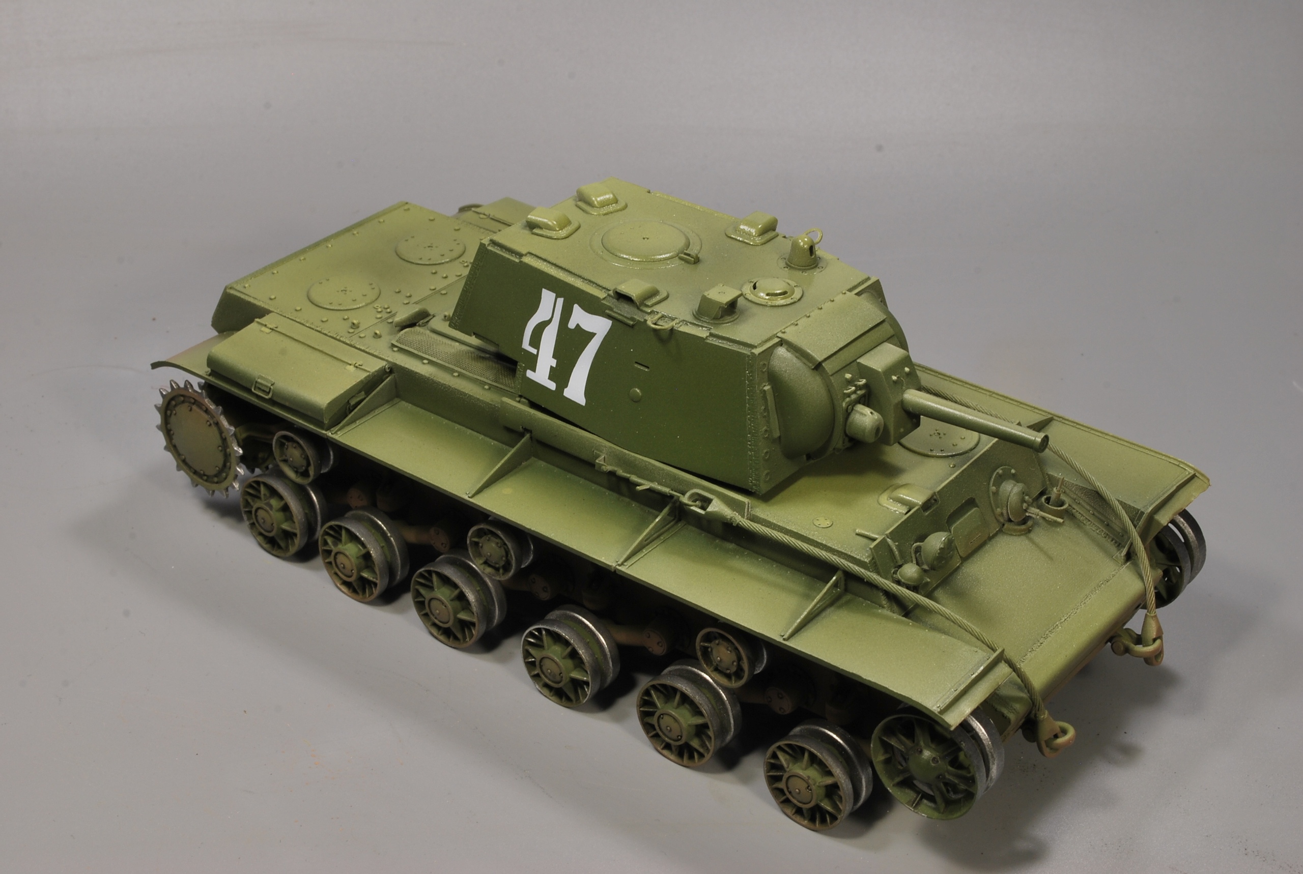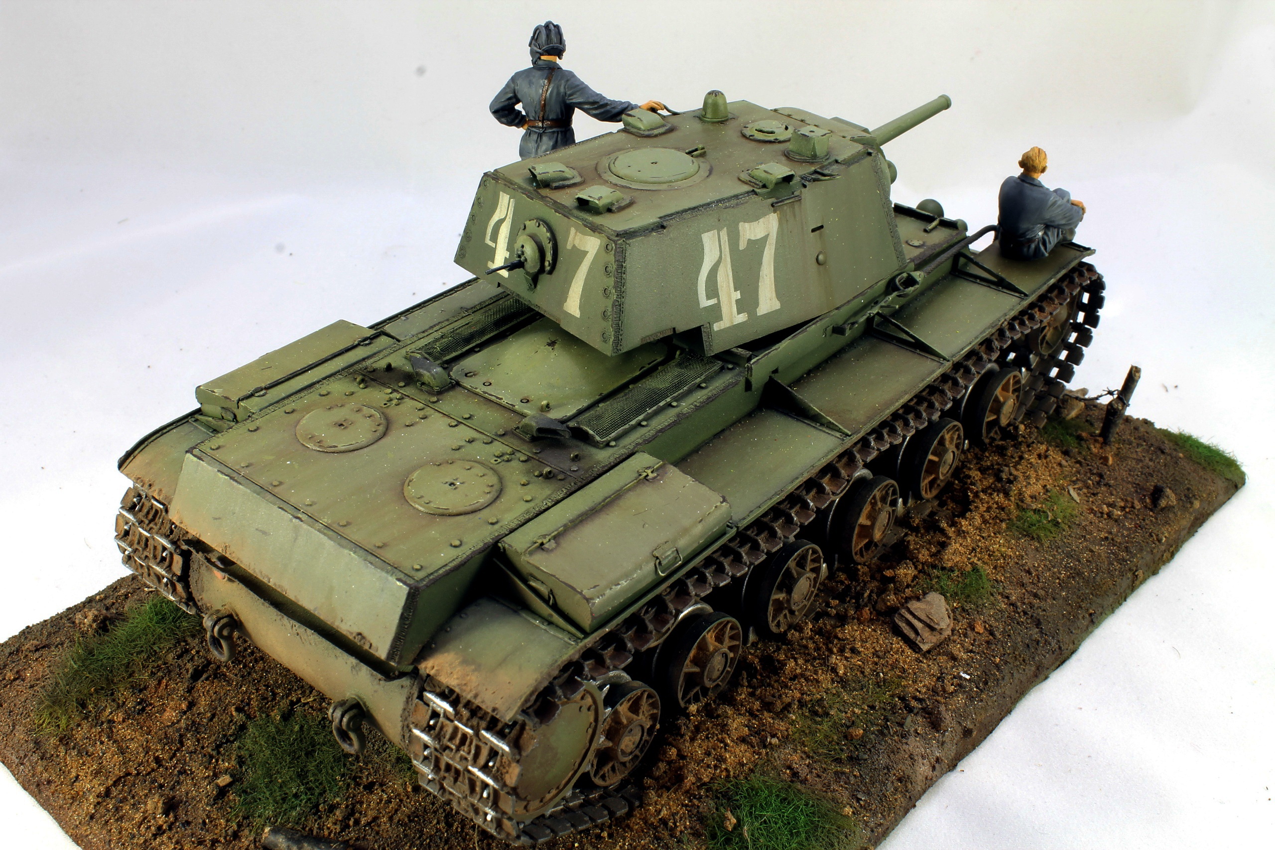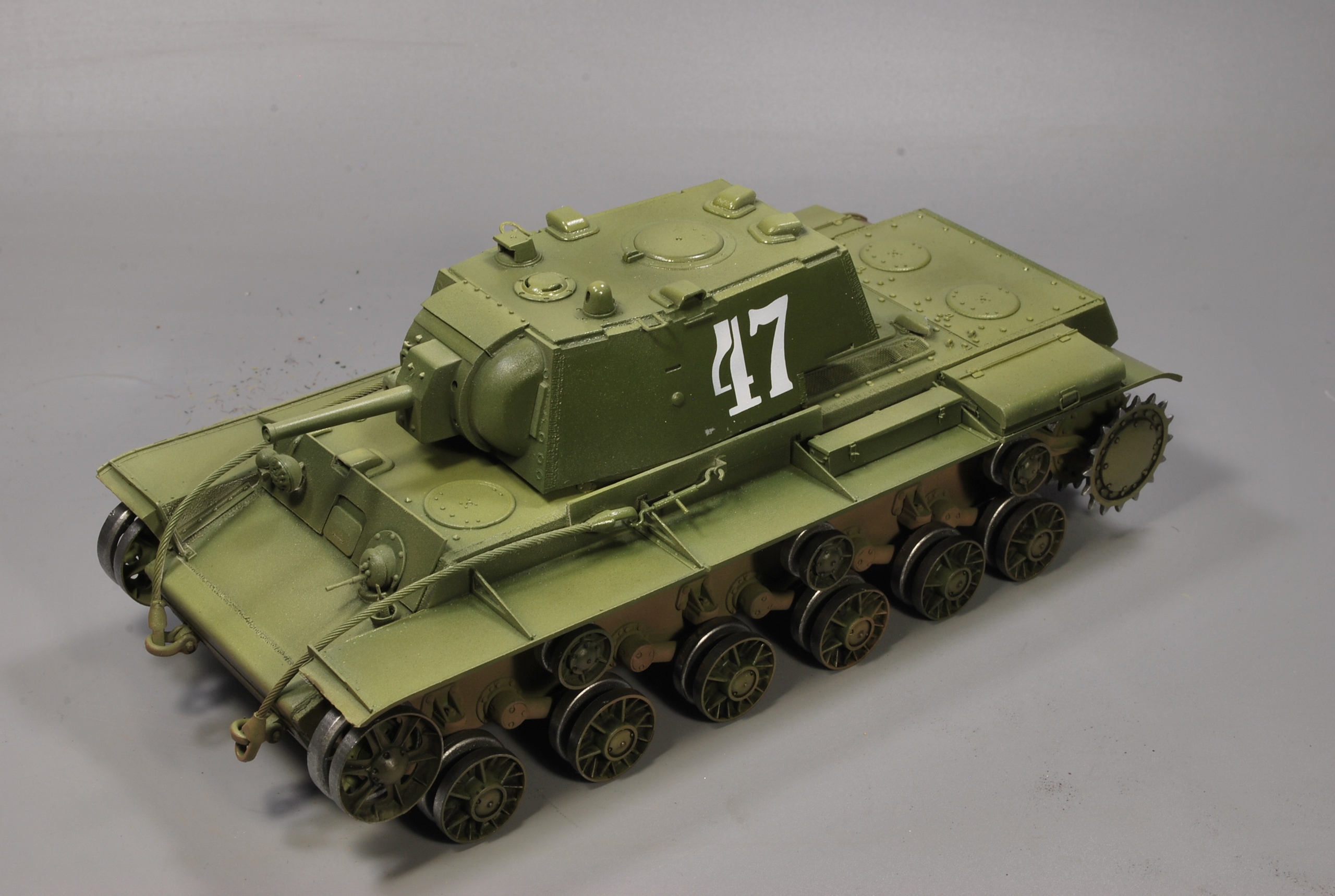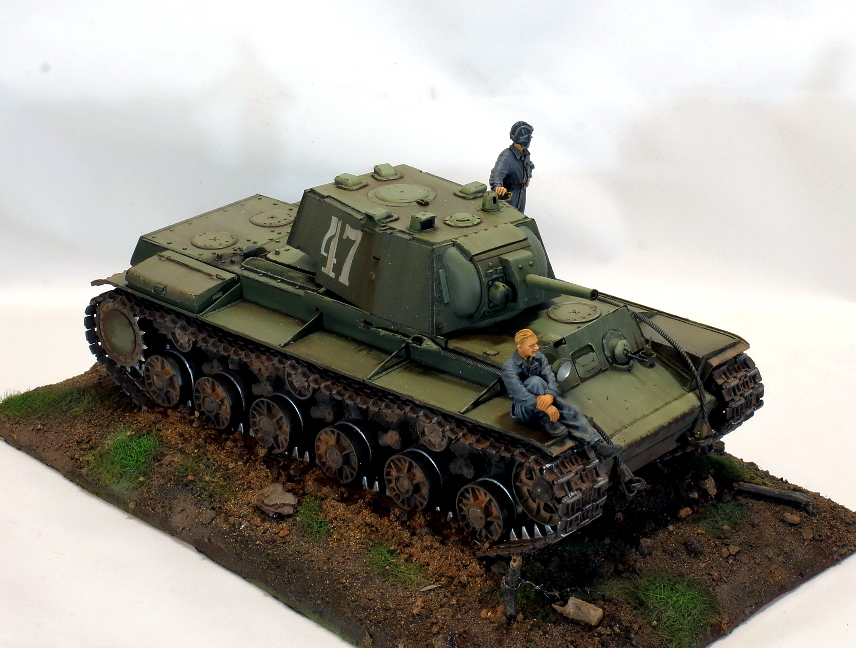 Решил попробовать свои силы в БТТ 1:35. Первой моделью был выбран набор от Трампа КВ-1, предусматривающий сборку огнеметного танка КВ-8. За прототип было решено взять машину с бортовым номером 47 с Волховского фронта.