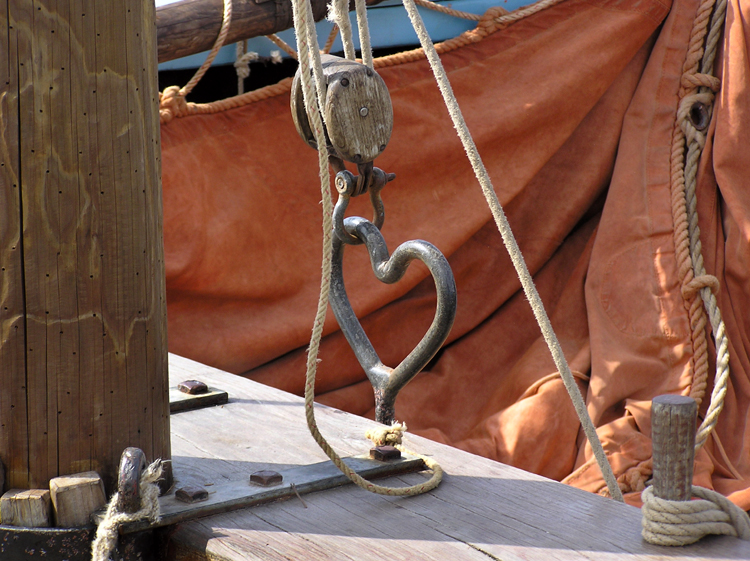 А вот эта фотка меня вообще поставила в тупик. Что у них там происходит с палубой? Почему она такая "кусковая", да еще и доски разной ширины. И что за сквозные отверстия? Вода ведь будет через них уходить в трюм...