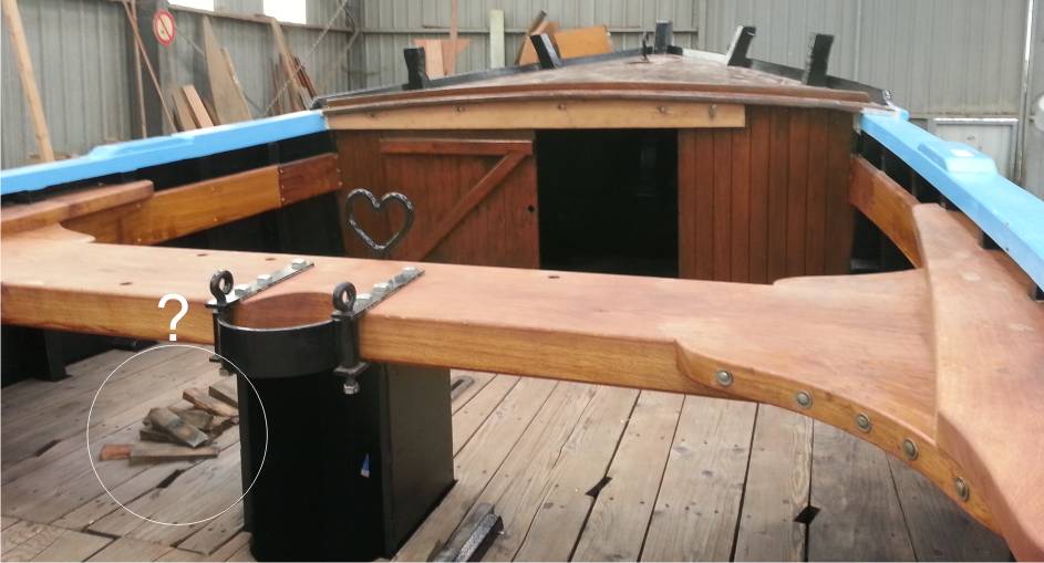 А может там просто съёмные участки настила? Просто пол ладони засунул, пальцы согнул, и кусок палубы вытащил. А там, под крышкой, ящик для рыбы, например?
