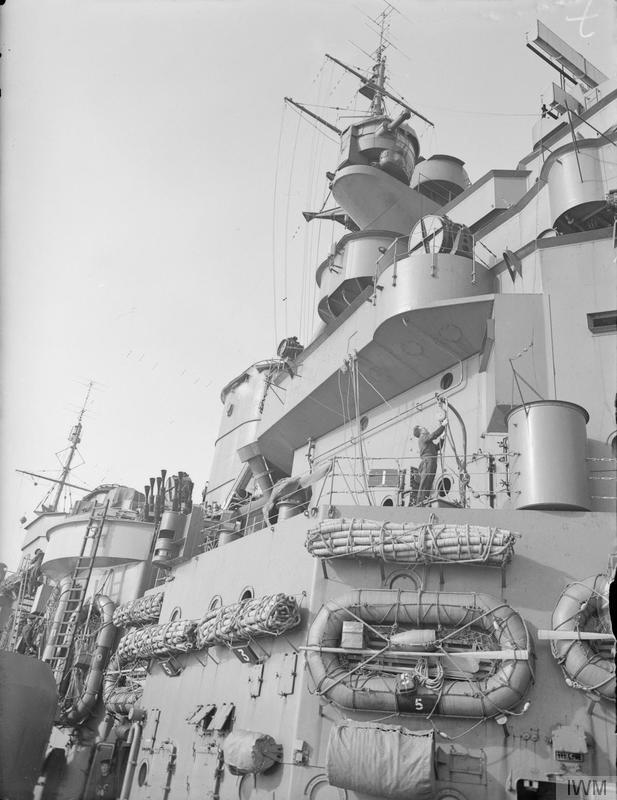 С кабелем все интересней так-как решено было делать модель на 43-ий то тут на корме он есть а вот на носу уже его нет..После его столкновения с Пенджаби и последующего ремонта носовой части.,они не чего лучше не придумали, чем затолкать его внутрь через иллюминатор....=)..лентяи =) нет чтоб сразу всё переделать,ну и ладно и мы так сделаем