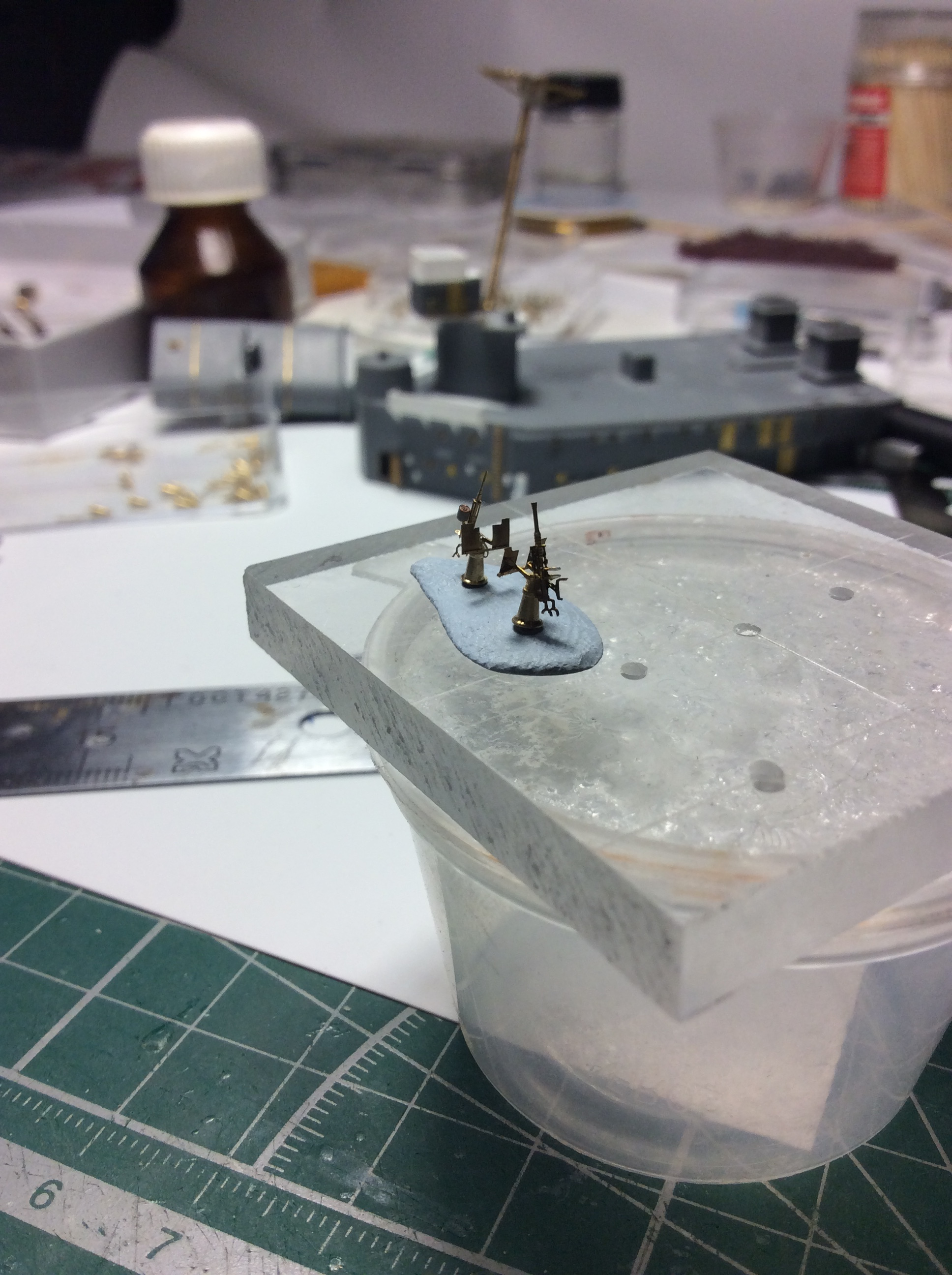 Моя доделка 127мм артиллерии ...а также носового арт.радара.В основном использовалась травление от Eduard и Pontos .Не всё так чистенько и аккуратно как хотелось бы