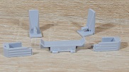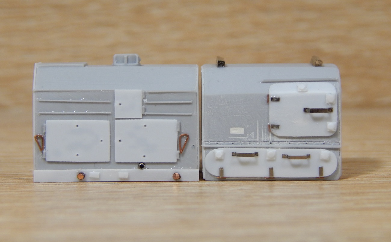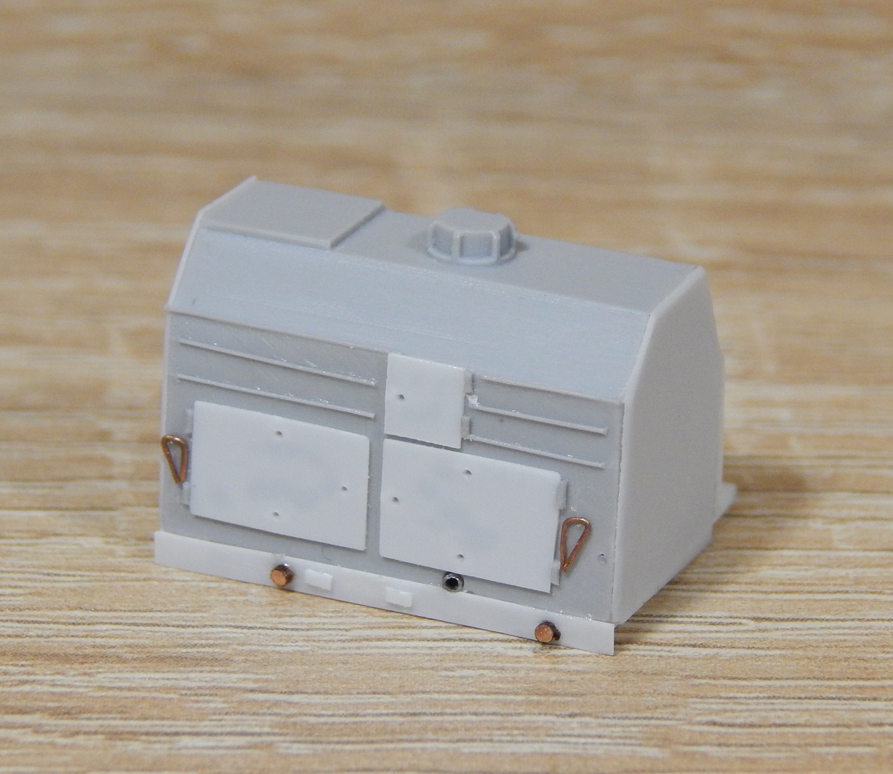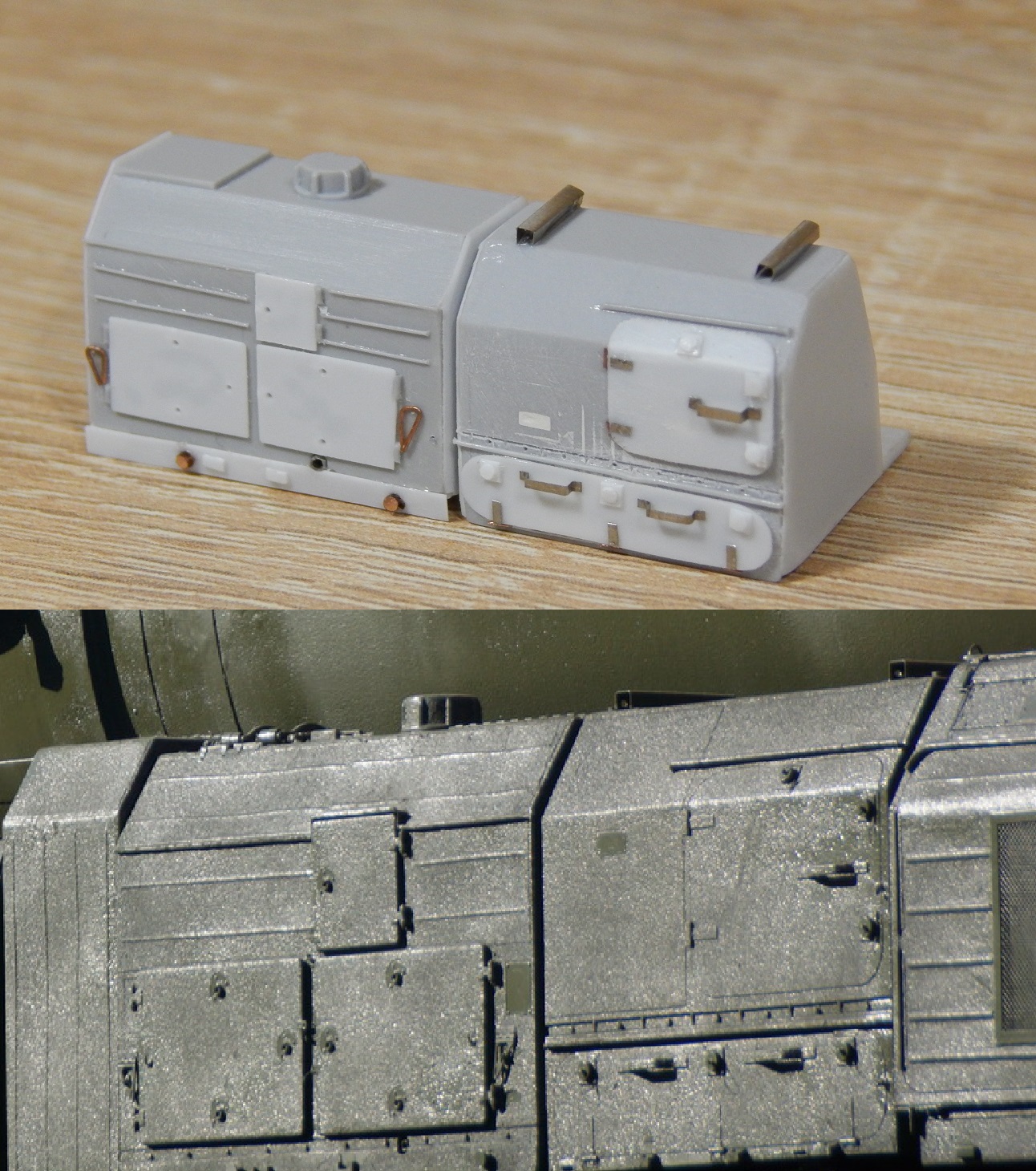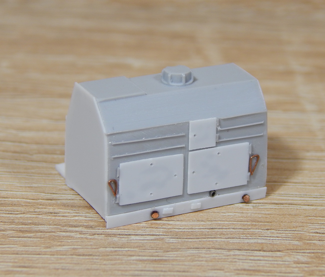 После предварительной установки бункеров выяснилось что они слишком широкие и положить раму ТПК между правыми и левыми бункерами невозможно. Тут конечно можно было сточить у бункеров задние стенки и проблема решена, но дальше изучив детально фото прототипа оказалось что геометрия, и рельеф ряда бункеров производителя не соответствуют действительности. Было решено использовать бункера от Звезды и потратить кучу времени чтобы заново уже самому отрисовать лицевые стенки бункеров для изготовления в травле.