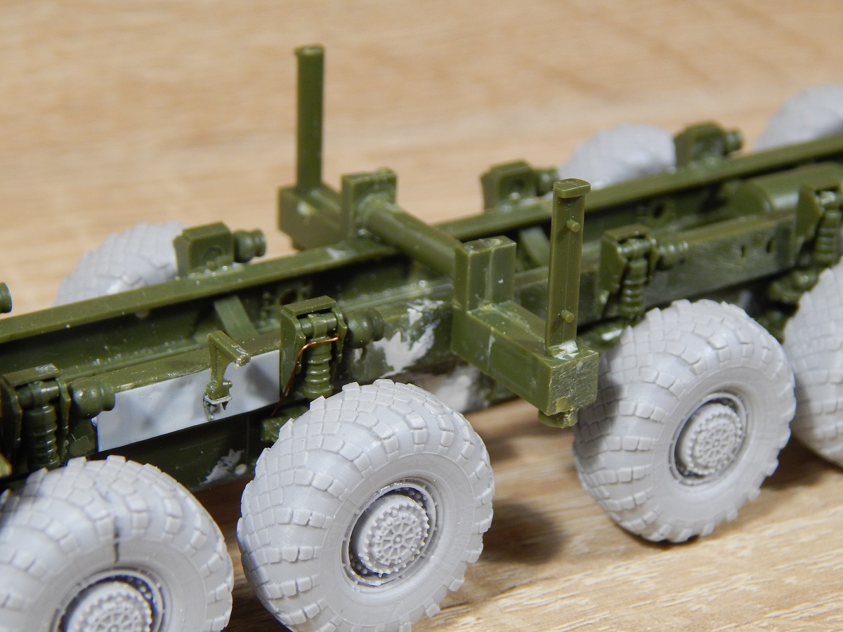 Рама ТПК тозе от Звезды, так как смоляная сильно короче и она винтом. Петли крепления к задней балки я аккуратно срезал и перевернул задом на перед, чтобы повторить их наклон как у прототипа.