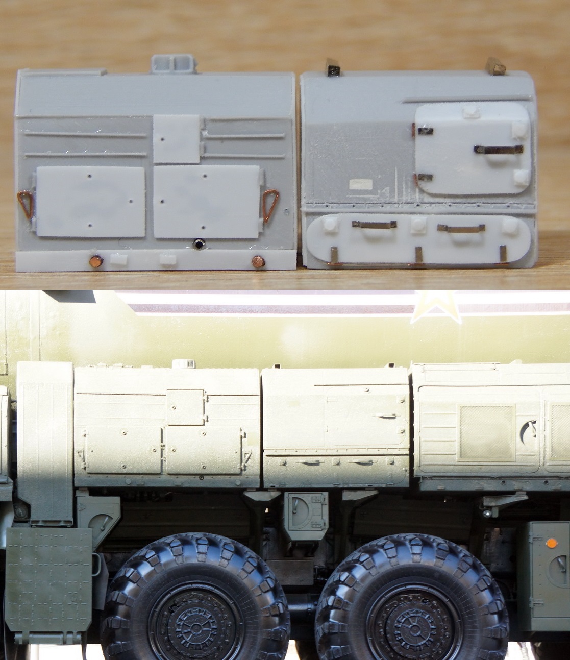 Транспортно пусковой контейнер тоже от Звезды с частичным обвесом от исходного набора. Обвес исходника тоже пришлось пилить и доводить до ума