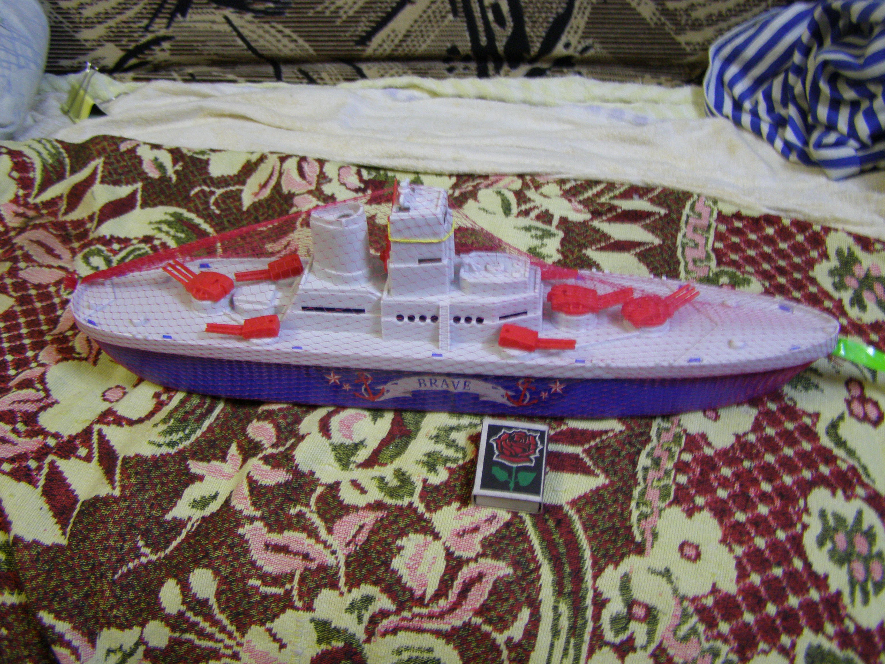 Сильно подставил грунт автомобильный, давший лютую шагрень... Огрехи в покраске умышленно не исправлял - масштаб для кораблей очень крупный и огрехи "ручной" покраски должны быть видны (всё-таки по легенде "на коленке" собирали же)