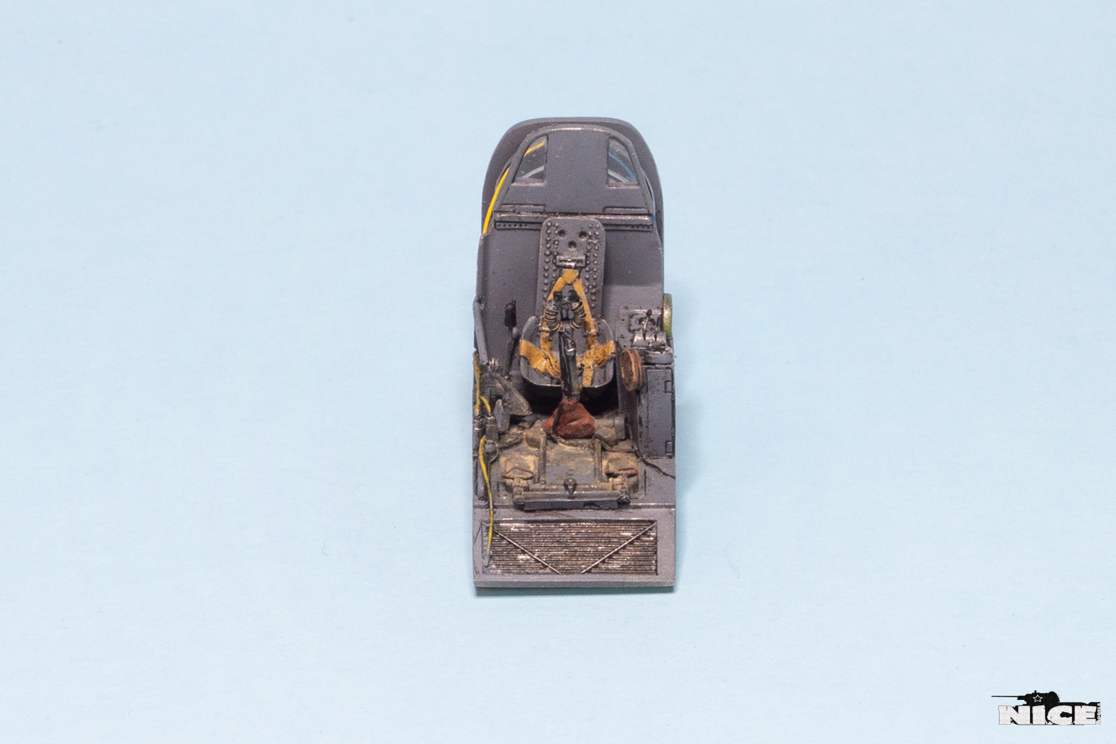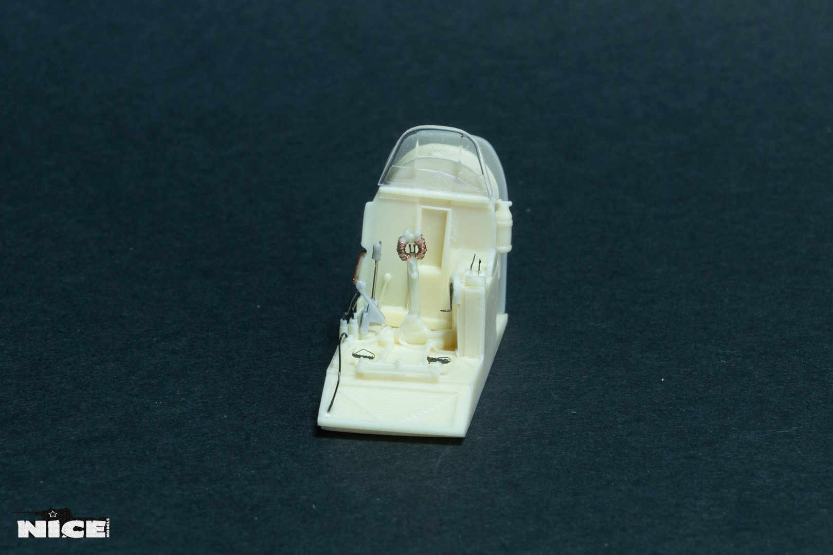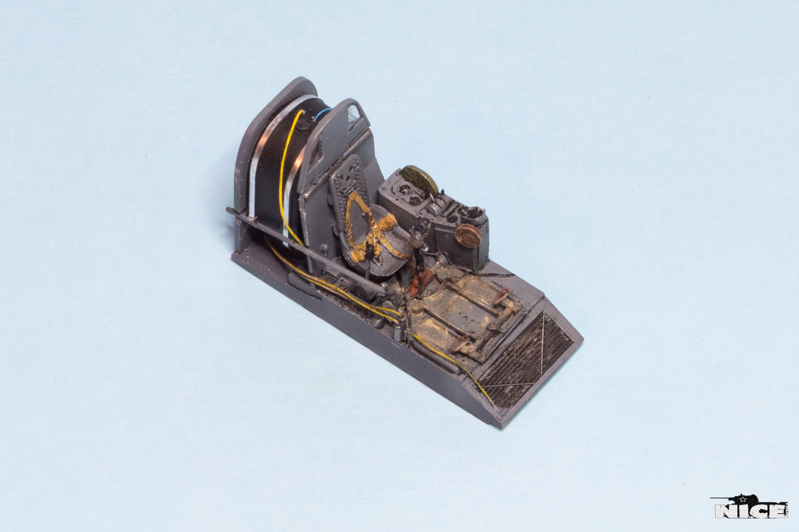 В первую очередь занялся кабинетом. Сделал оплетку на ручке, добавил травленые гашетки, из проволоки провода и шланги. На баке срезал смоляные шланги, потом сделаю из проволоки. Установил травленые педали и ручки. Доработал китовую ручку АСШ. Срезал смоляную бронеспинку выше кресла пилота и заменил ее на стеклянную.