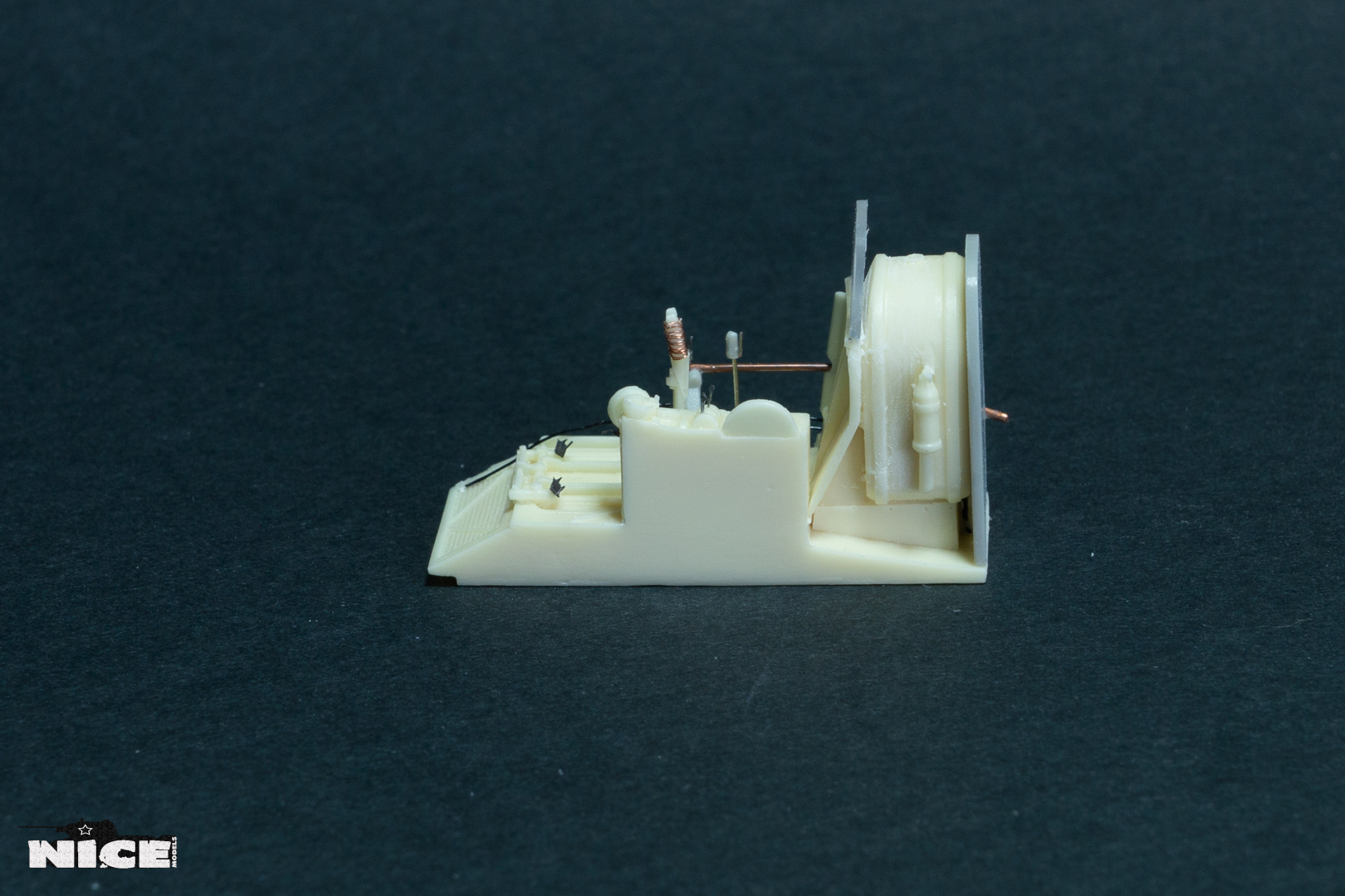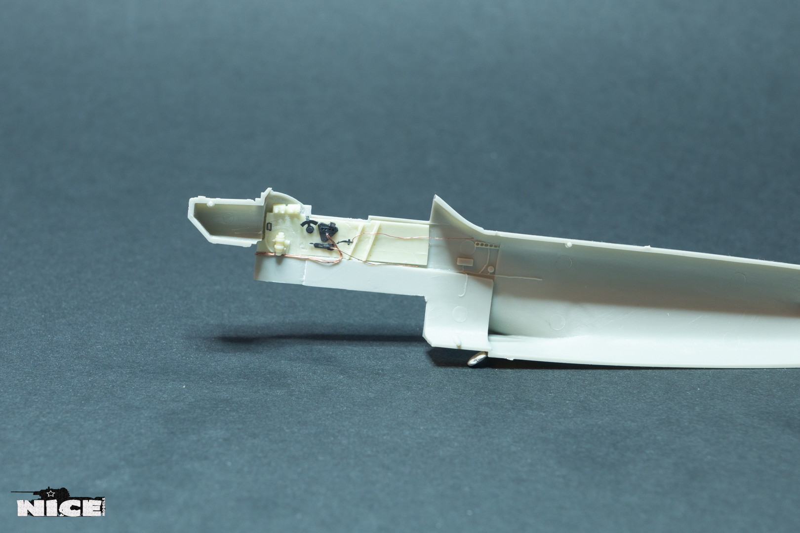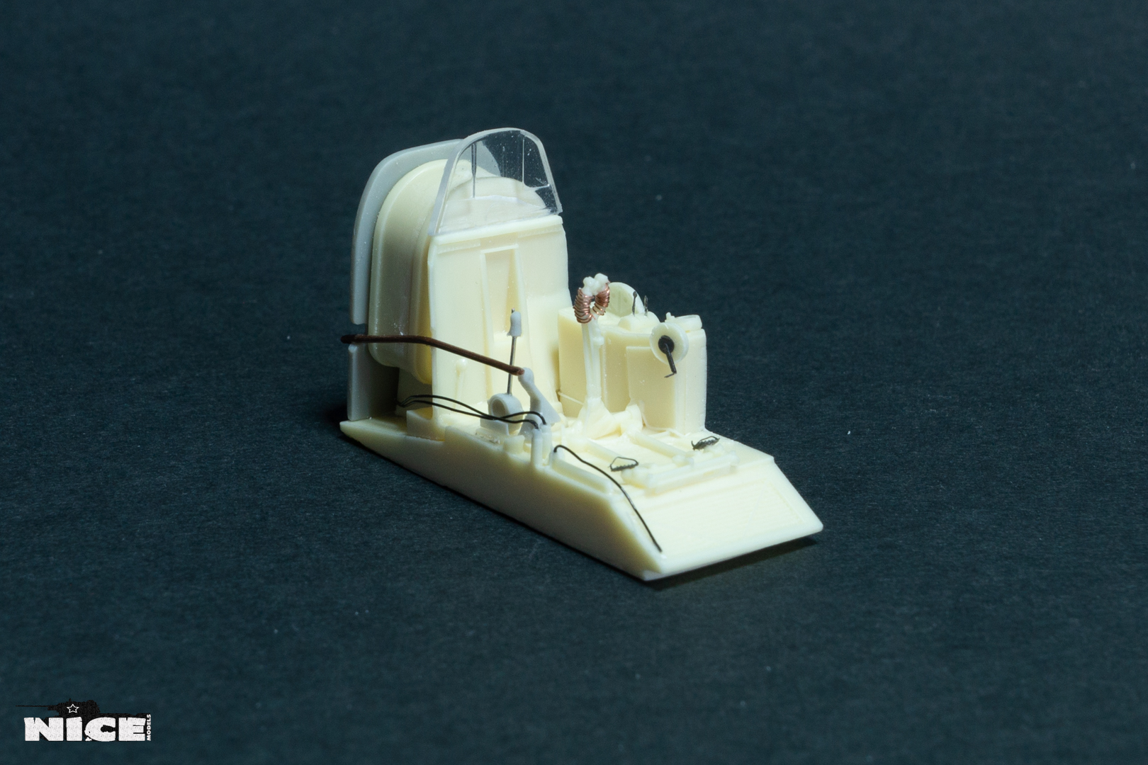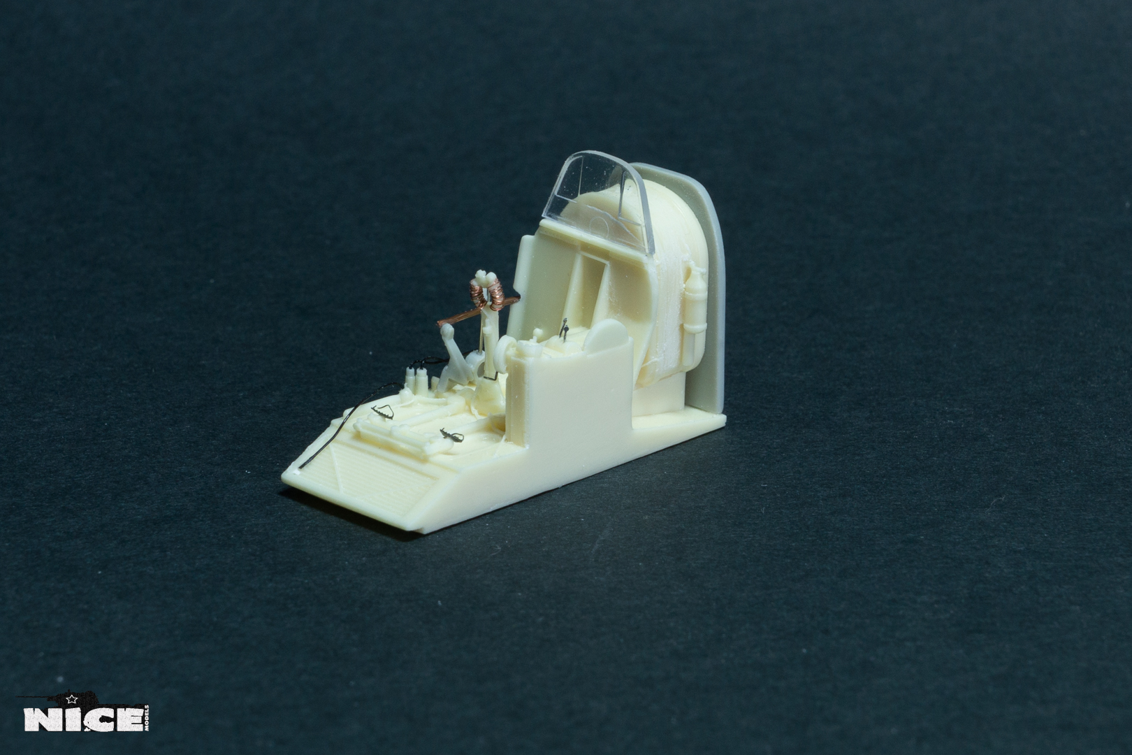 В первую очередь занялся кабинетом. Сделал оплетку на ручке, добавил травленые гашетки, из проволоки провода и шланги. На баке срезал смоляные шланги, потом сделаю из проволоки. Установил травленые педали и ручки. Доработал китовую ручку АСШ. Срезал смоляную бронеспинку выше кресла пилота и заменил ее на стеклянную.