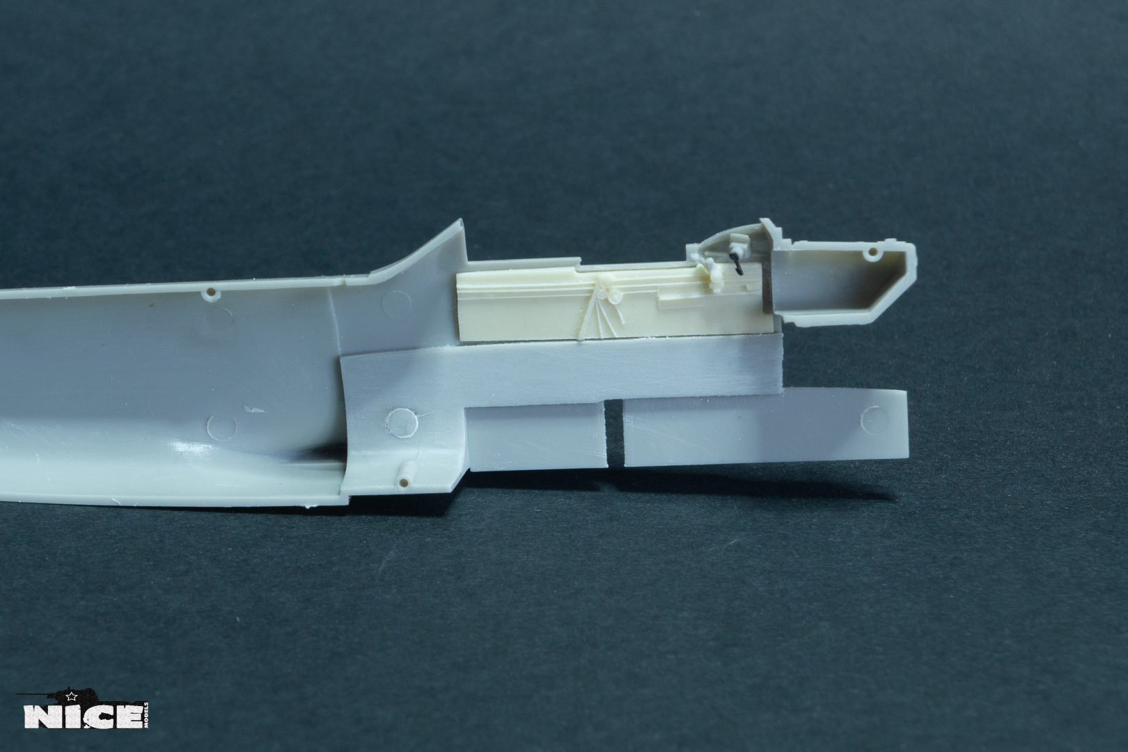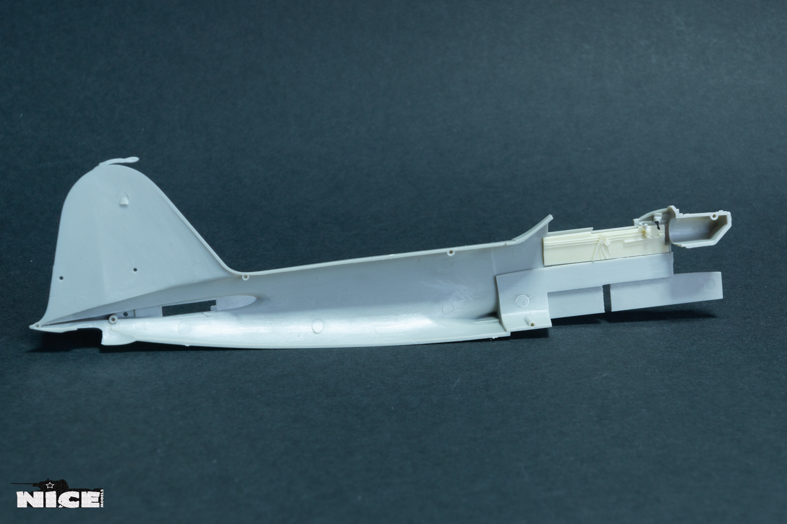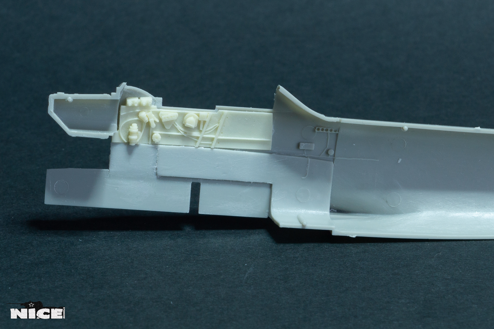 Далее занялся центропланом. Вырезал люки бомбоотсеков и вклеил туда смоляные. В смоляные ниши вклеил травленое дно т.к. при стачивании смолы я его повредил. Вклеил травленые боковинки ниш шасси. Сточил стенки бронекожуха маслорадиатора и поставил в него травленые заслонки. Установил отклоняющуюся пластину на выходе из маслорадиатора. Приклеил смоляные боковинки на фюзеляж. По правому борту есть вопросы к смоле. Непонятны приборы, если у кого есть нормальные фото правой стороны кабины, прошу выкладывайте.