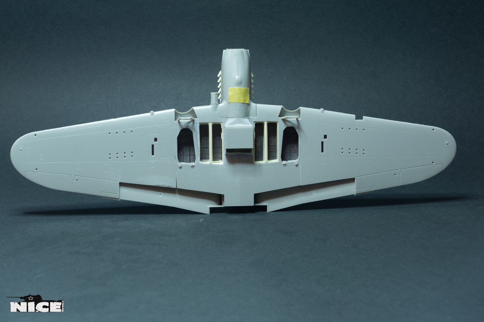 Итак. Установлен кабинет в фюзеляж. С этим пришлось сильно повозиться, баллон на баке пришлось срезать т.к. с ним смола не хотела вставать на место. В общем весь пластик изнутри пришлось срезать. Склеить половинки крыльев до приклеивания к фюзеляжу было большой ошибкой! Пришлось долго и нужно шпаклевать щели.