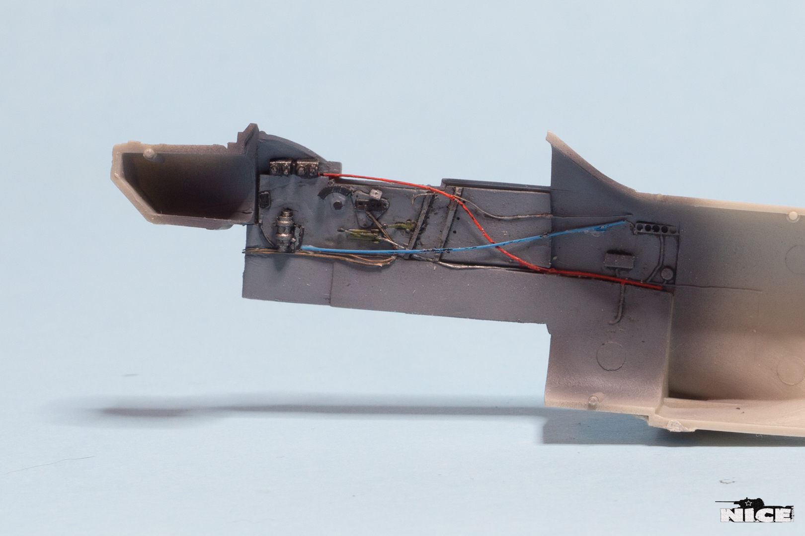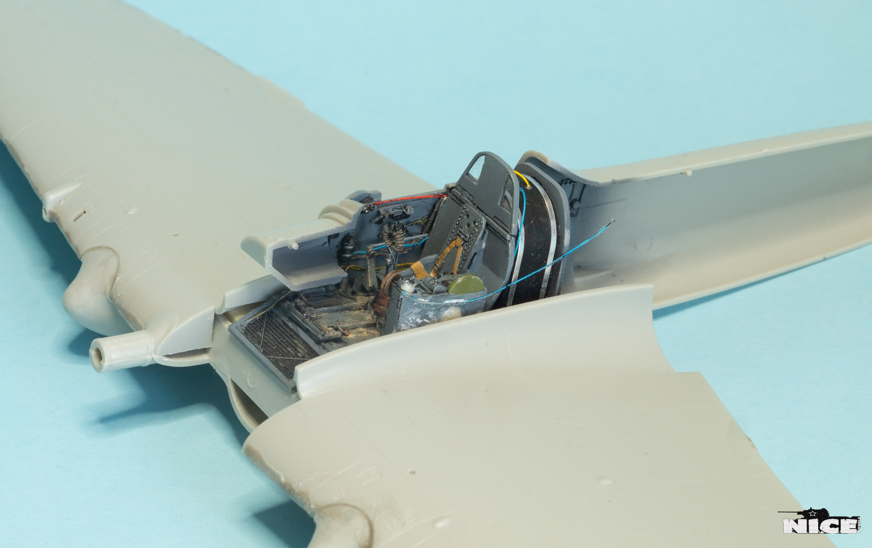 Продолжим строить ил-2. В кокпите окрашена мелочевка, использовал акрил от валехо, звезда и пацифик. Далее покрыл все футурой и по ней сделал смывку Mig. После просушки, убрал излишки смывки и покрыл сатиновым лаком Vallejo Premium. На пол нанес грязь и пыль жижками АК. Так же добавлена проводка и шланги. Из самоклейки сделал стяжные ленты на бензобаке. Установил ниши шасси. Все стыки пролил жидкой шпатлевкой от Aurora.