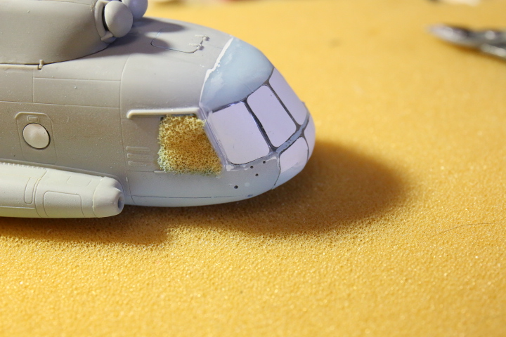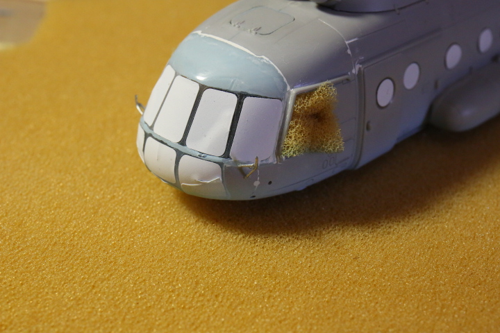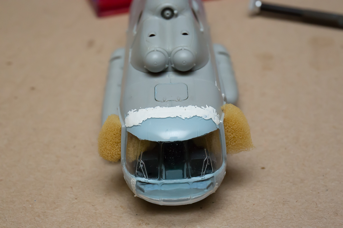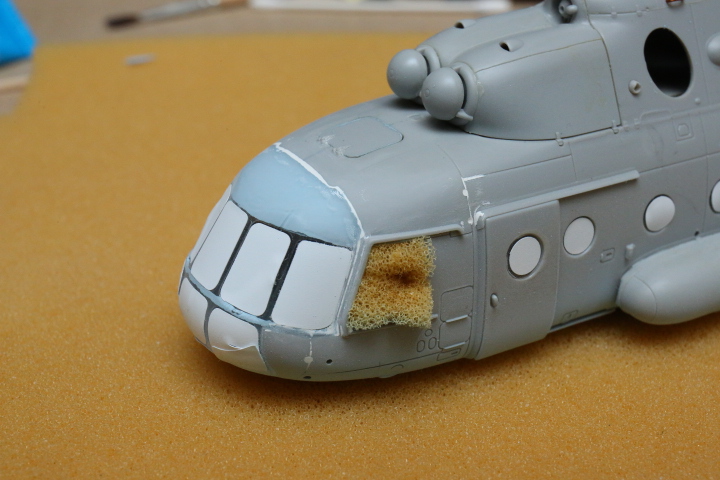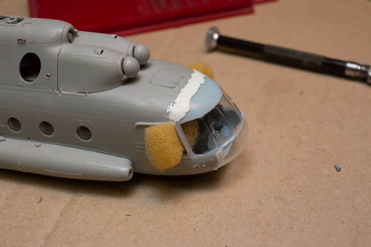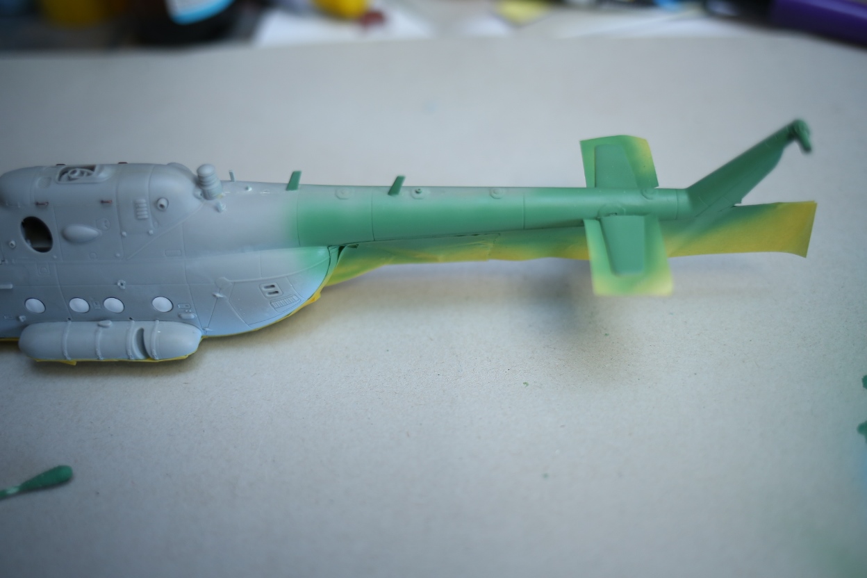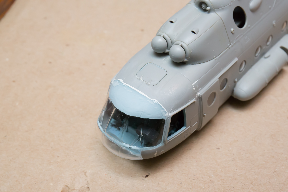 Блин, нравится мне хоббибосовская модель... По мне так прекрасная геометрия, правильная форма остекления и расшивка, очень заметная уже сейчас, глубокая, хорошая! Вертолёт очень узнаваем... Зелёный пока что лёг хорошо! Очень постараюсь и дальше не испоганить! Пока мне самому очень нравится!