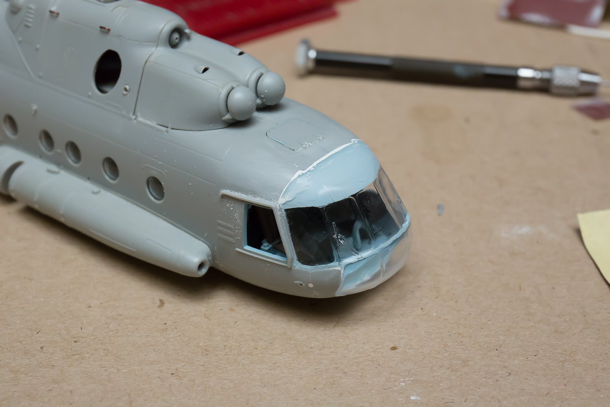 Тем временем, я потихоньку работаю с моделью.. Не доходят руки фотографии выложить. И так, что на сегодняшний день сделано. Вклеено остекление. Образовавшиеся швы зашпаклёваны. Хочу по возможности оставить как можно меньше следов от сстыка остекления с фюзеляжем.