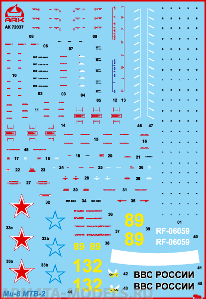 Эх, командир, поспешил со сборкой. Баки на хобиковской модели соответствуют модификации МТВ, а на фото прототипа-МТ. То бишь, четыре и три хомута соответственно... Кабину подогнать нужно было сначала, а потом её втуливать. Ладно, горе не беда.) Машина очень красивая и легендарная, я сейчас сам работаю над такой, перепак хоббика от АРК. Для начала,нужно конкретно определиться с прототипом. Если это Афганистан, то это может быть и МТ и, вроде как, МТВ, по последнему, фото очень мало. Если российский борт, то очень не плохой вариант предлагает АРК- авиация ВВ МВД. ОЗ в декали есть- белая полоса на балку и тактические номера, если надо, могу выслать, мне они не нужны.
