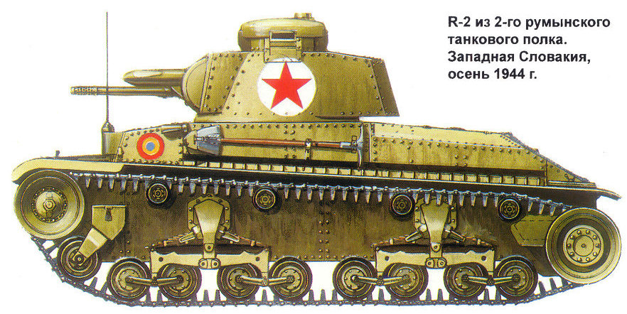 После переворота в Румынии от августа 1944 остался 2-й танковый полк румынской армии, в нем было пять R-2 (румынская модификация LT vz.35)