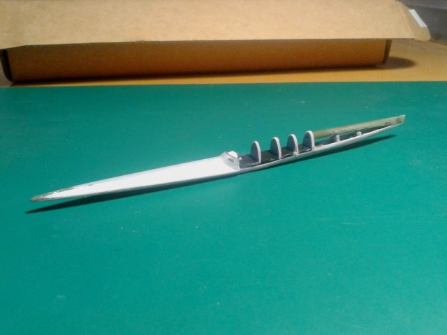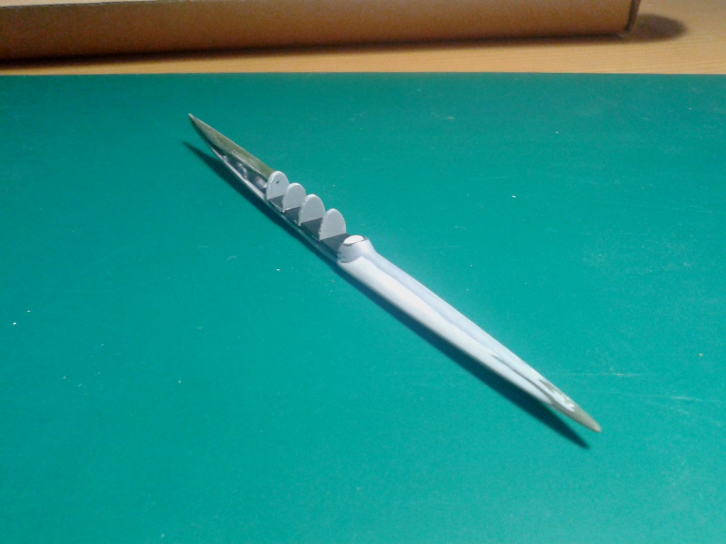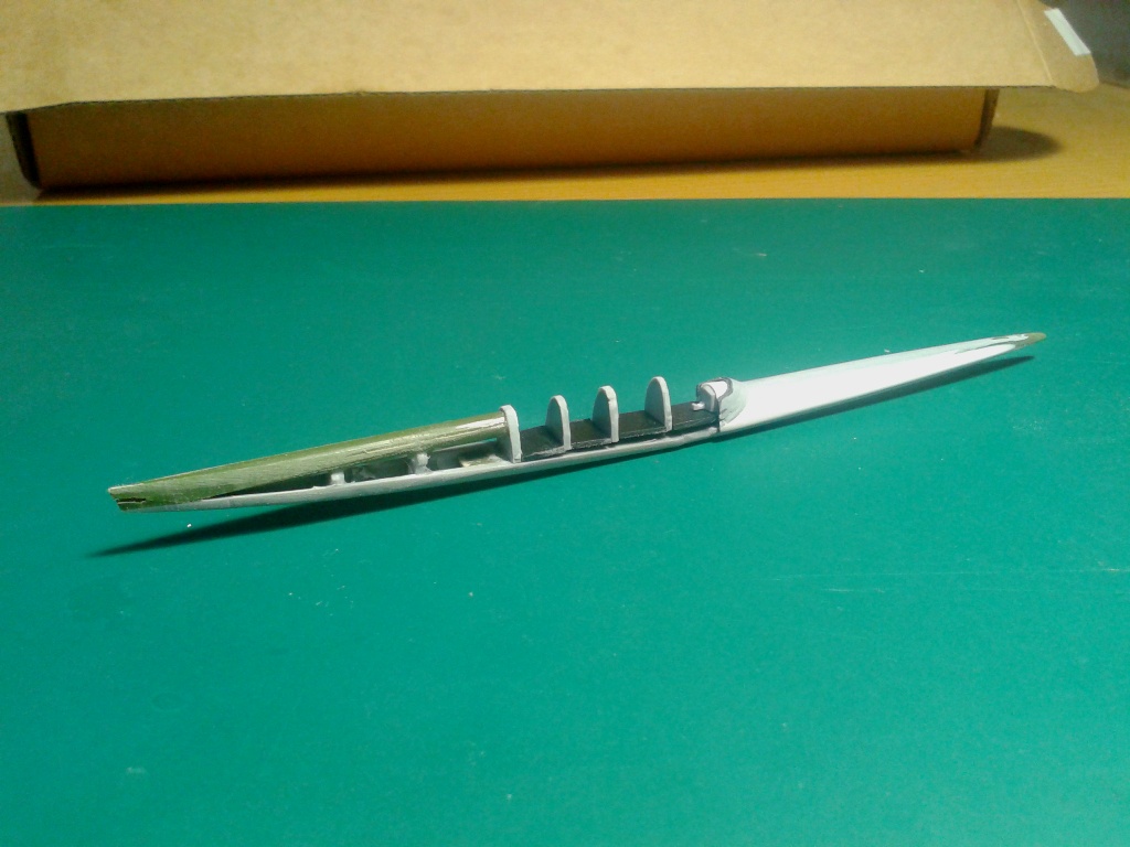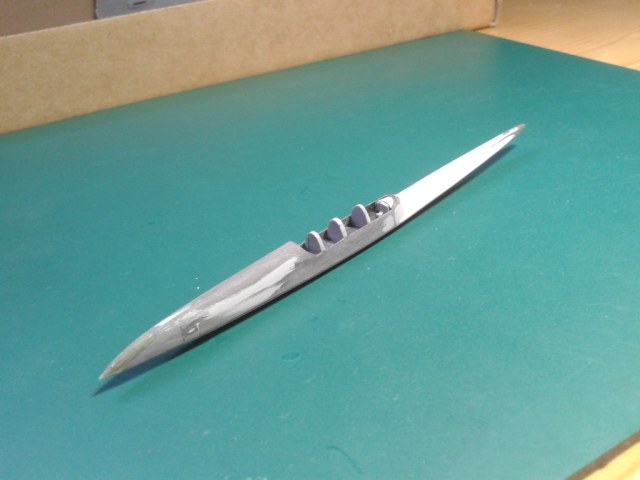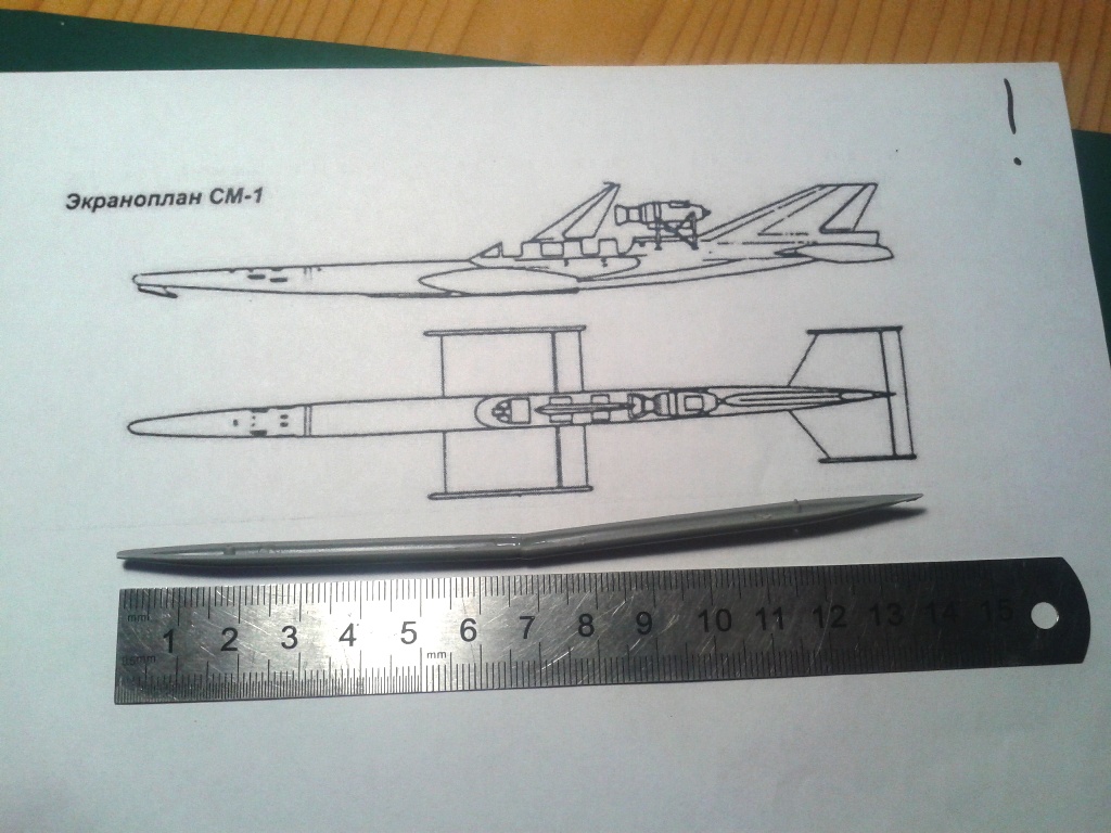 После постройки-доработки Орлёнка, заинтересовался таким типом машин. Вернее предшественниками Орлёнка, детищями одного из первопроходцев в этом направлении аппаратов двух стихий, Ростислава Евгеньевича Алексеева. И вот решил начать с первого советского экраноплана СМ-1 http://www.airwar.ru/enc/xplane/sm1.html Фото и видеоматериалов по этой машине в сети маловато, в книгах и журнах тоже. Буду лепить по тем, что удалось нарыть... Хоть модель и в 144-ом, но получается довольно-таки не маленькая, 138мм, исходя из оригинала (по данным ТТХ) 20метров. А вот с крыльевыми плоскостями спорный вопрос. По характеристикам они даны в размахе 10метров, но по фото могу дать чуть больше 6-ти метров, исходя из пропорций пилотов. Вобщем дожуём, увидим...