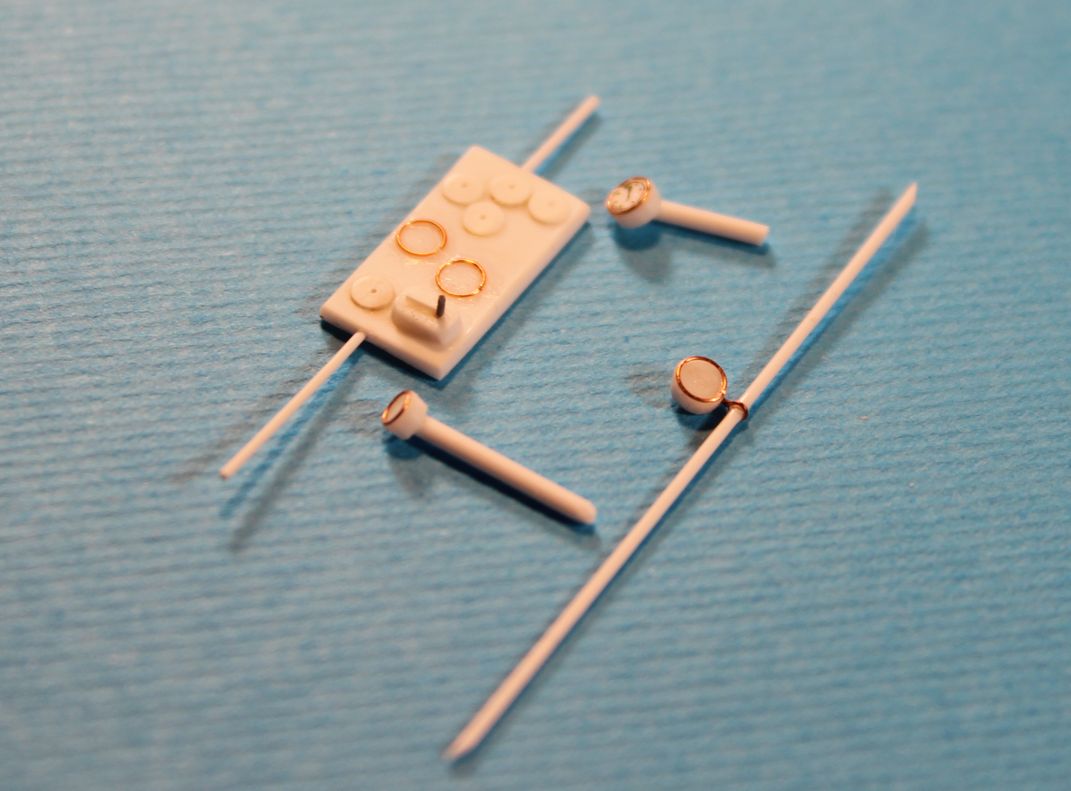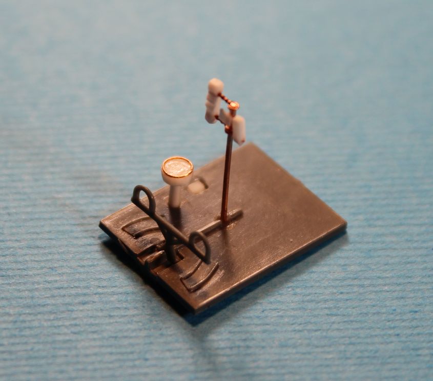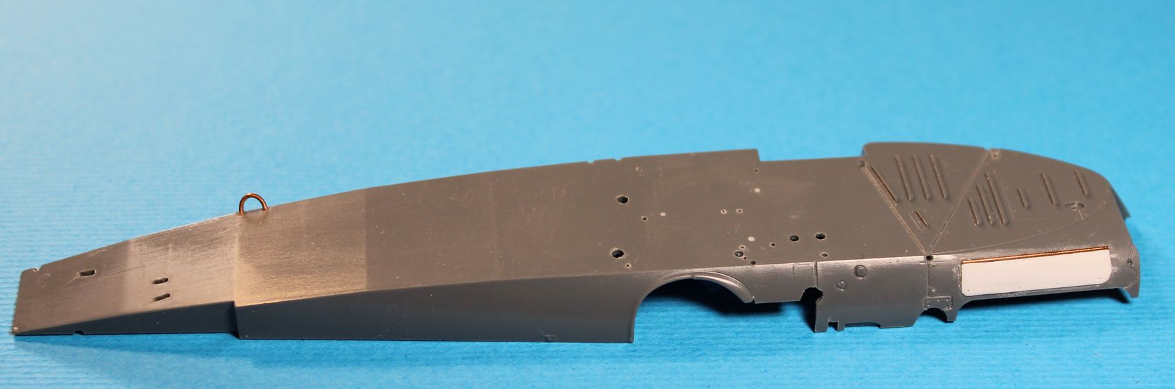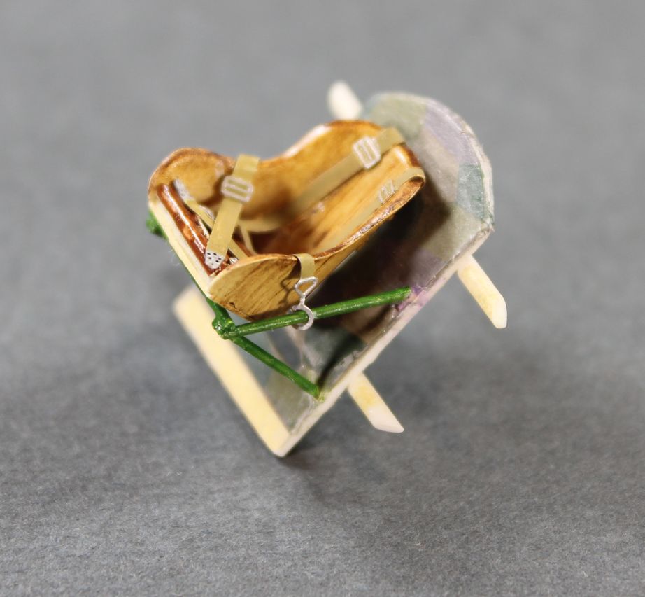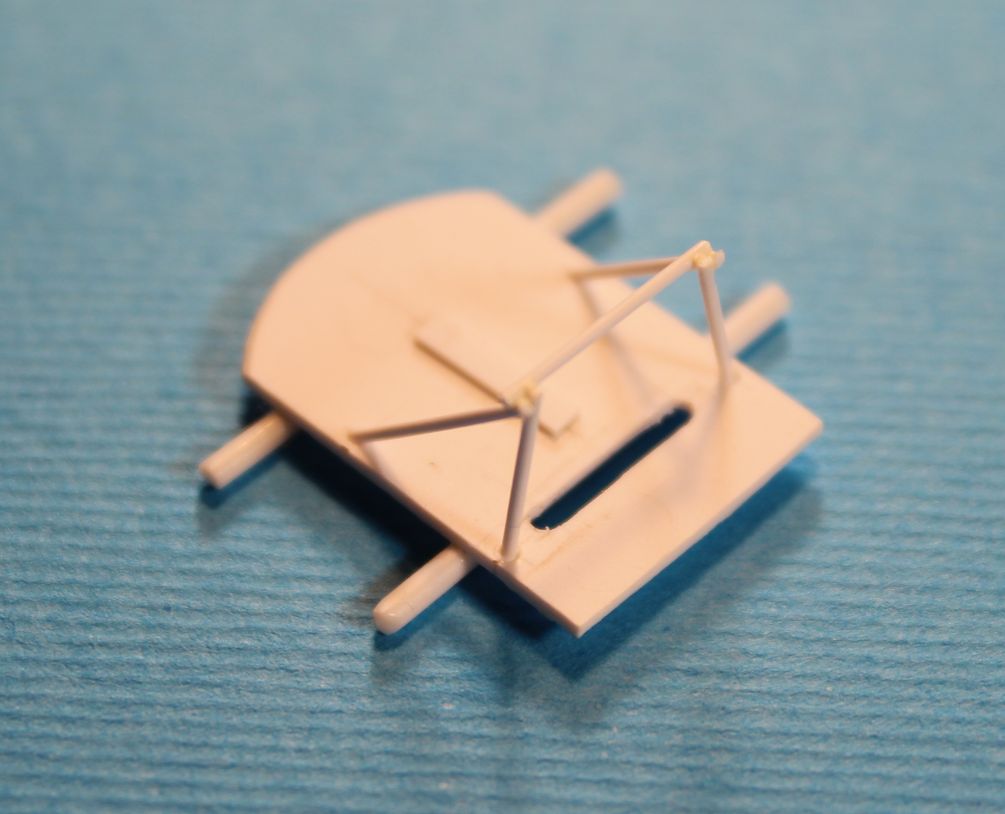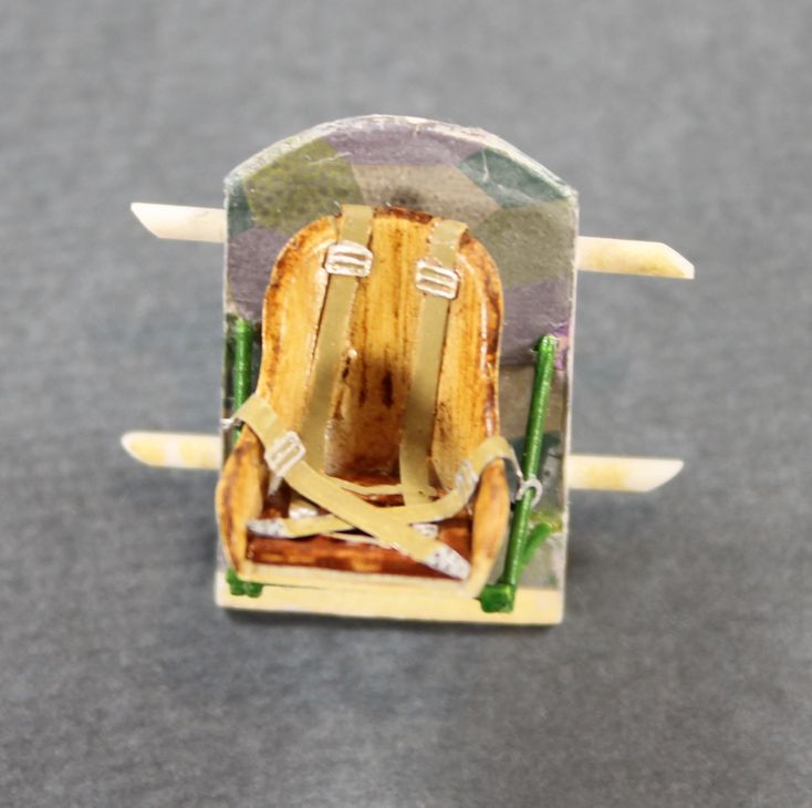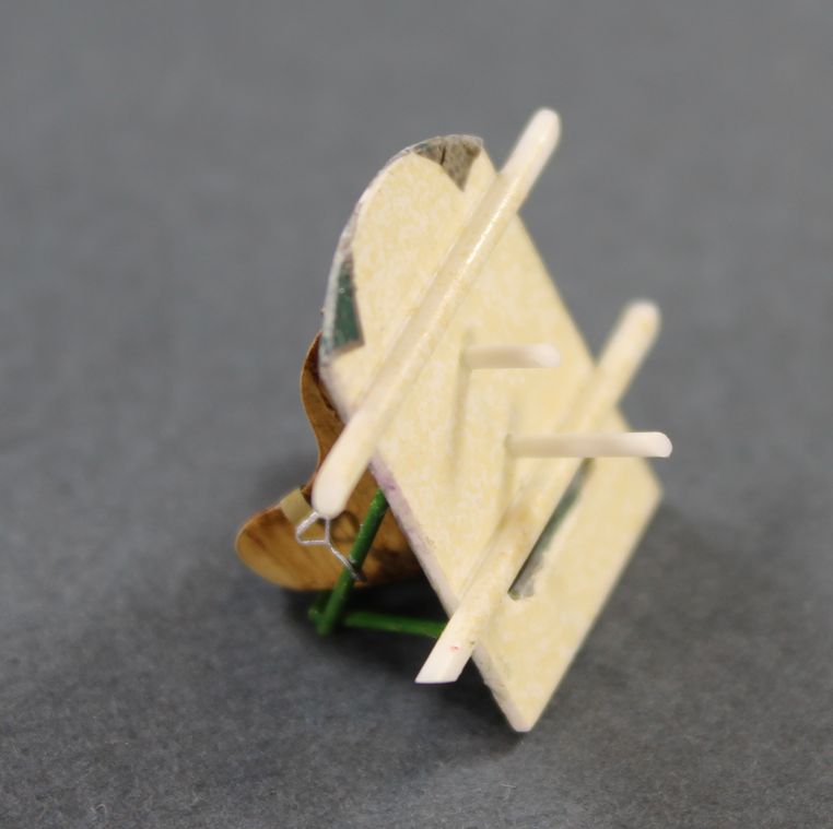 Вот так выглядит деталь задней стенки кабины с задней стороны. Штыри по вертикали составные части сборки наложенной сверху на деколь. Потом к этой сборке собственно и клеилось кресло, аналогичной ответной частью. Два горизонтальных прутка, будут фиксировать сборку на склеиваемых половинках фюзеляжа.