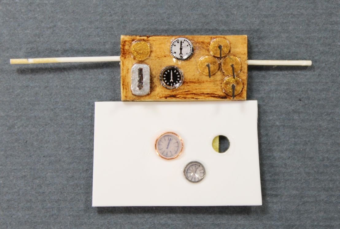 И вот на обсуждение. две приборки, точнее одна - крашеная. Конечно я накосячил, поставив туда деколь черного прибора, у немцев приборы были на белом фоне, и это мне не дает покоя. На оценку вам и сделанная и пример того как получается "бутербродом" что скажете? Интересно ваше мнение. Медное колечко это проволока скрученная на сверле, белое кольцо - из комплекта травления от Эдуарда.