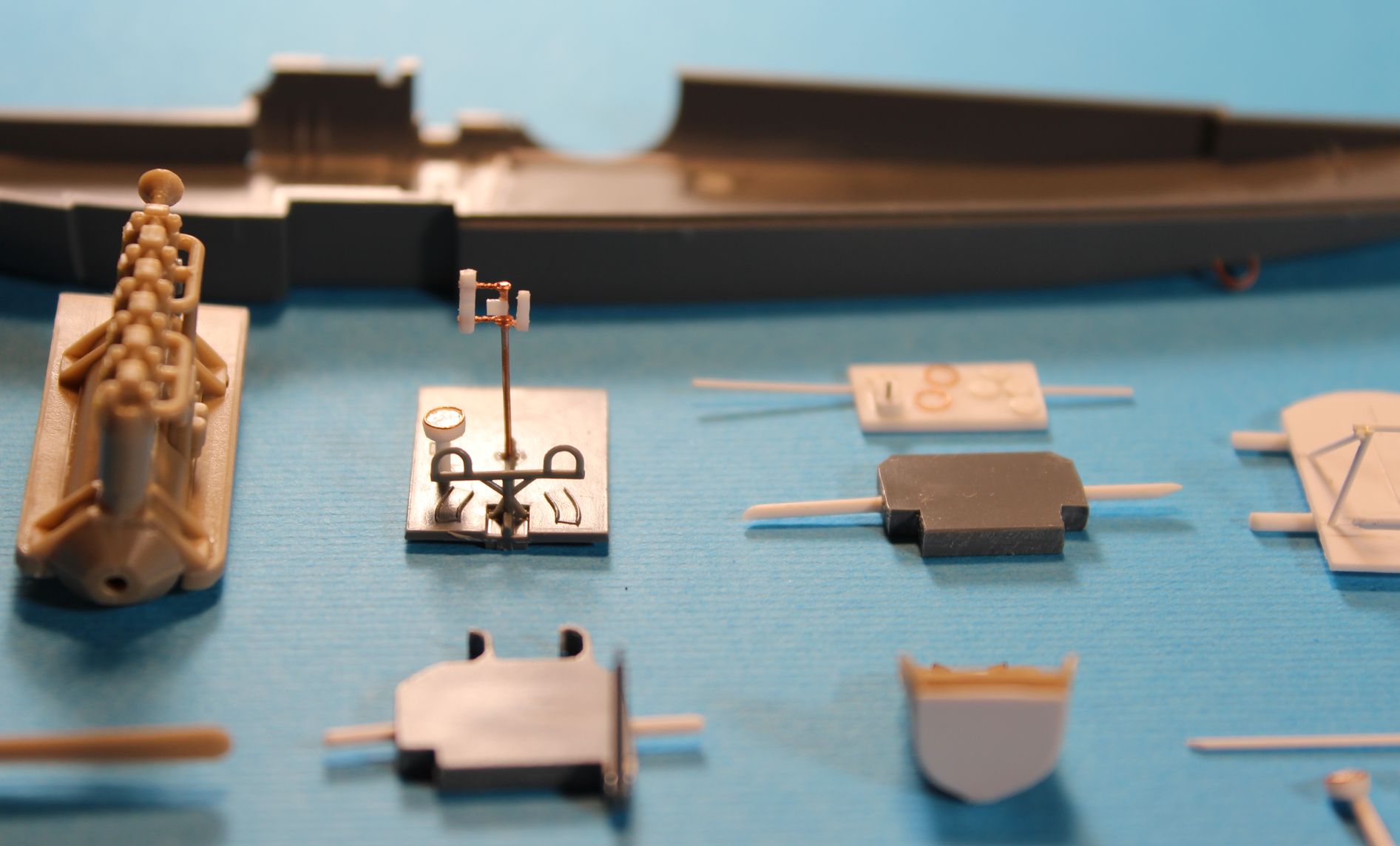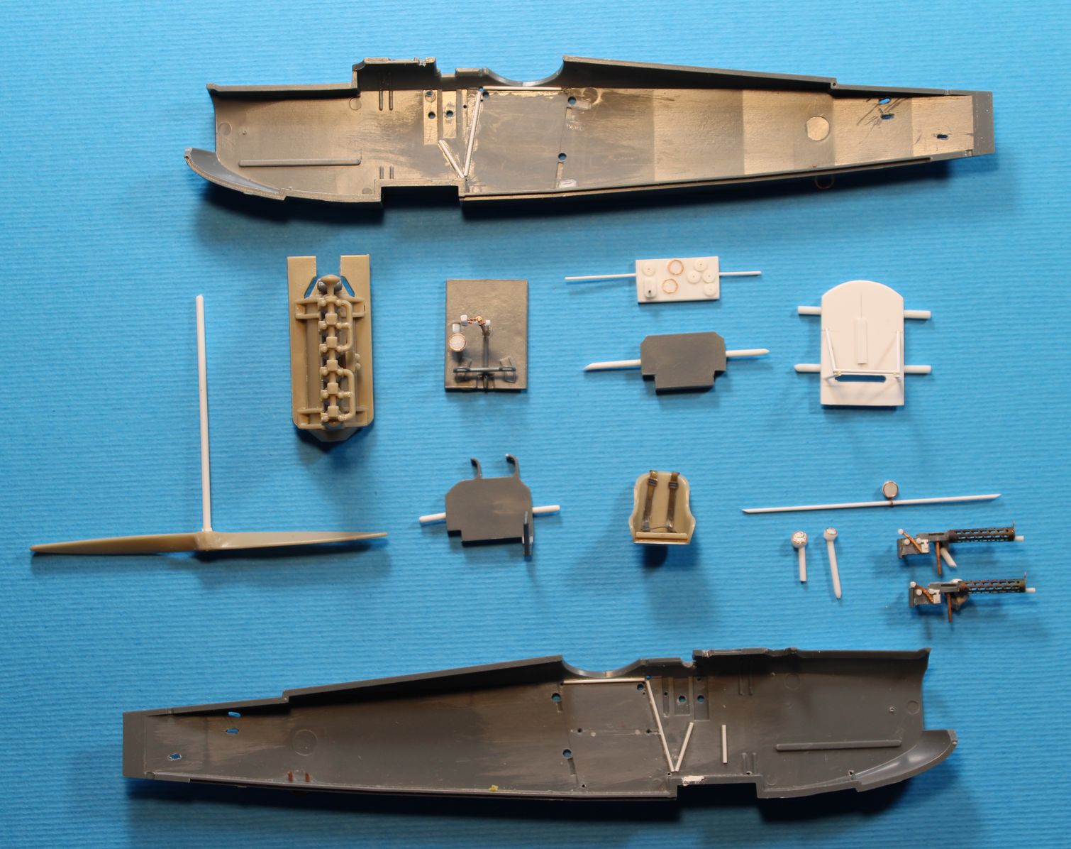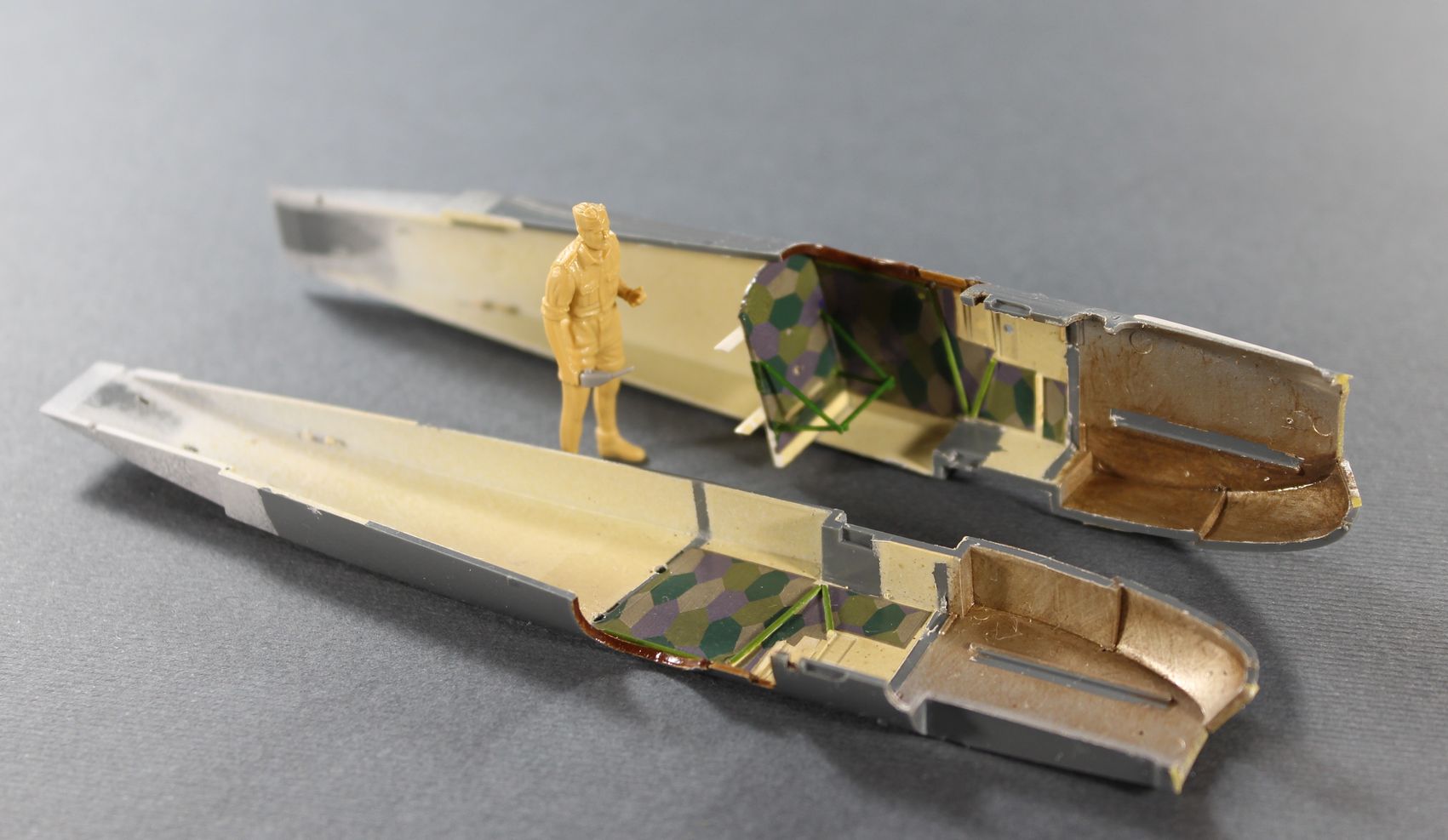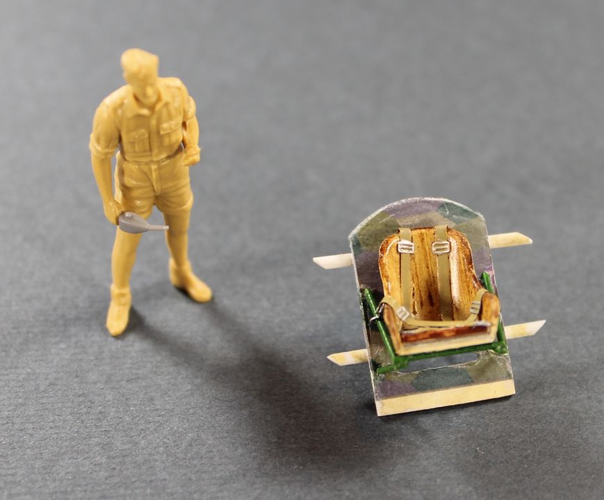 Дмитрий, Александр. Рад видеть вас -) Действительно стенка за креслом будет практически не видна, но боковые стенки будут. И поскольку торопиться некуда, а Эдуард вложил полный комплект декалей на внутренние поверхности, что я вижу в первый раз, то попробую последовать вашим советам и провести эксперимент, скорее всего в выходные. Краску для "задымления" попробую использовать светло серую, в цвет парусины.