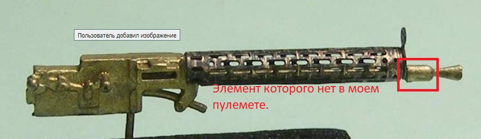 Денис, ниже 2 изображения. то что у меня и образец из вашего мессажда. Красным выделена деталь которая отсутствует на моем пулемете. Я правильно понял что Вы именно об этом говорите?
