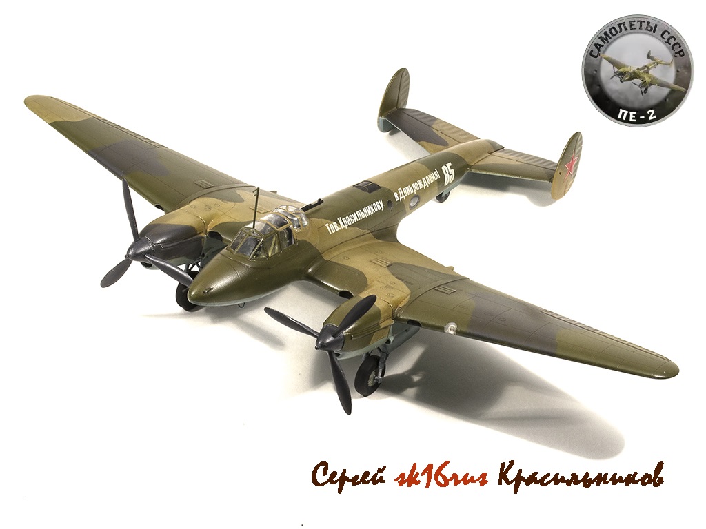 В качестве Пе-2, очень похоже, взяли мою модель, которую я делал отцу на юбилей с дарственной надписью "Тов. Красильникову в День рождения!" и бортовым номером 85 по количеству лет