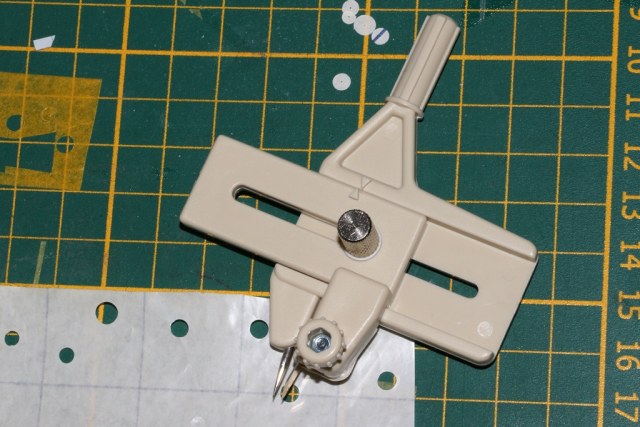 Приехал из Японии циркуль для вырезания мелких отверстий (заявлено от 1,5 мм). Сделал маски для дисков колес, но получилось не сразу - в "пластике" они почти не обозначены.