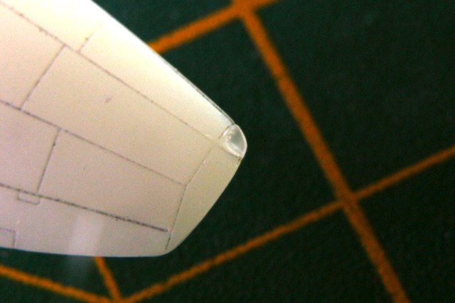 Садово-огородные выходные не дали в полной мере заниматься проектом, работа идет медленно. Вклеил в концы крыльев кусочки прозрачного полистирола, после высыхания обработал напильником. Без увеличительного стекла это практически не видно.