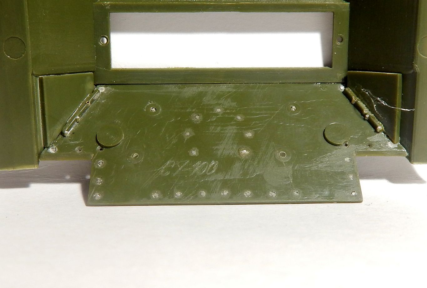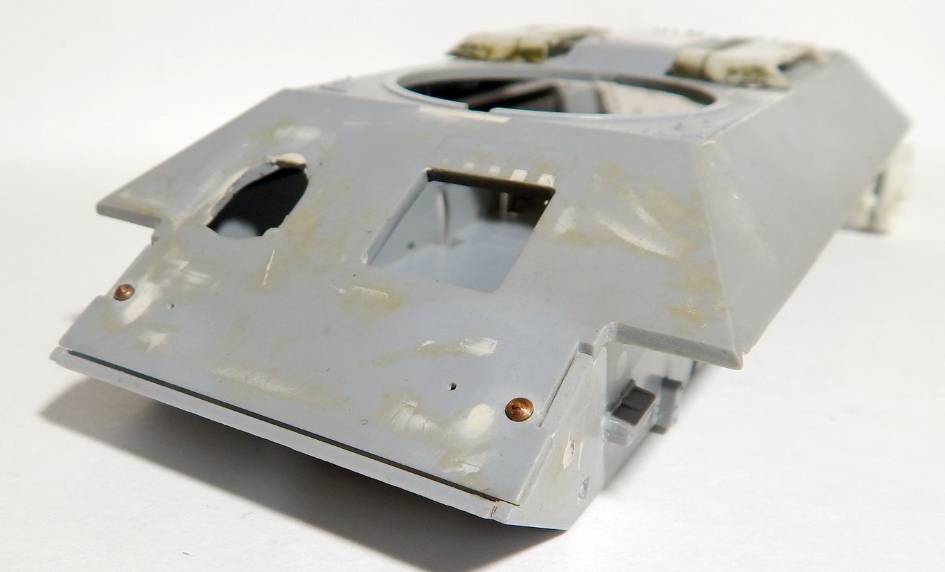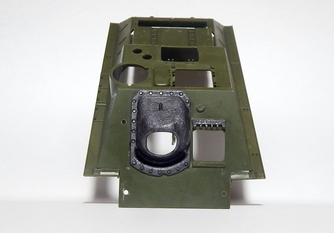 И так, поехали на первой: Снёс всё ненужное, прошпаклил, насверлил лишнего, что б ни кто не догадался, что это ЗВЕЗДА с MSD... кое где, где надо, с имитировал литьё стали в земляную форму (петля люка мехвода)