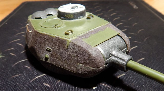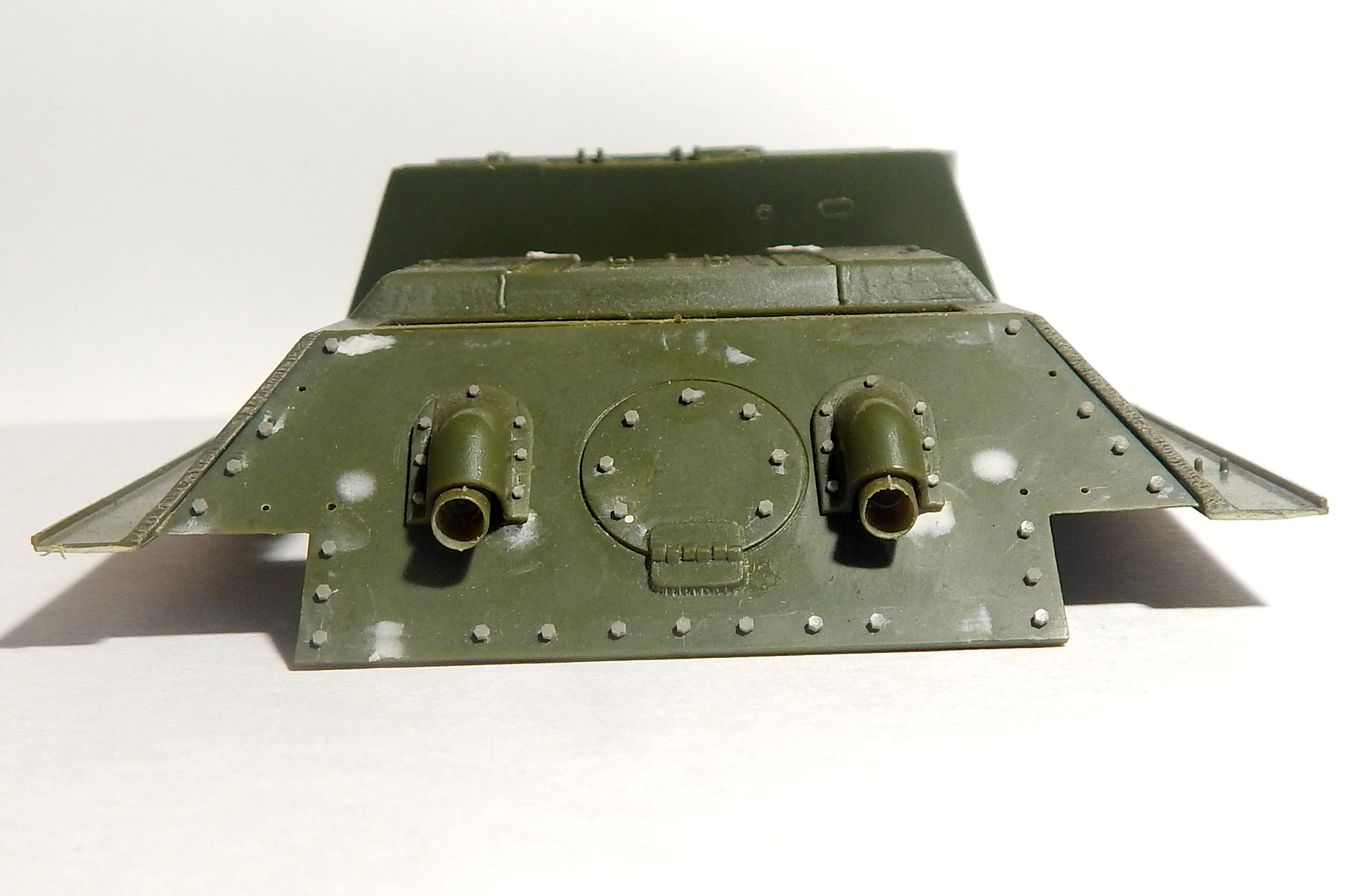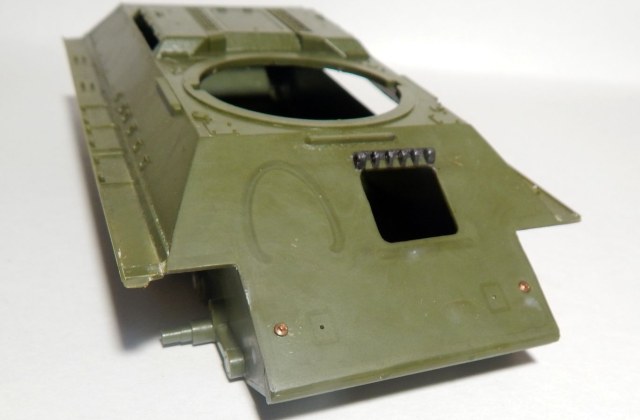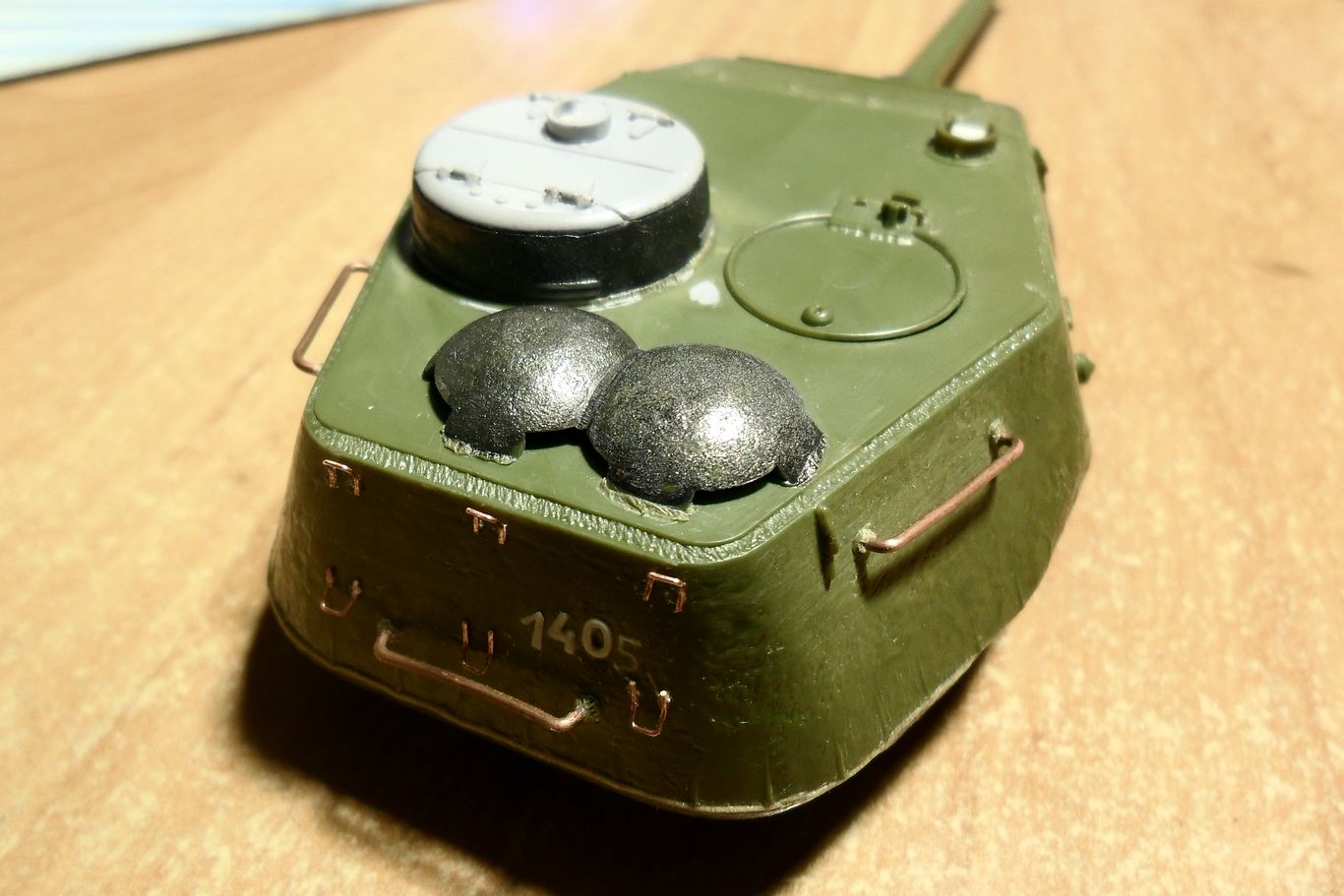 И так, поехали на первой: Снёс всё ненужное, прошпаклил, насверлил лишнего, что б ни кто не догадался, что это ЗВЕЗДА с MSD... кое где, где надо, с имитировал литьё стали в земляную форму (петля люка мехвода)