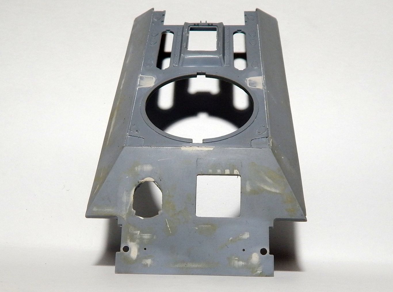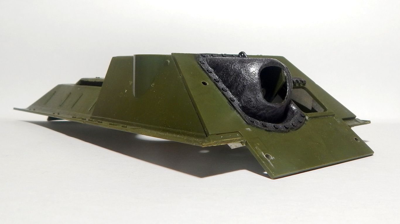 Звезда: снёс все ненужное (болты и прочее), насверлил необходимое, прошпаклил следы вандализма, утяжины (имели место быть, на обоих деталях и в тех же местах), заболтил по новой красотой от МК, высверлил выхлопы, с имитировал на них швы, обрезал бронировки выхлопов, набил на них следы газореза (в моём случае бронировки рисую штампованными), и собрал всё это дело...