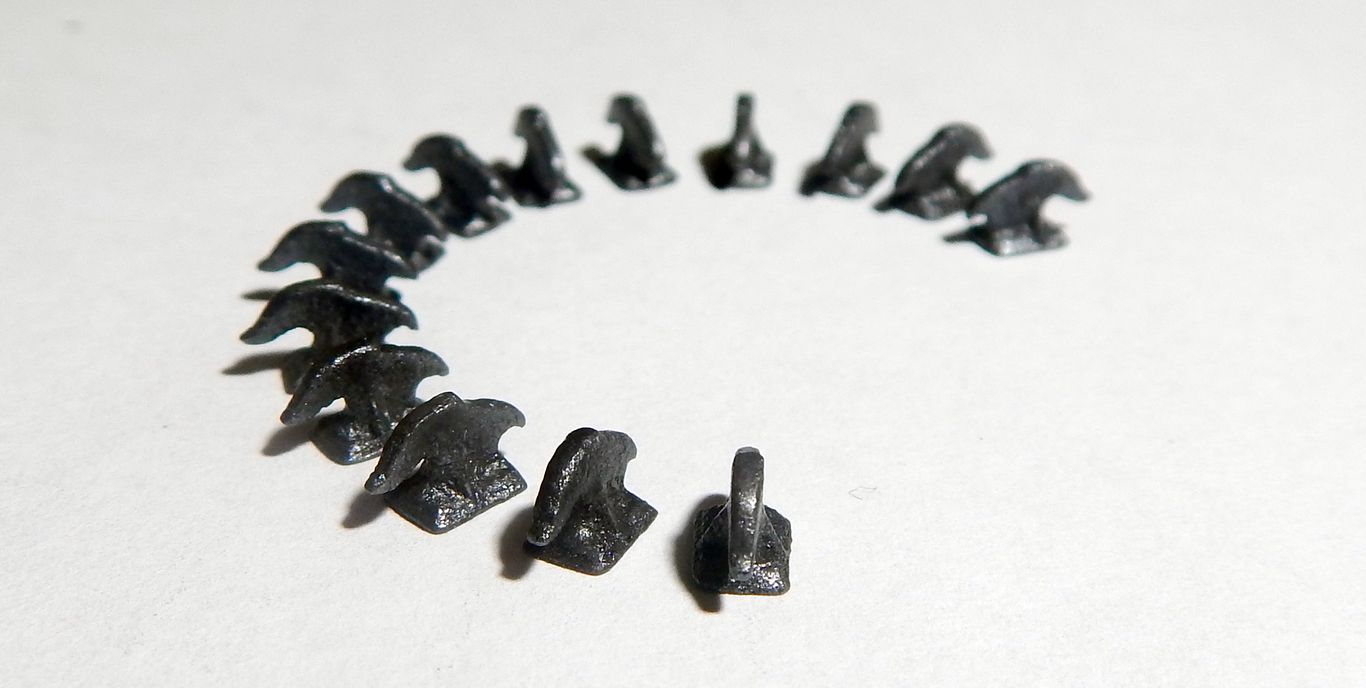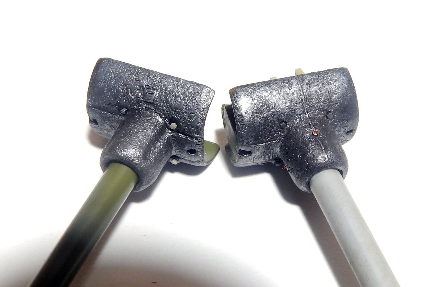 То, другое, вытянулось в третье, а именно в "слоников", то есть в буксирные крюки, которые у обоих производителей поучились какими то "носорожками"... которые так и останутся на литниковых рамках как памятник не компетенции... а из того, что подвернулось (палка олова ПОС), и огромной благодарности Евгению Кожушкову, который тов. Panzrshrek, за некогда присланные детальки, с них и слепил (отлил) парочку нормальных, весьма похожих на крюки Т-34, "слоников"... что б ни кто не распознал по ним производителей...