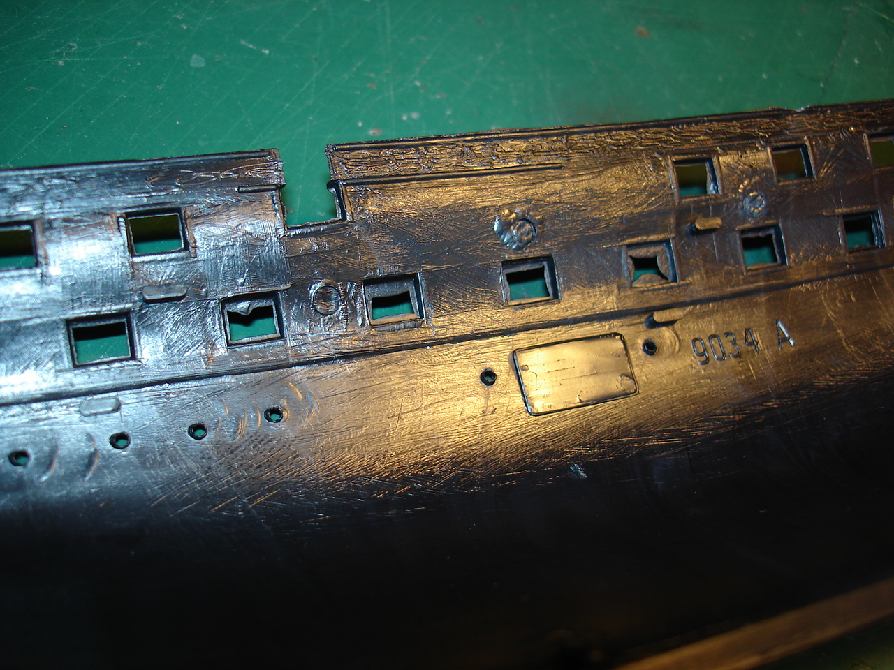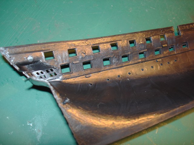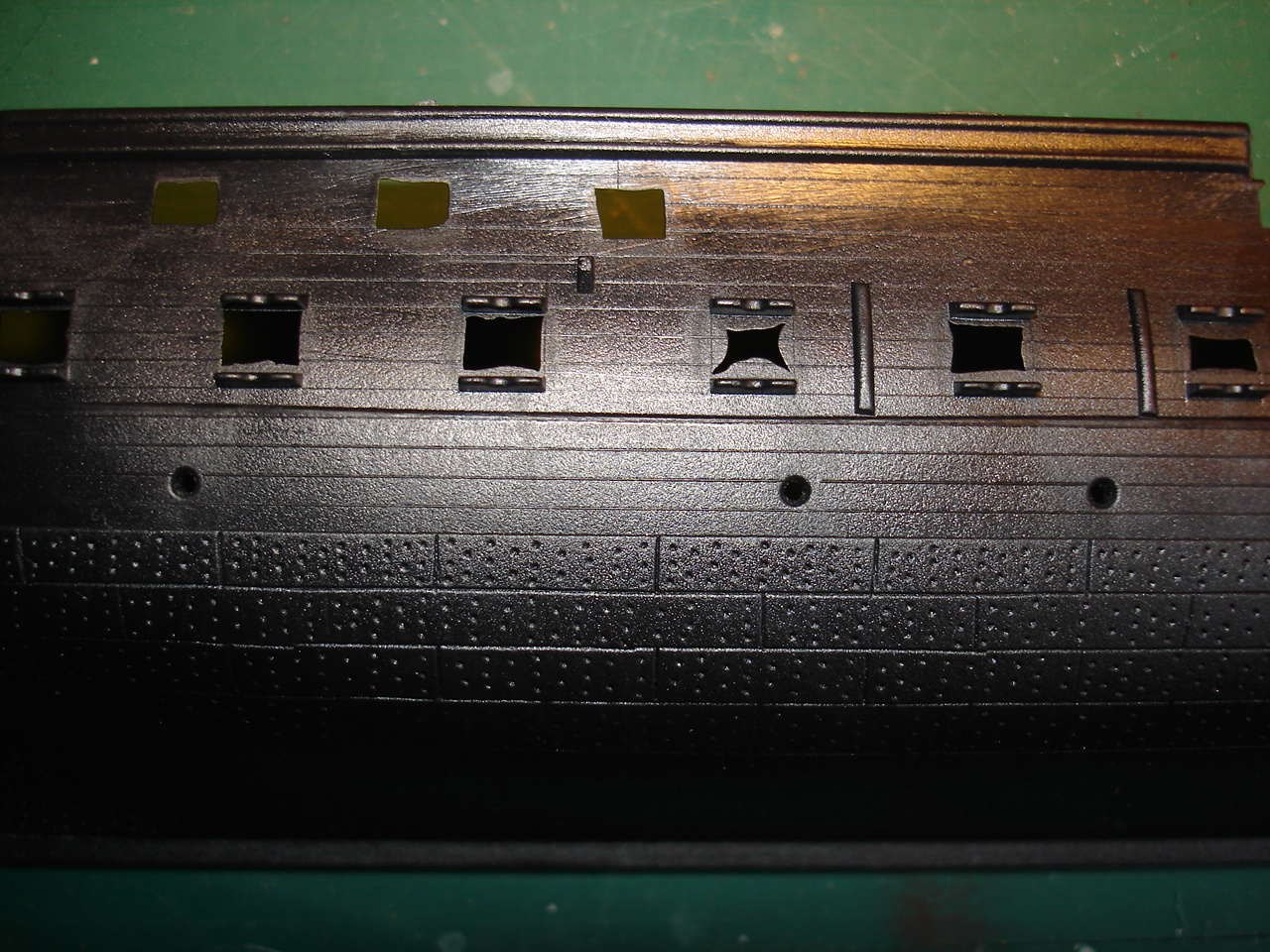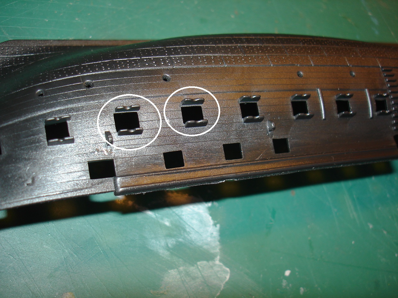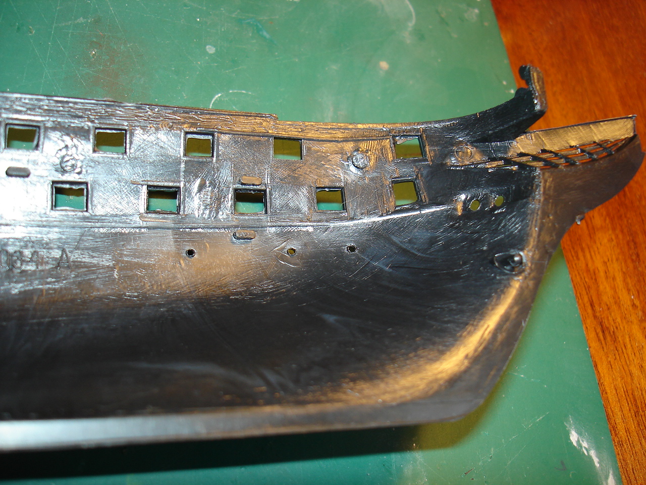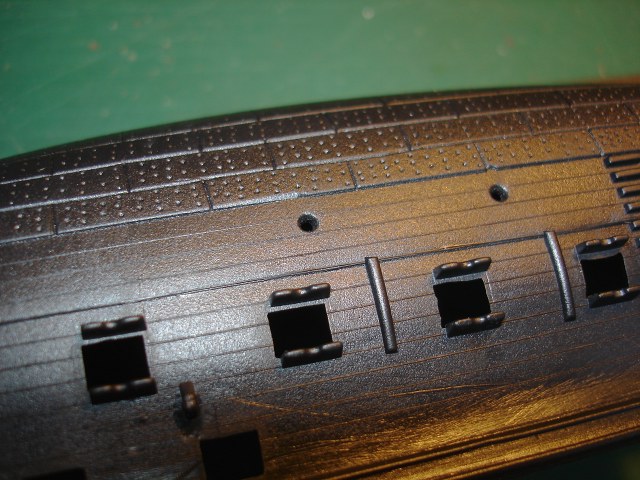 Так же створки орудийных портов потеряли четкость и некоторые из них еще и смещены, а это не есть хорошо.... Лечить это можно, но не совсем просто...