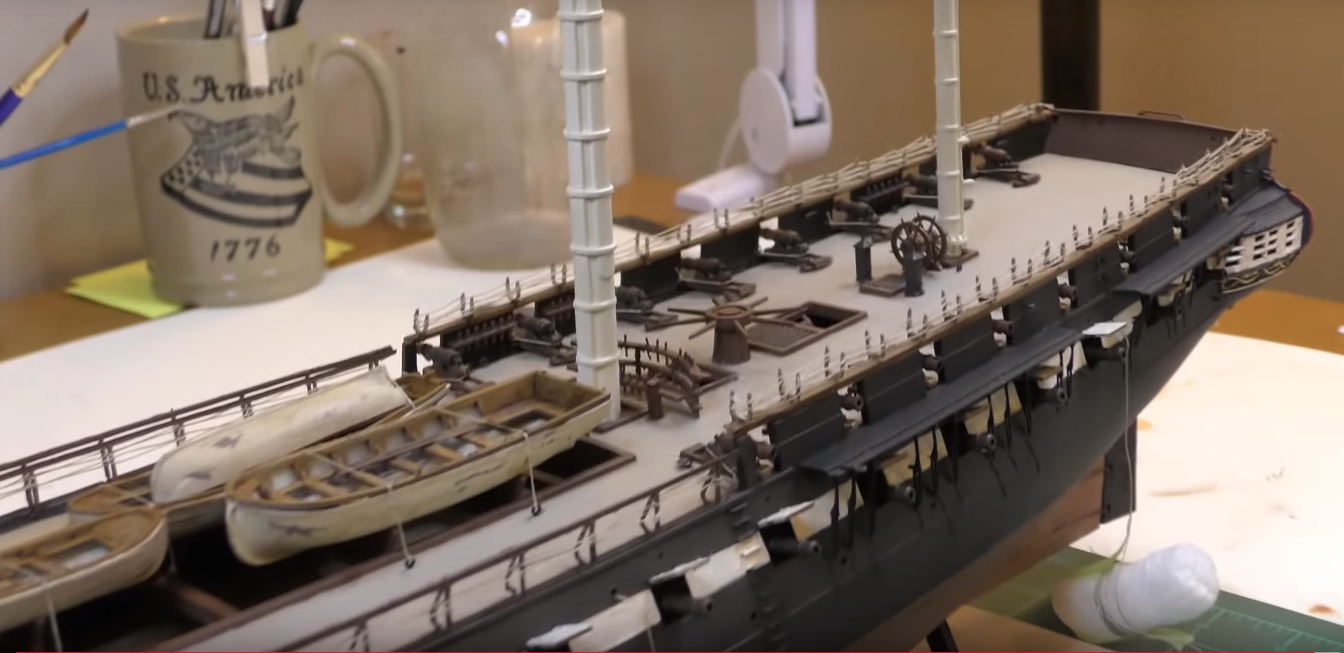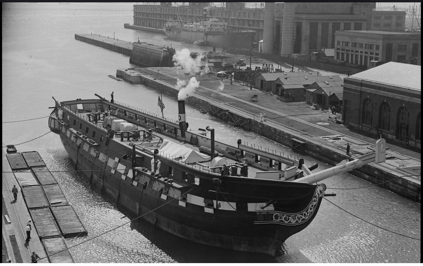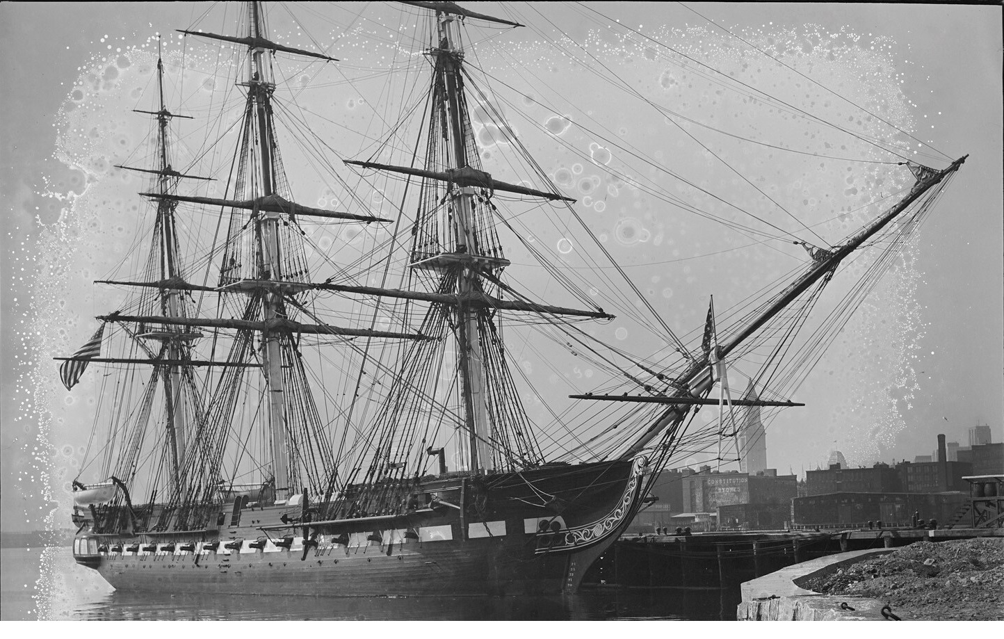 Долго не давало покоя мне наличие сквозных отверстий в бортах набора. Если смотреть на фото что есть в наличии, то сомнений , что это иллюминатор ... нет ! Даже на гражданских чисто грузовых они присутствуют, хотя и находятся намного выше и это сильно смущало. После того как набрел на инструкцию от Revell соблазн убрать их стал еще больше, но.... даже на фото Конституции они проглядываются и четко. А как нам известно это тоже фрегат. Образы обоих кораблей похожи и значит шанс что иллюминаторы появились после одной из реставраций очень мал, но сомнение не покидало.